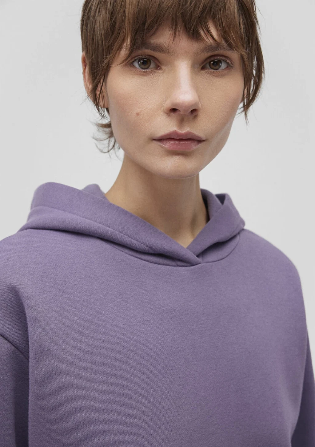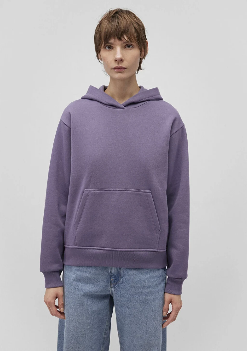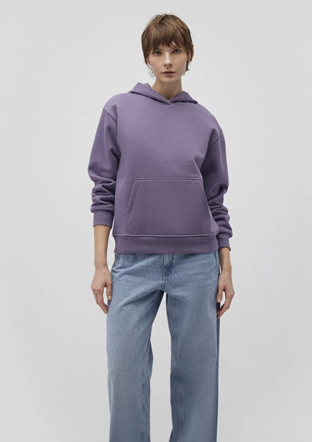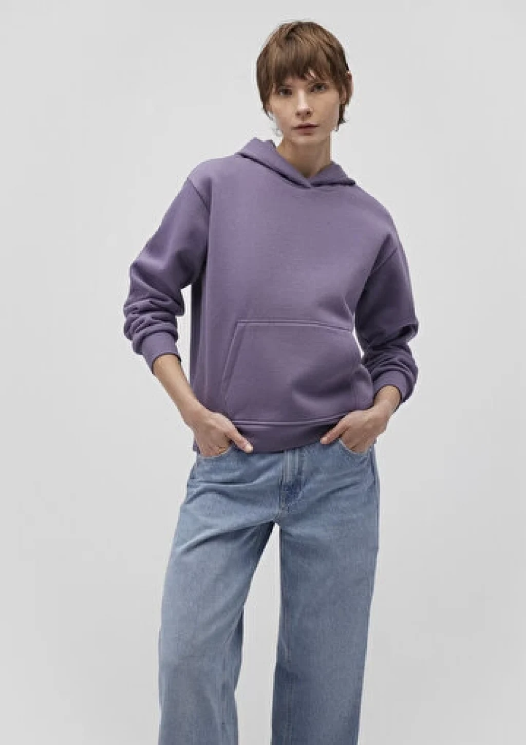 Mavi nin kadın koleksiyonundan Kapüşonlu Mor Basic Sweatshirt. Ürün özellikleri, şardonlu, kanguru cepli, kapüşonlu, cep içi şardonlu.