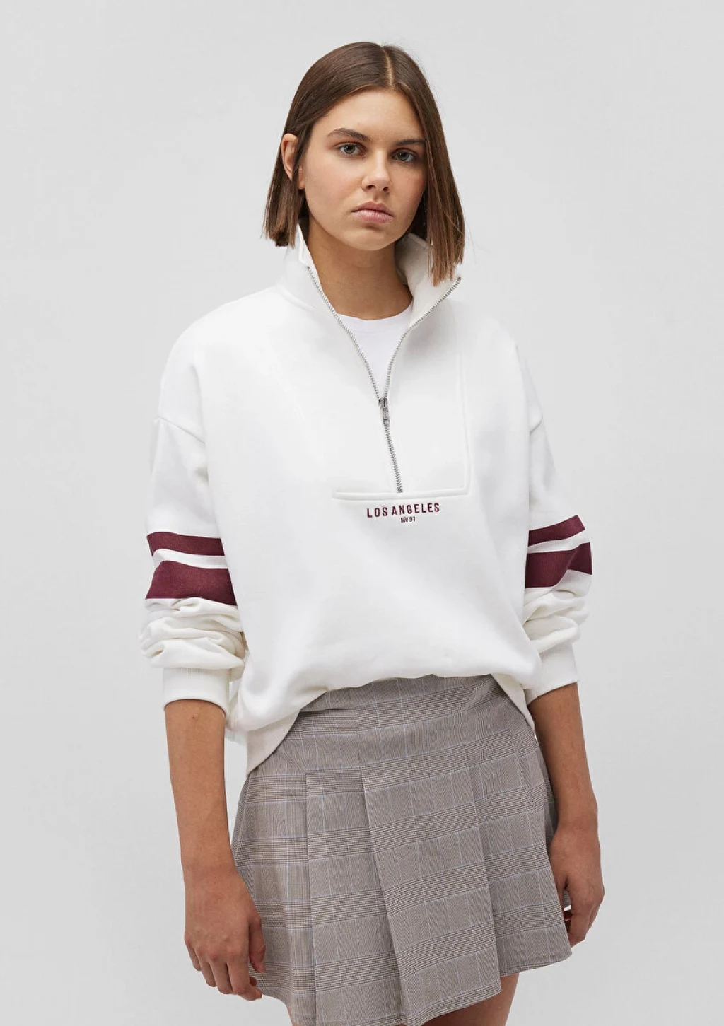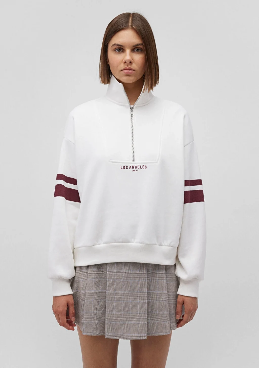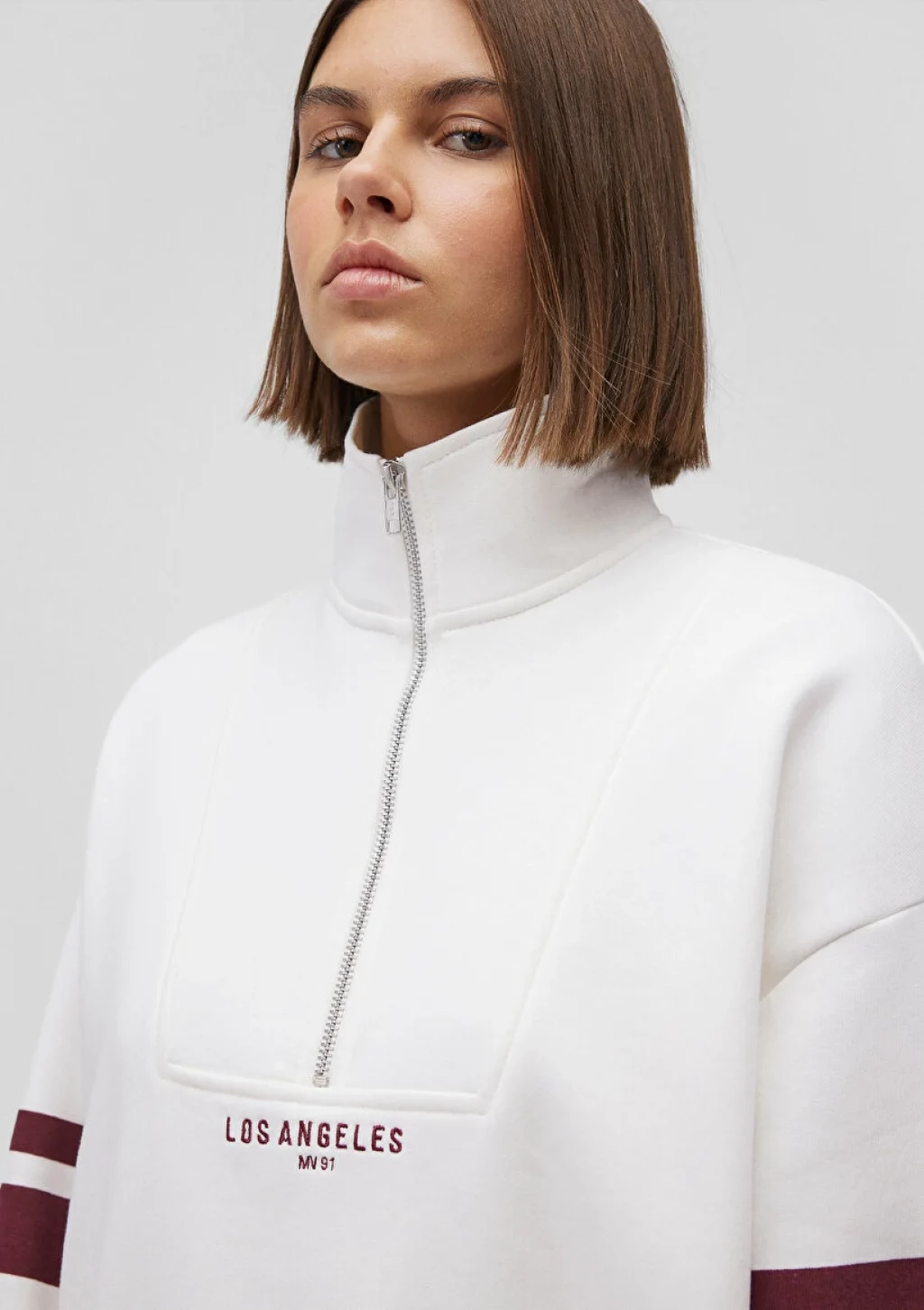 Mavi nin kadın koleksiyonundan Yarı Fermuarlı Beyaz Sweatshirt. Ürün özellikleri, şardonlu, yarı fermuarlı dik yaka.