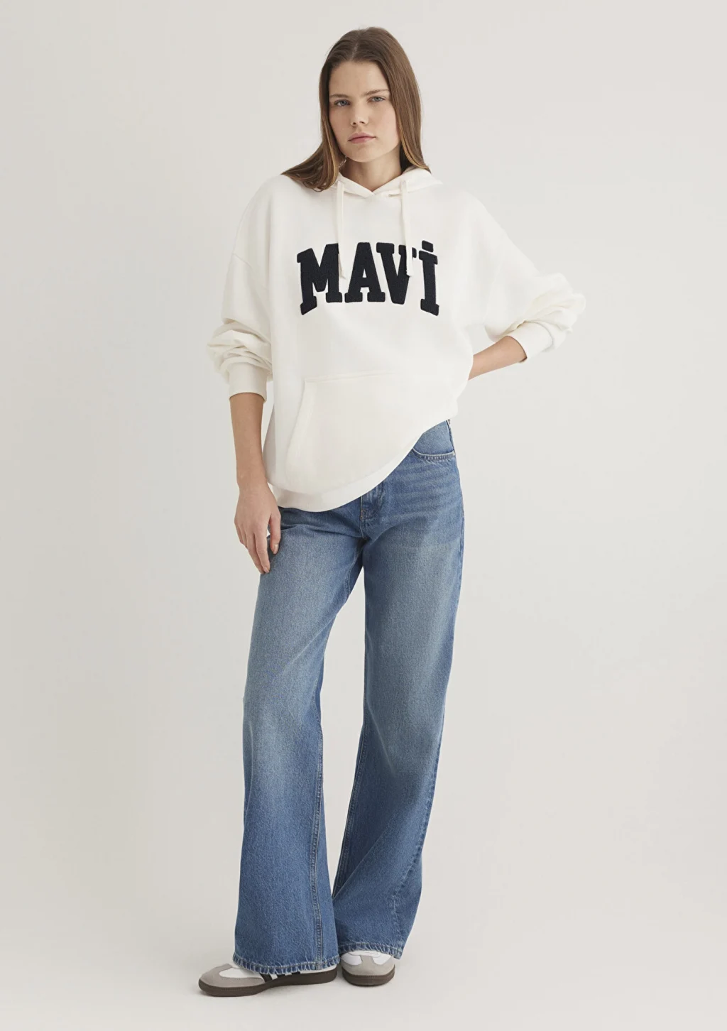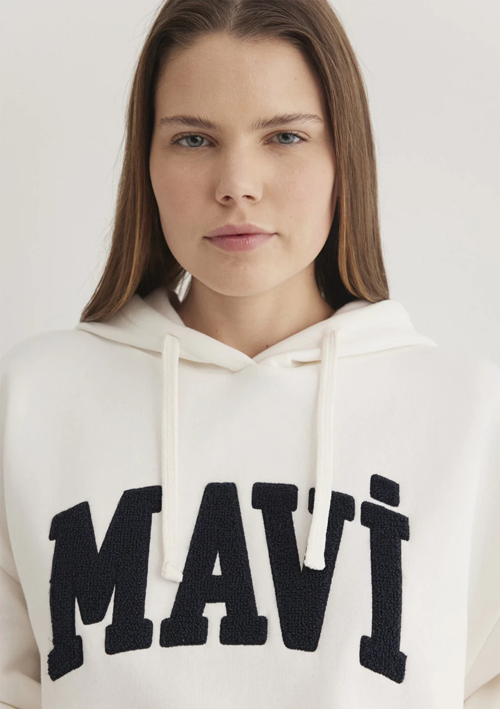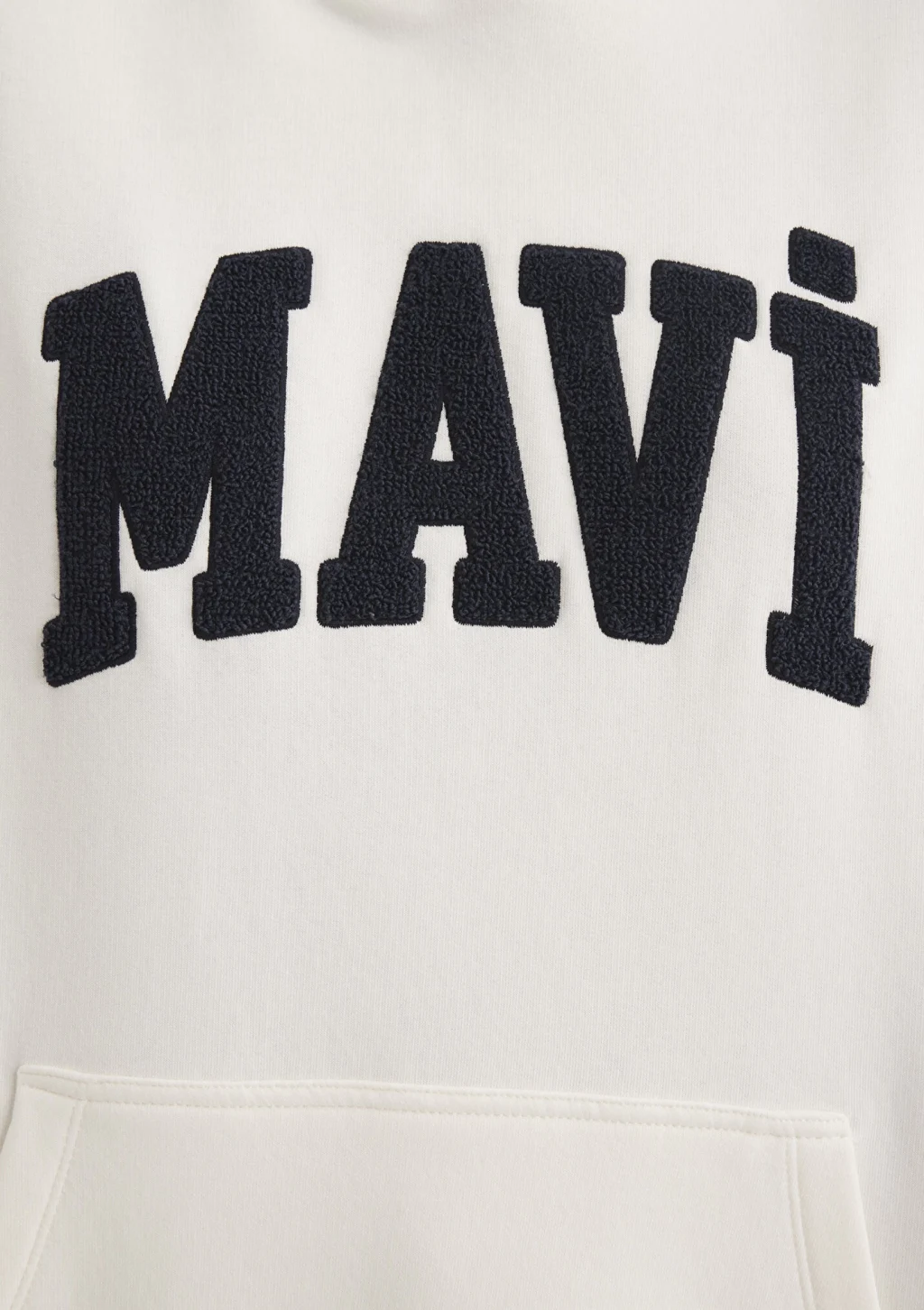 Mavi nin kadın koleksiyonundan Mavi Logo Patchli Beyaz Sweatshirt. Şardonlu, iple ayarlanabilir kapüşon, içi şardonlu kanguru cep.