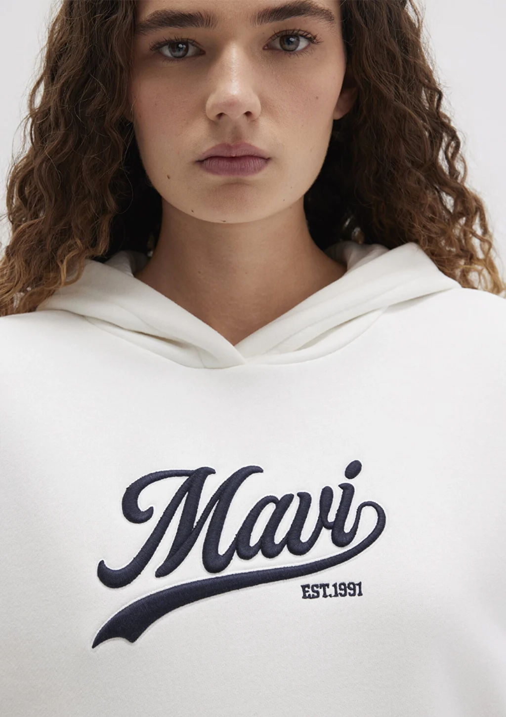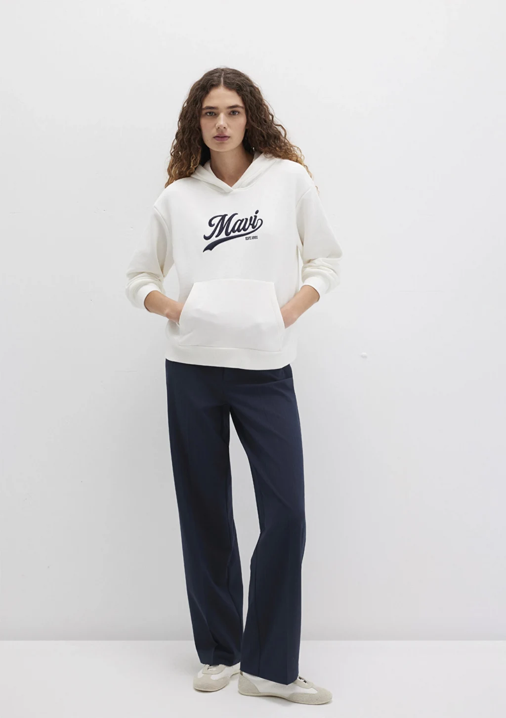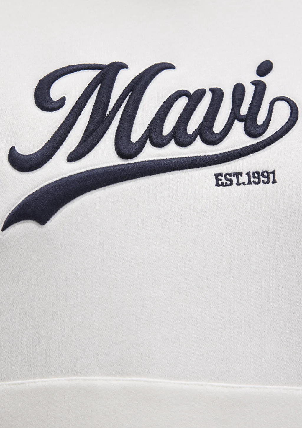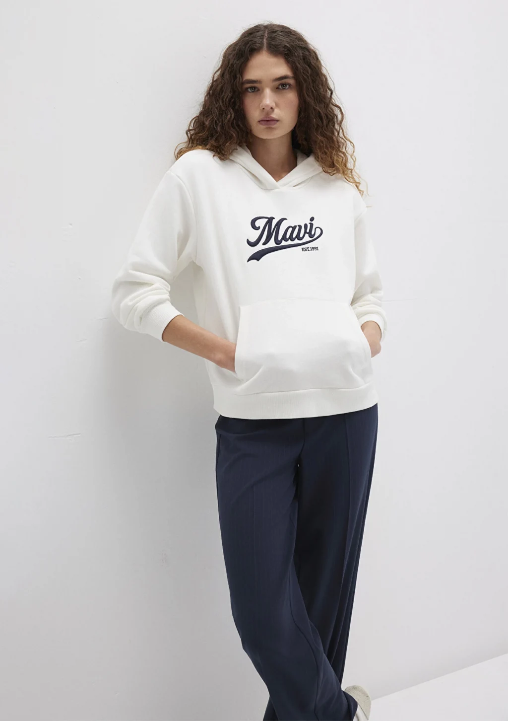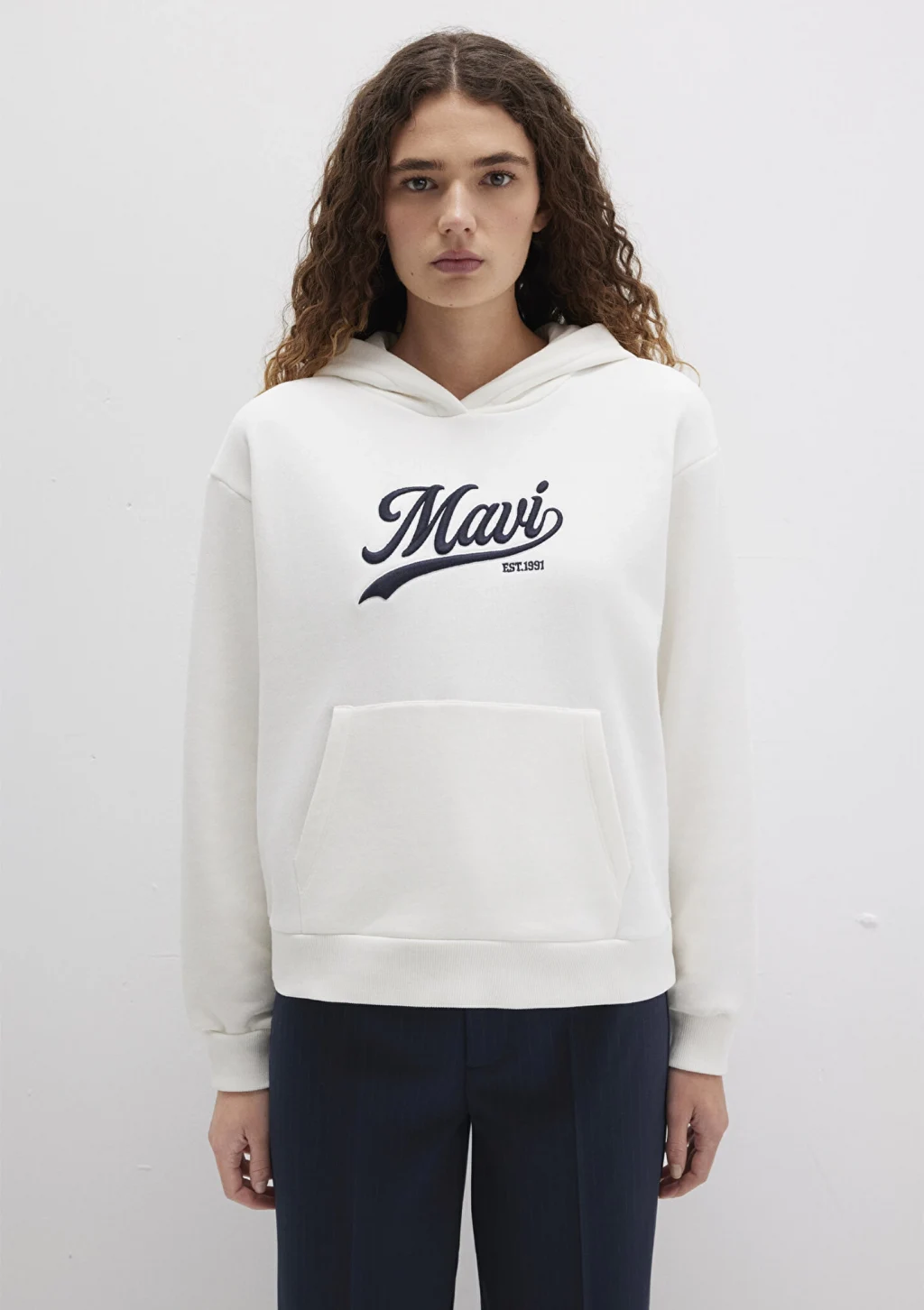 Mavi nin kadın koleksiyonundan Mavi Logo Baskılı Kapüşonlu Beyaz Sweatshirt.