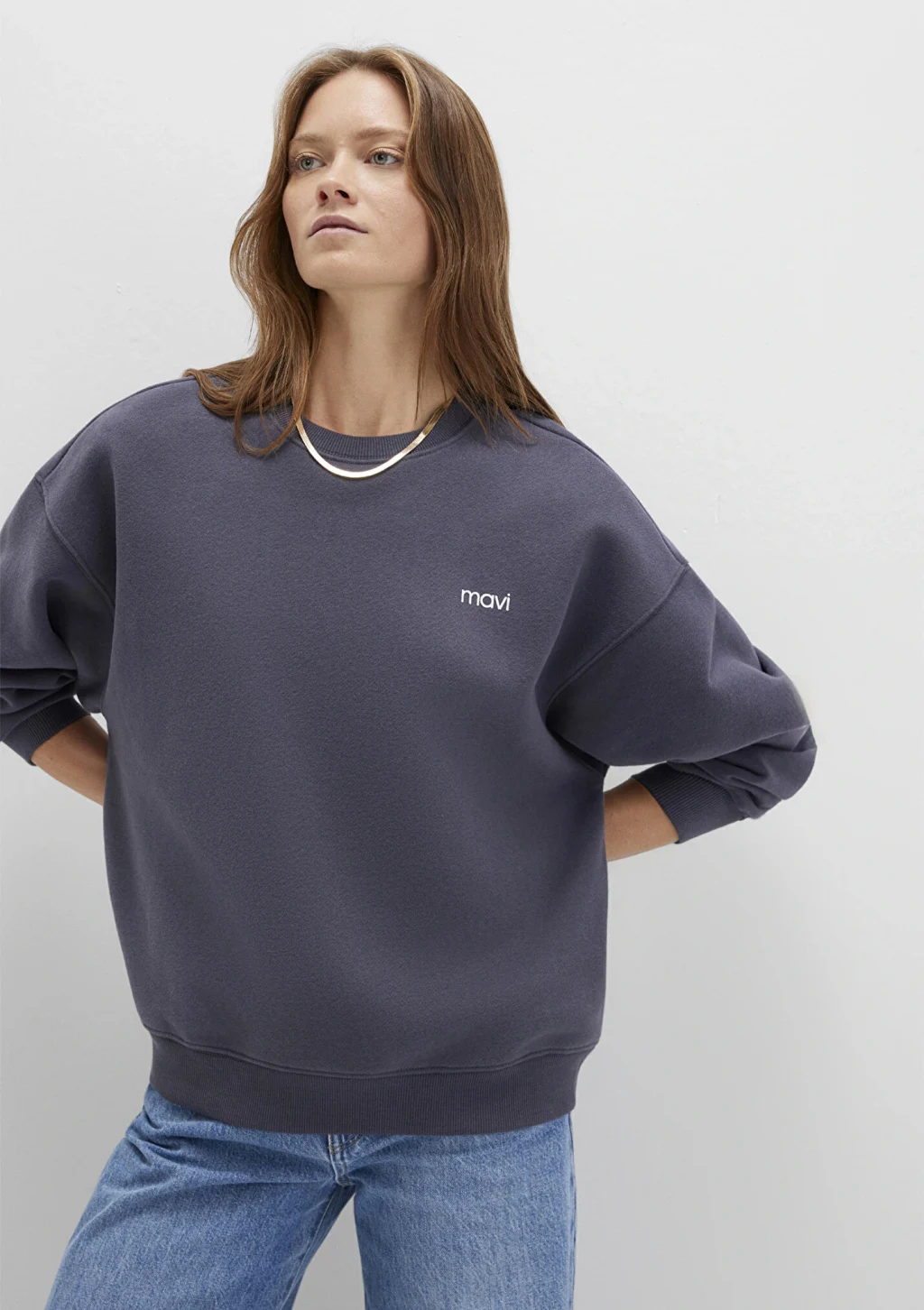 Mavi nin kadın koleksiyonundan Mavi Logo Baskılı Antrasit Sweatshirt. Şardonsuz.