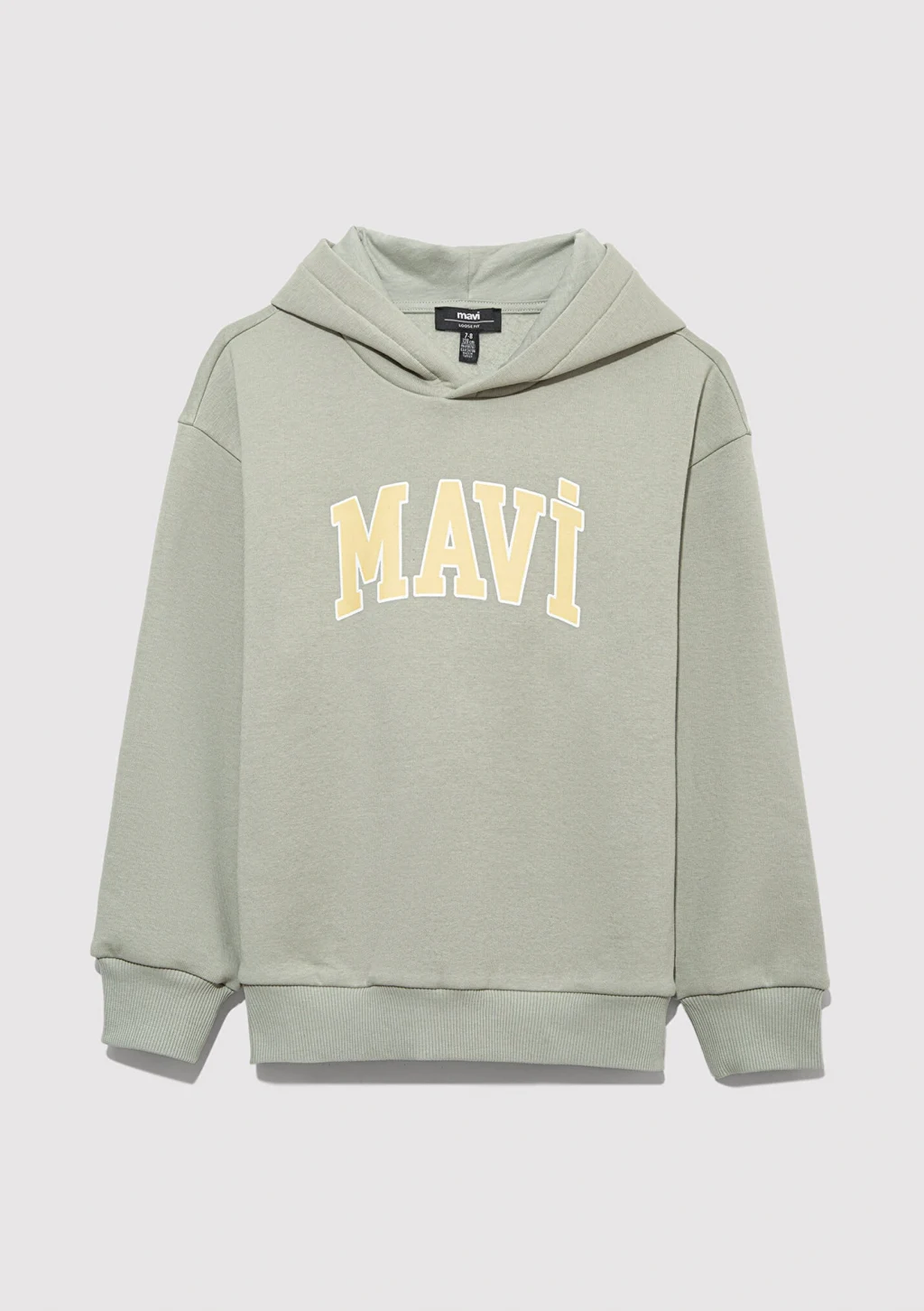 Mavi 6610110-70155 Mavi Logo Baskılı Kapüşonlu Yeşil Sweatshirt
