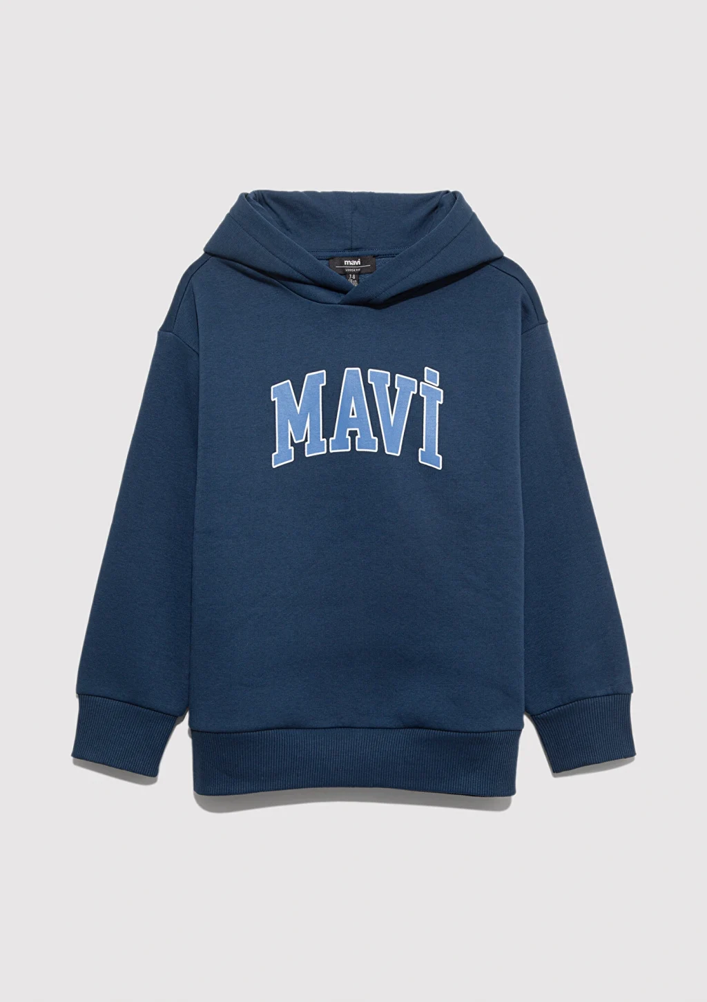 Mavi nin erkek çocuk koleksiyonundan Mavi Logo Baskılı Lacivert Kapüşonlu Sweatshirt.