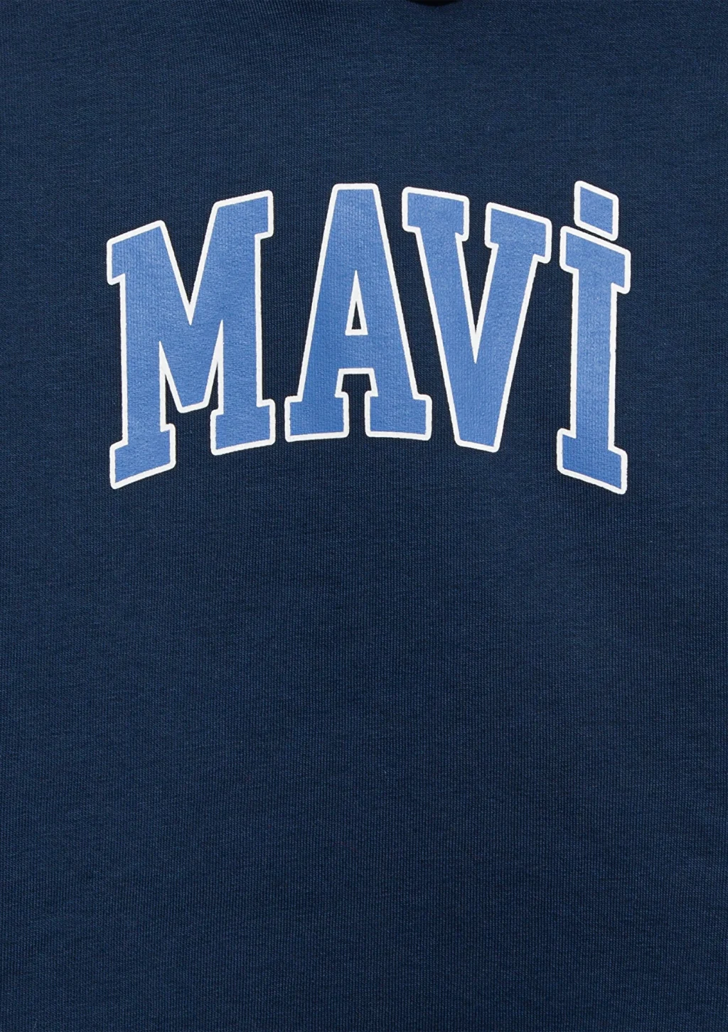 Mavi 6610110-70720 Mavi Logo Baskılı Lacivert Kapüşonlu Sweatshirt