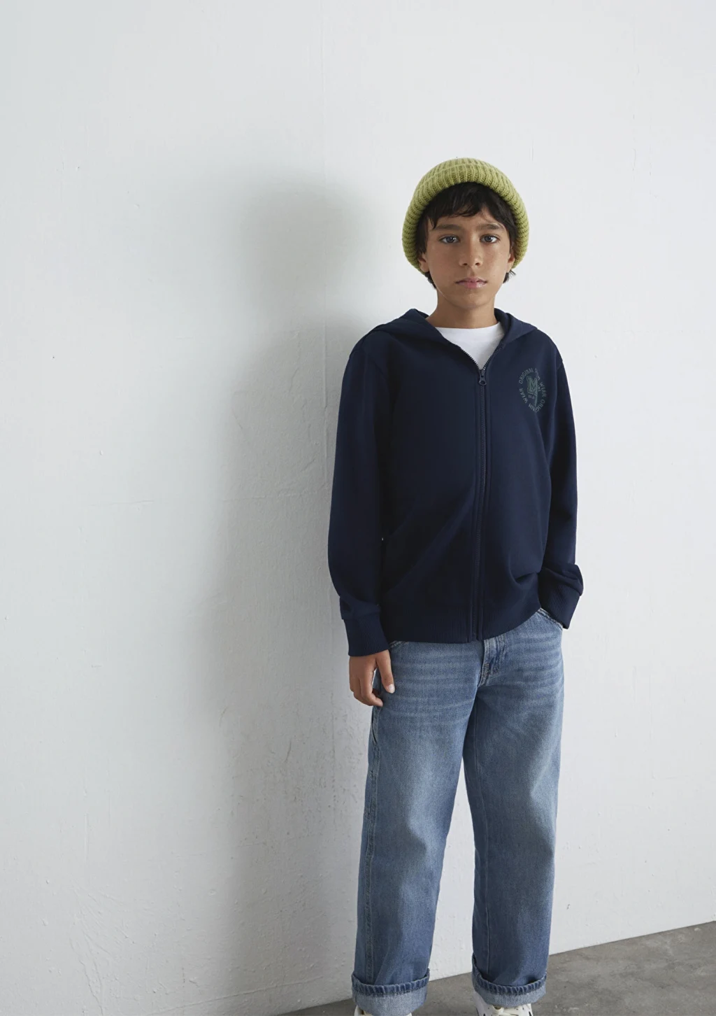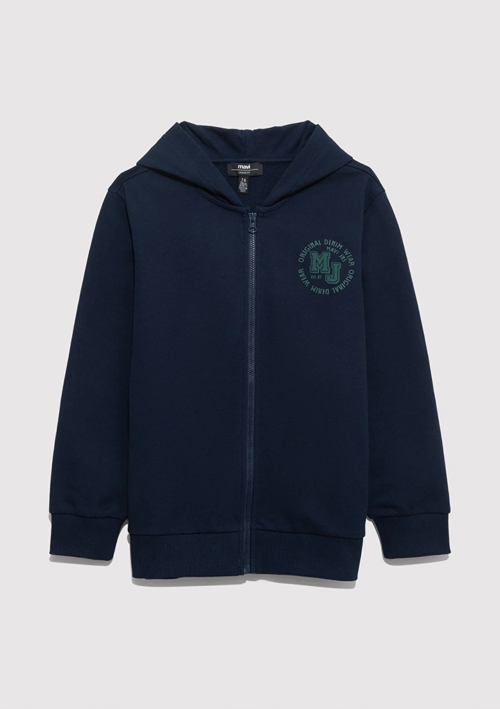 Defacto F9613 Lacivert Coool Loose Fit Kapüşonlu Fermuarlı Sweatshirt