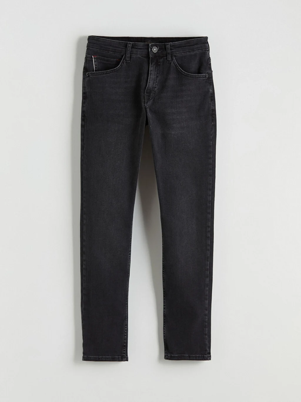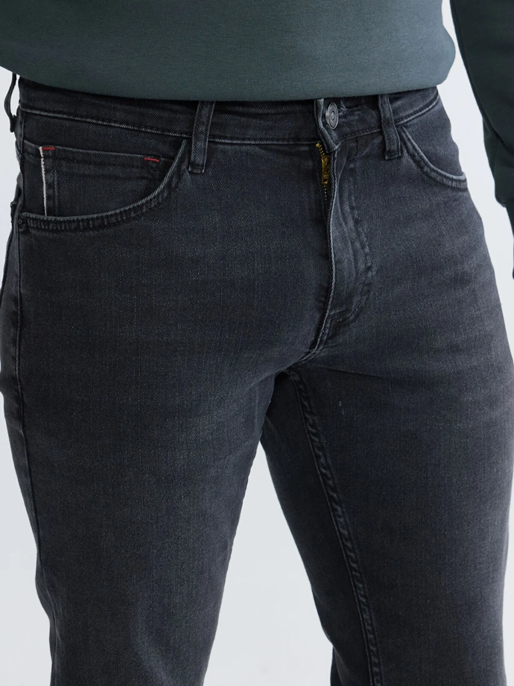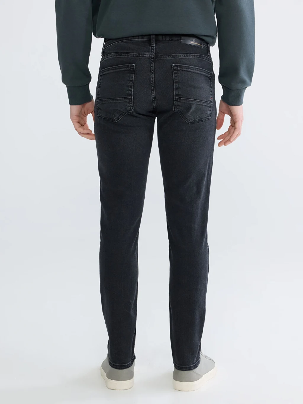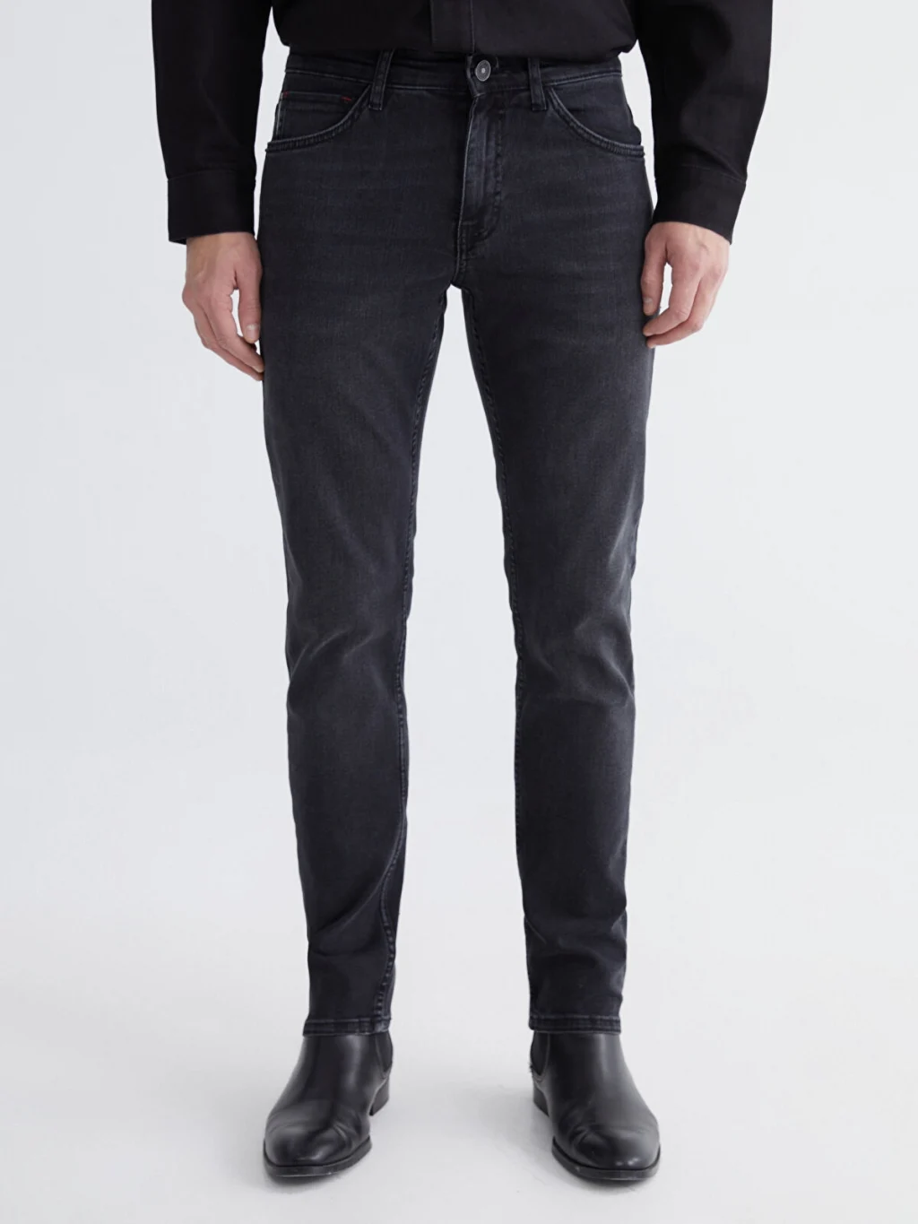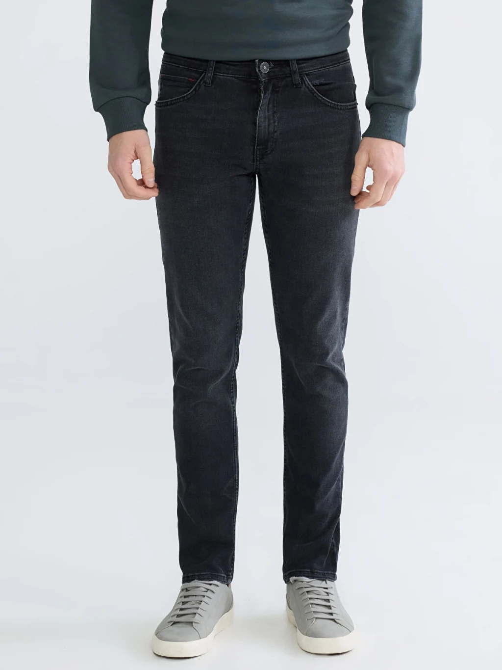 Yüksek pamuk içerikli kumaştan üretilen Slim fit erkek jean pantolon, beş ceplidir ve fermuar ile düğme kapamalıdır.