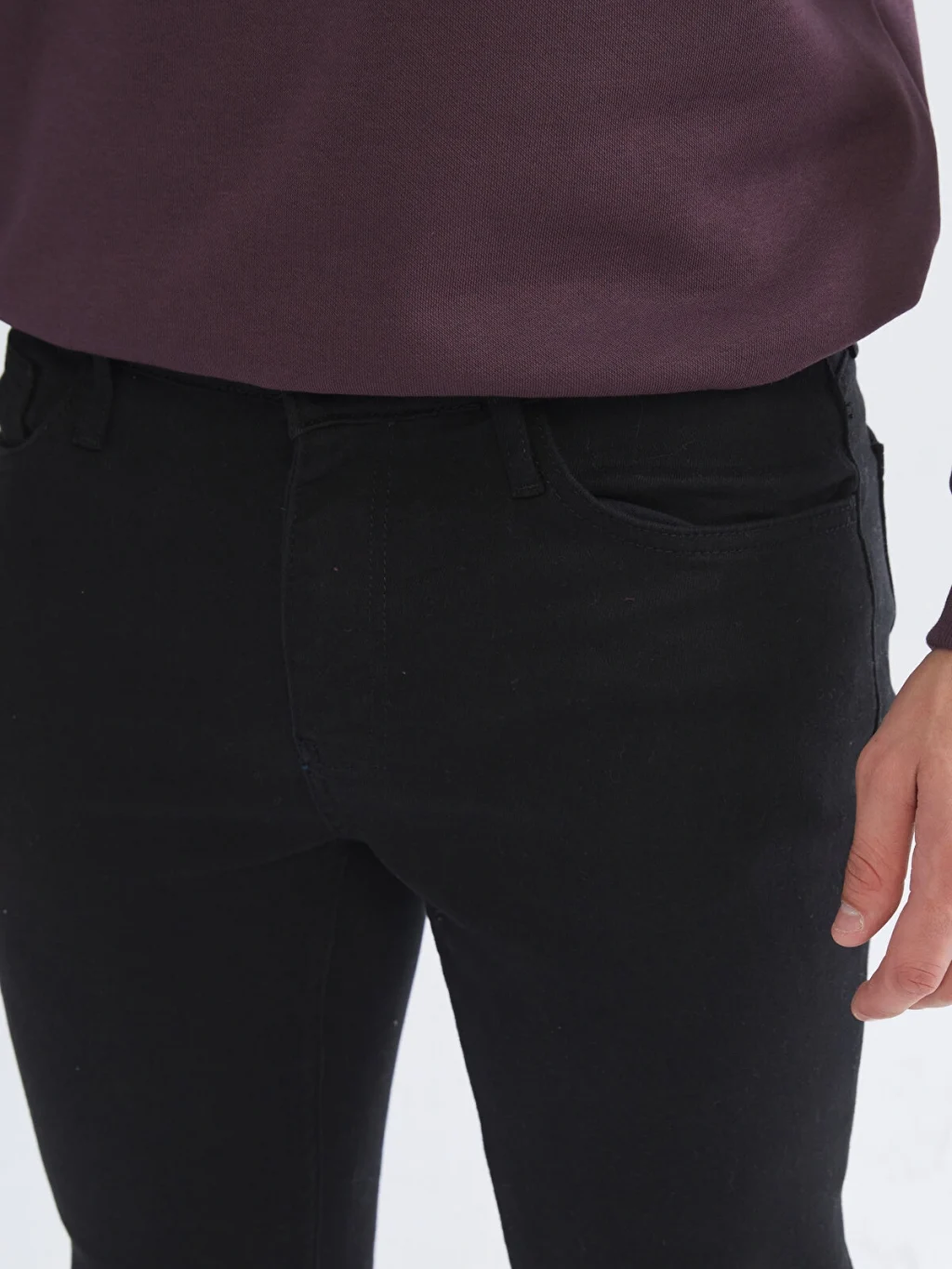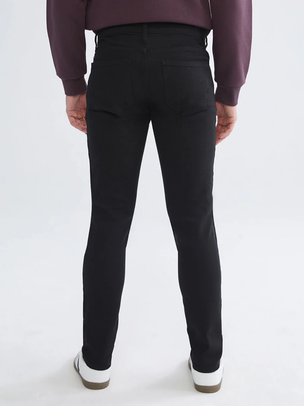 Slim fit jean pantolon, esnek kumaş yapısıyla vücudu hafifçe sararken, paçaya doğru daralan tasarımı size modern bir görünümün yanında gün boyu konfor ve rahatlık sağlar.