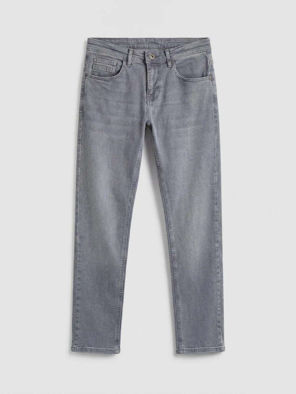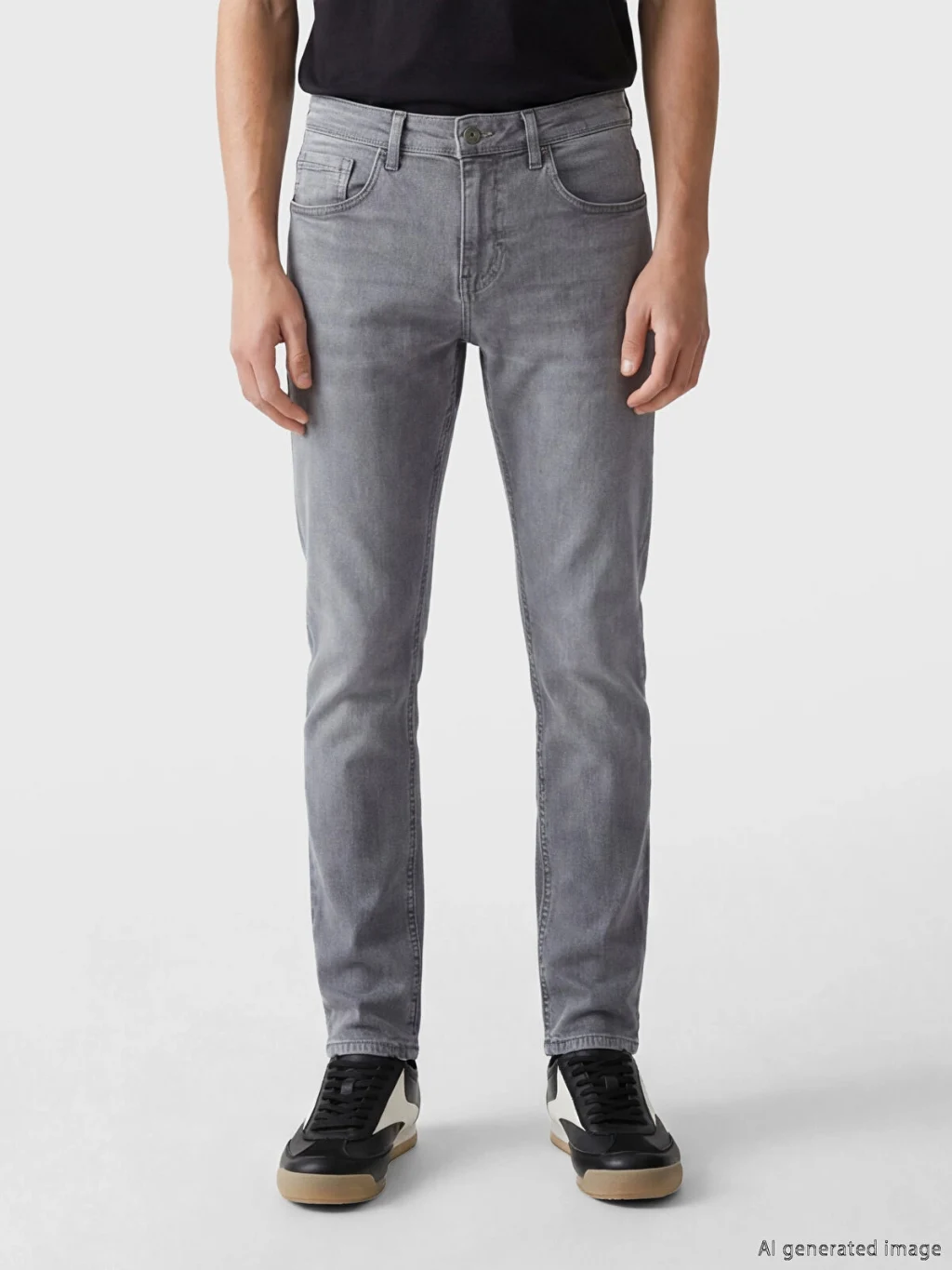 Dar kalıplı erkek jean pantolon, pamuklu denim kumaştan üretilmiştir, beş cepli tasarıma sahip olup fermuar ve düğme kapamalıdır.