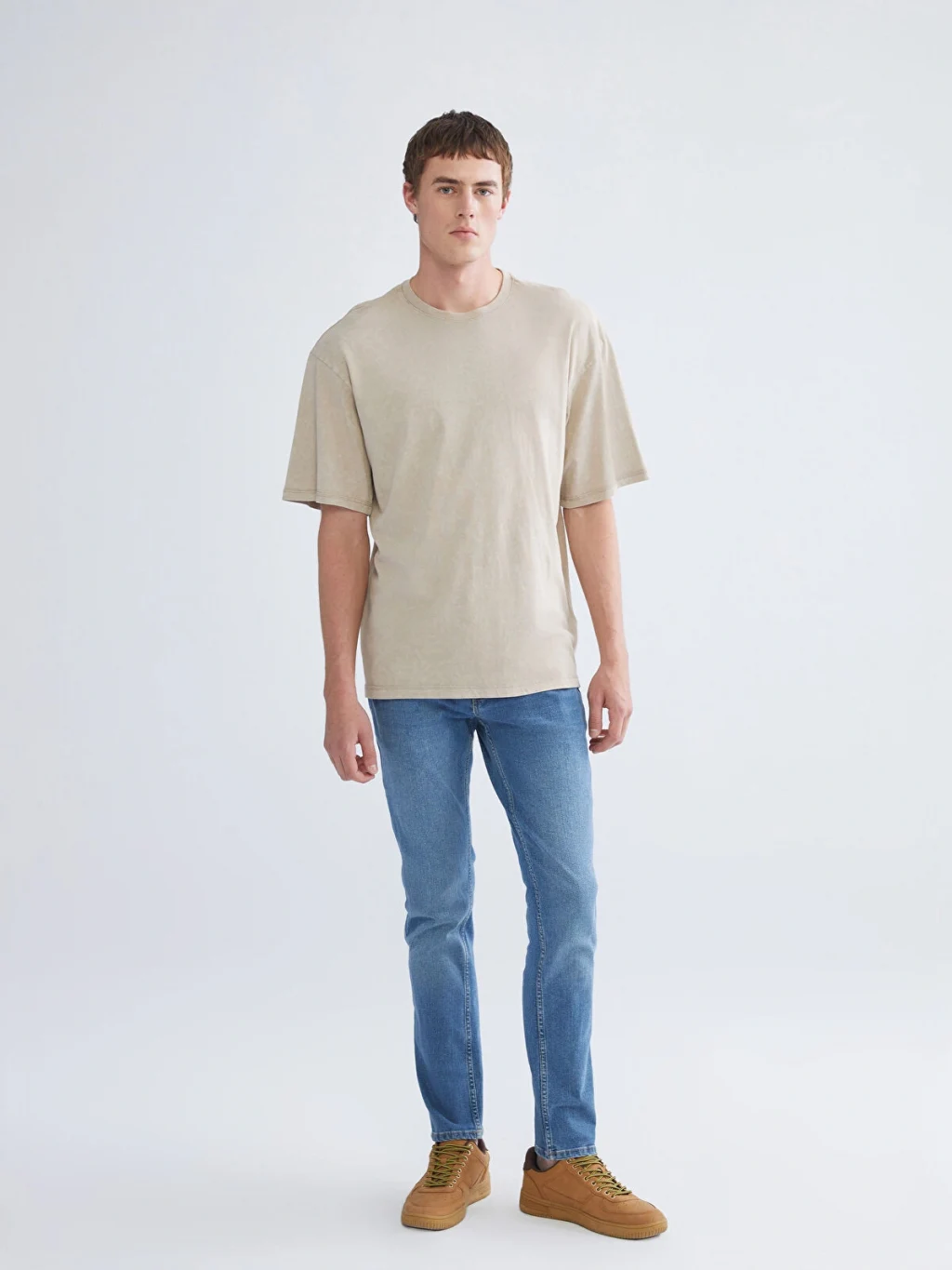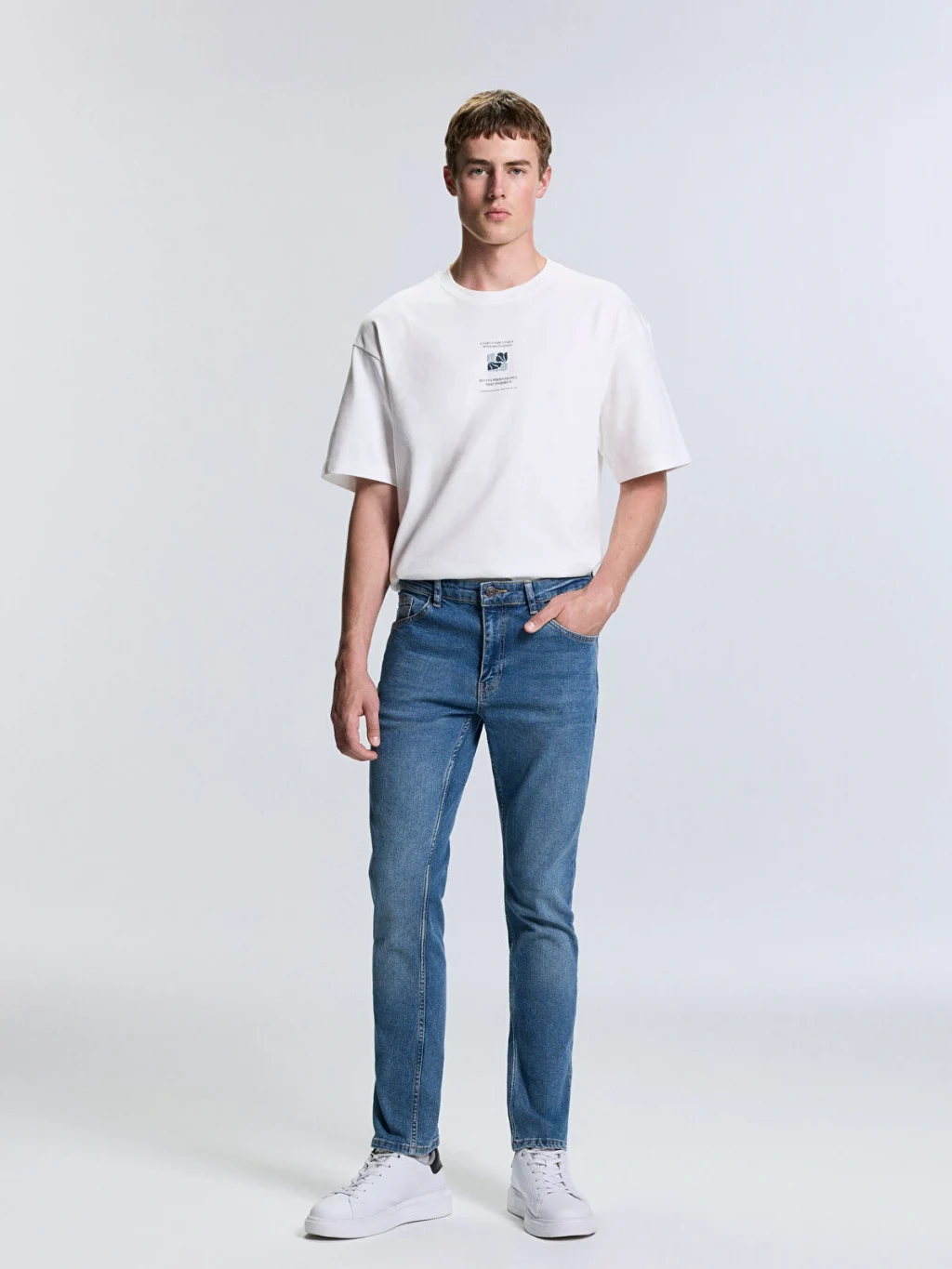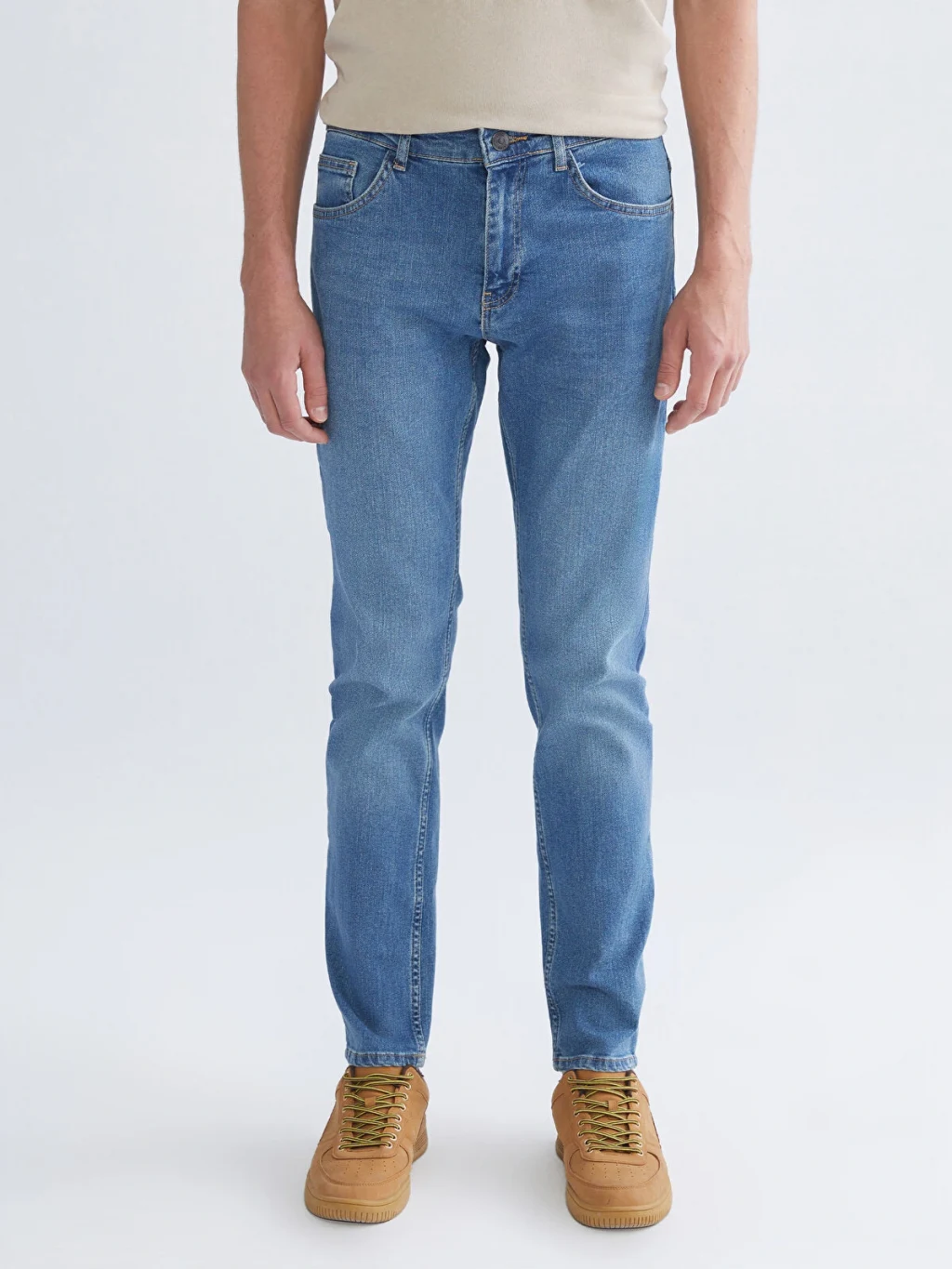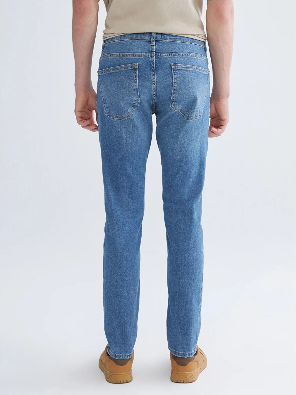 Slim fit jean pantolon, esnek kumaş yapısıyla vücudu hafifçe sararken, paçaya doğru daralan tasarımı size modern bir görünümün yanında gün boyu konfor ve rahatlık sağlar.
