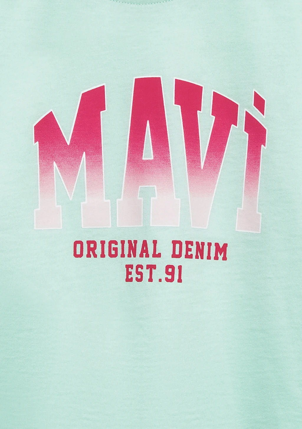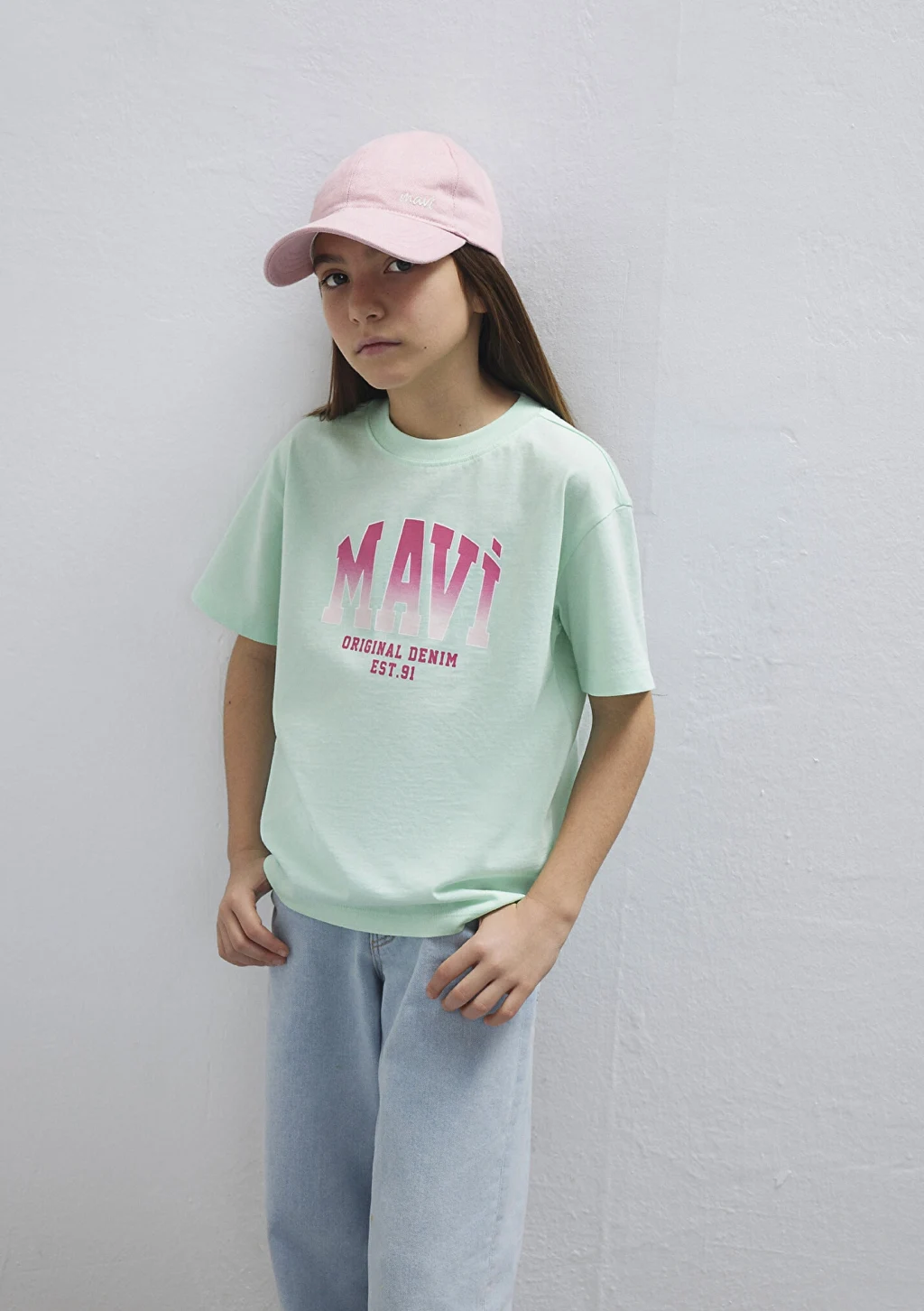 Mavi nin kız çocuk koleksiyonundan Mavi Logo Baskılı Yeşil Tişört.