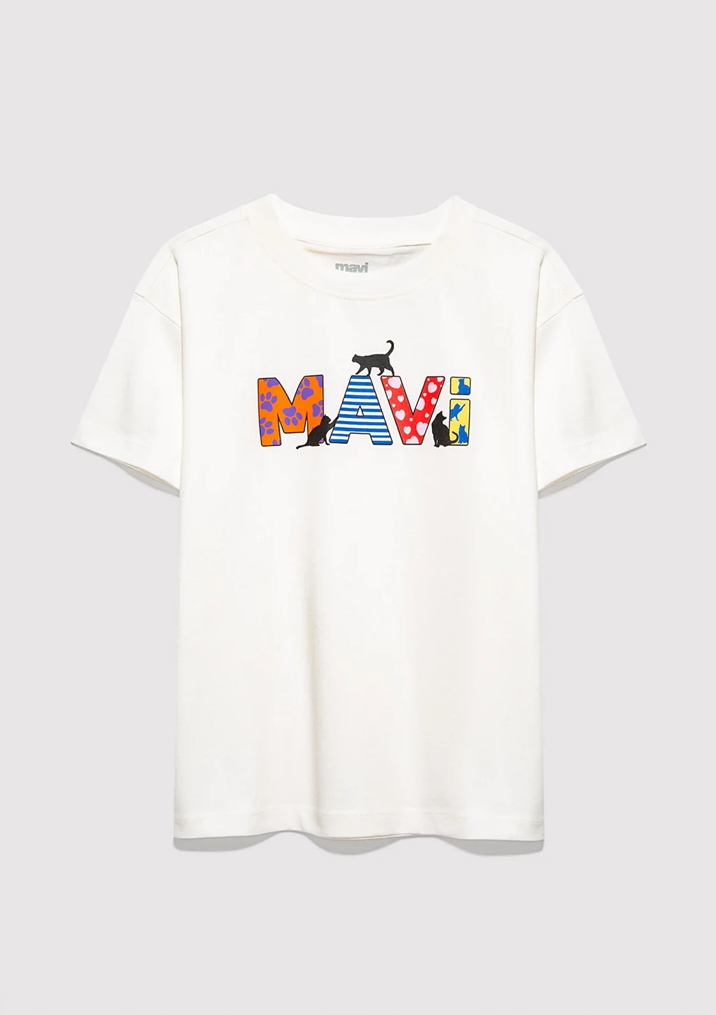 Mavi nin kız çocuk koleksiyonundan Mavi Logo Baskılı Ekru Tişört.