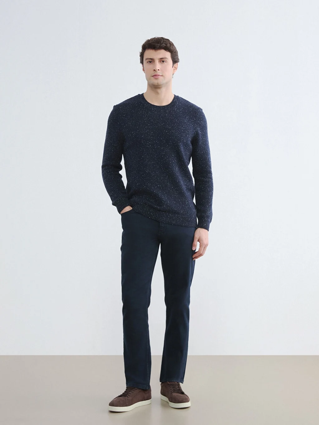 Standart kalıp erkek jean pantolon, %100 pamuk içerikli denim kumaştan üretilmiştir. Beş cepli tasarıma sahip olup fermuar ve düğme kapamalıdır.