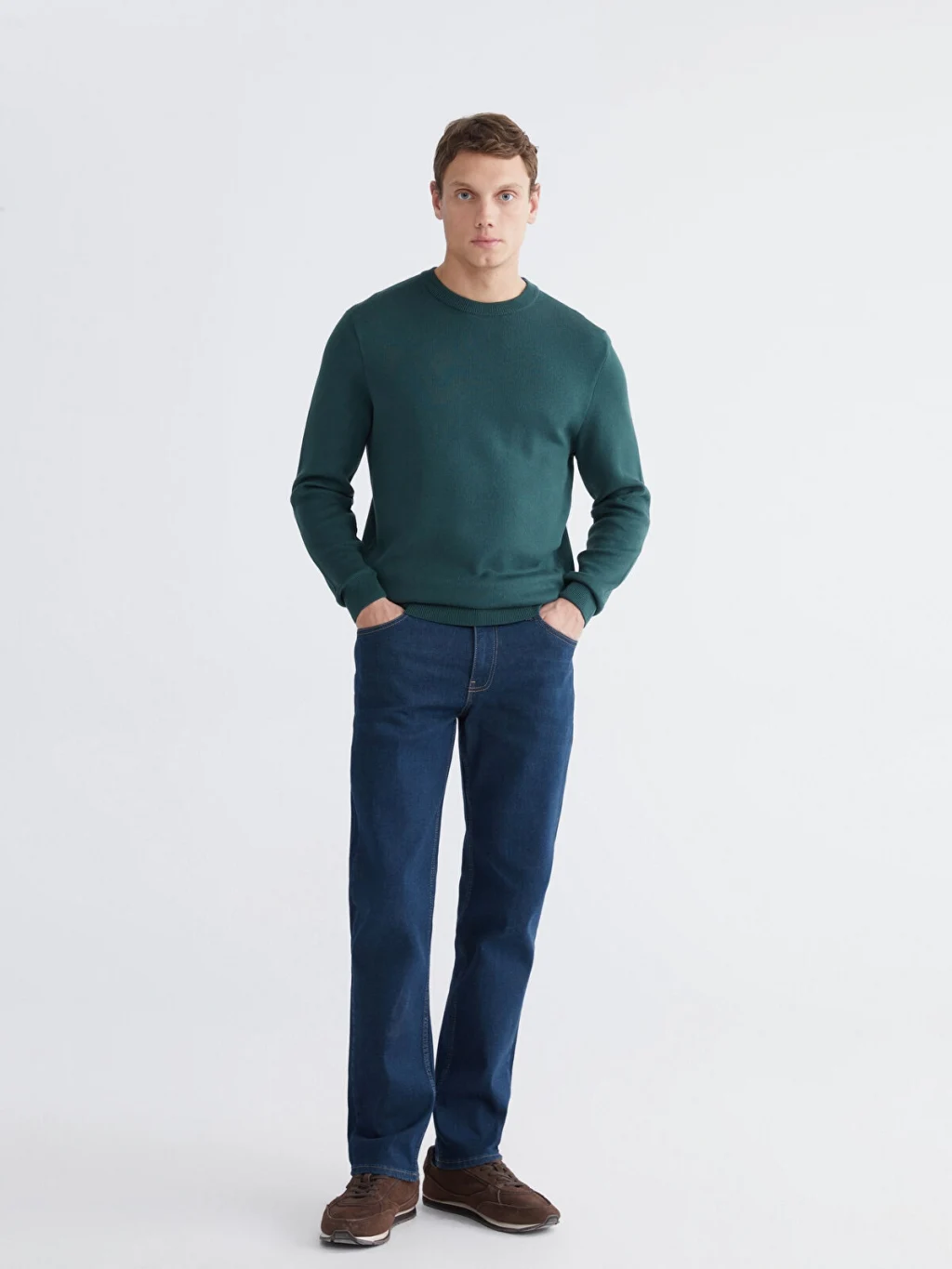 Regular fit kesimli erkek jean pantolon, yüksek pamuk içerikli kumaştan üretilmiştir. Beş cepli tasarıma sahip olup, fermuar ve düğme kapamalıdır.
