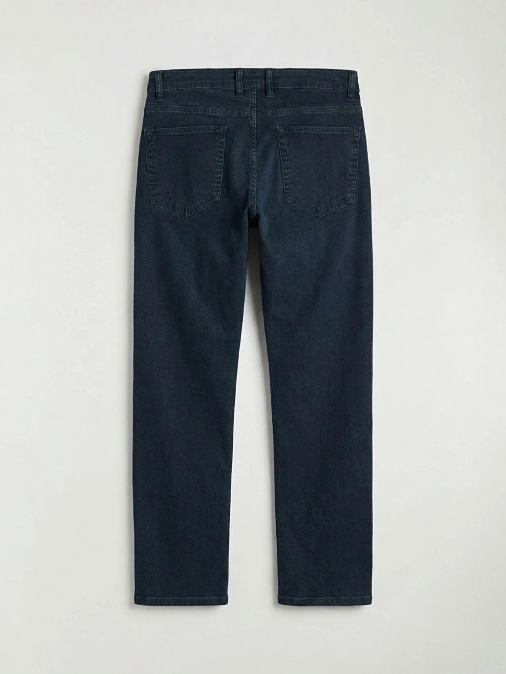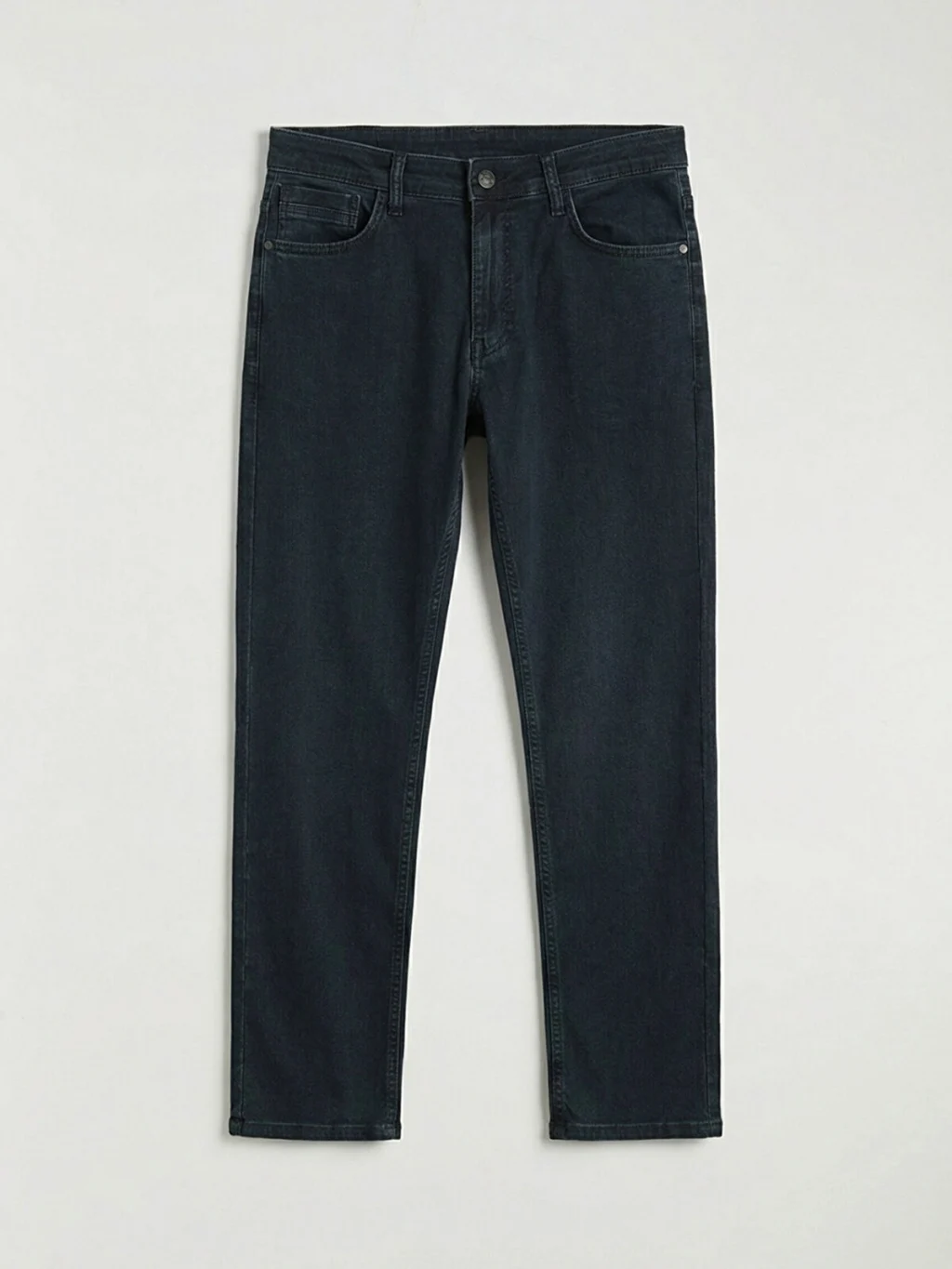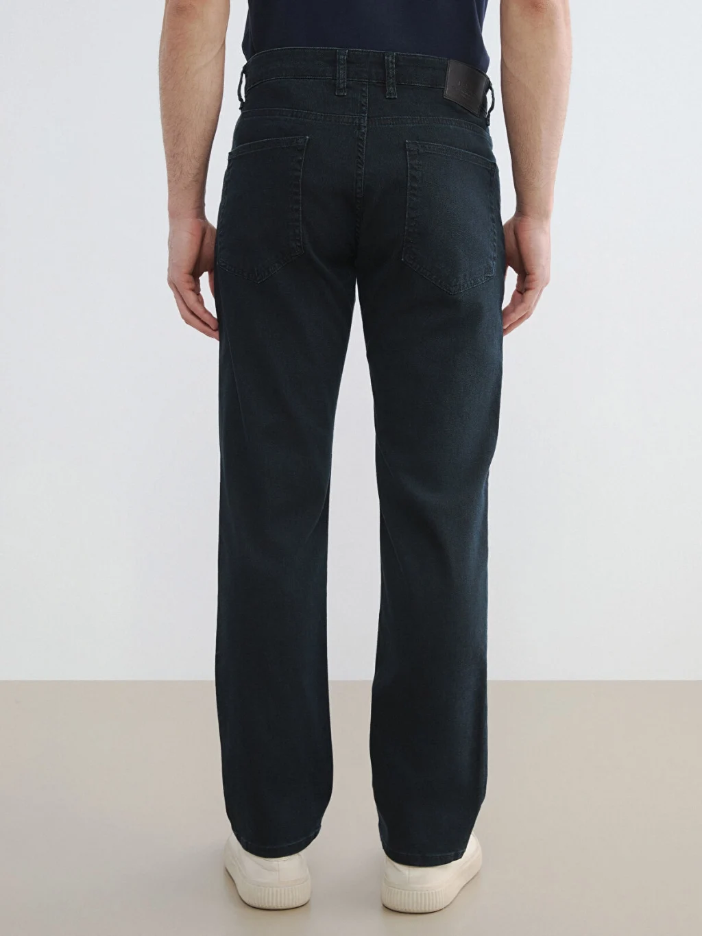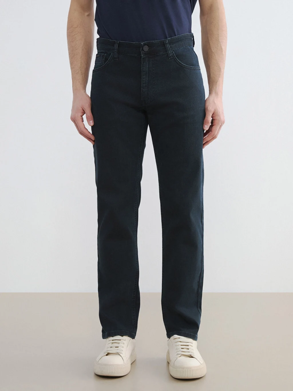 Standart kalıp erkek jean pantolon, %100 Pamuk içeren denim kumaştan üretilmiştir. Beş cepli tasarıma sahiptir, fermuar ve düğme kapamalıdır.