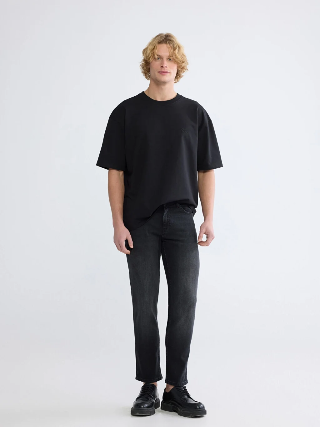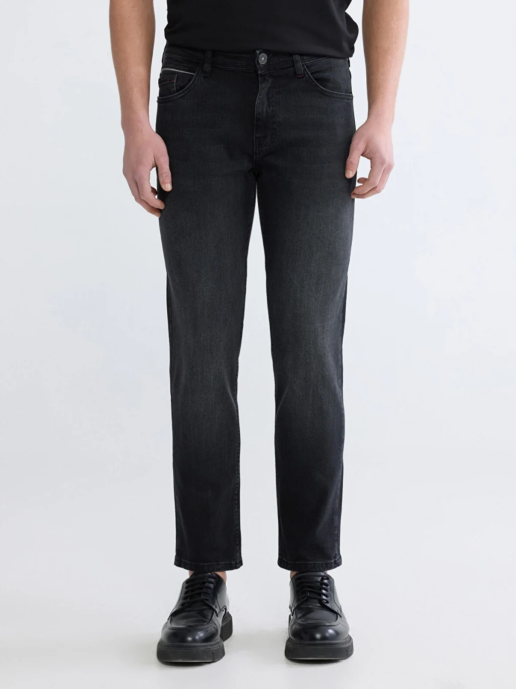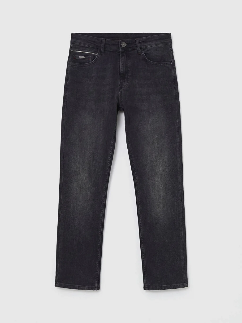 Standart kalıp, erkek jean pantolon, pamuklu kumaştan üretilmiştir, beş cepli tasarıma sahip olup fermuar ve düğme kapamalıdır.