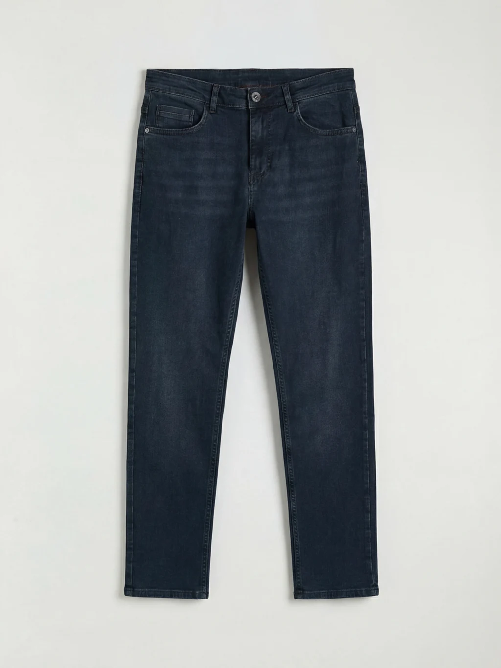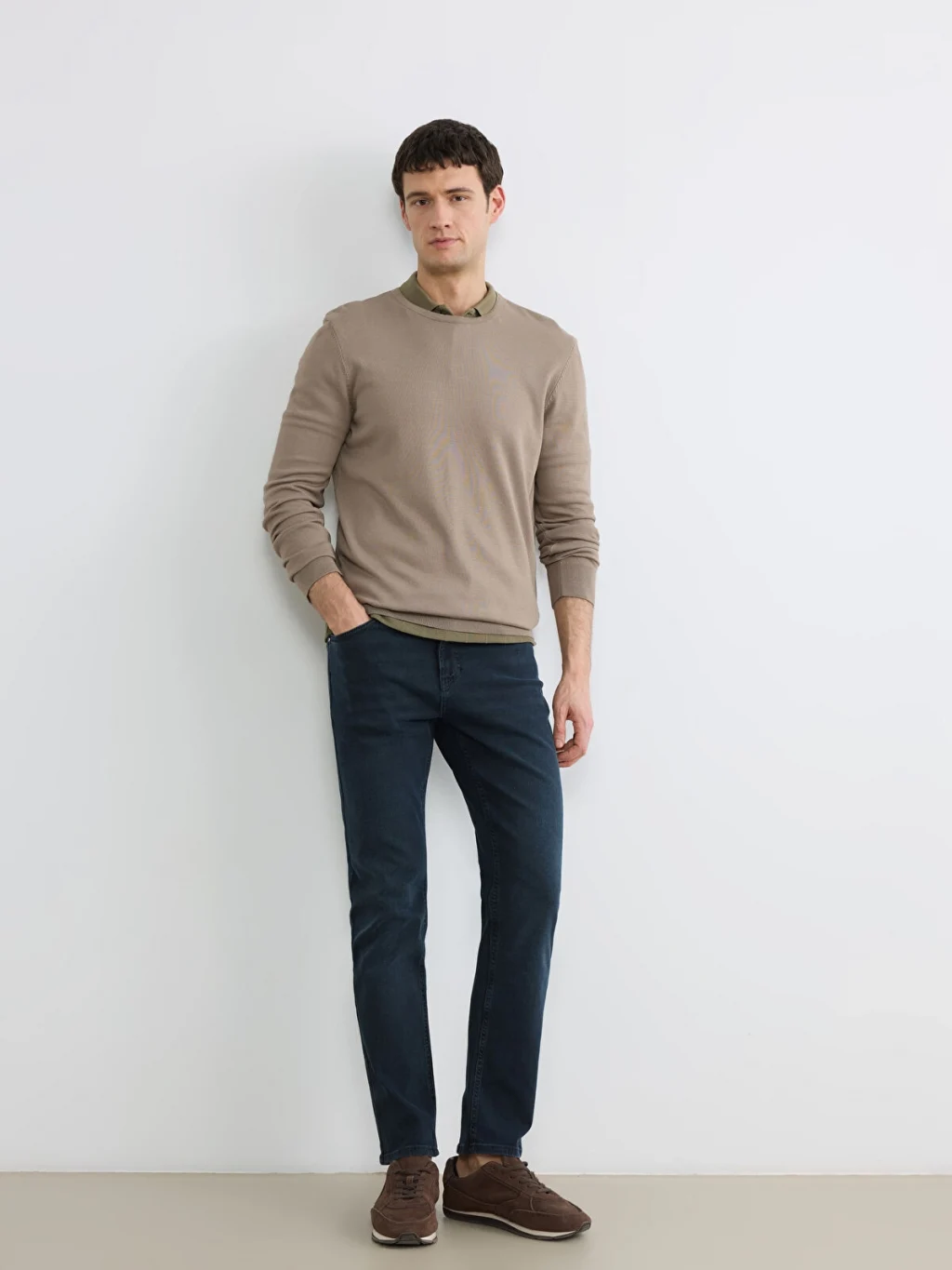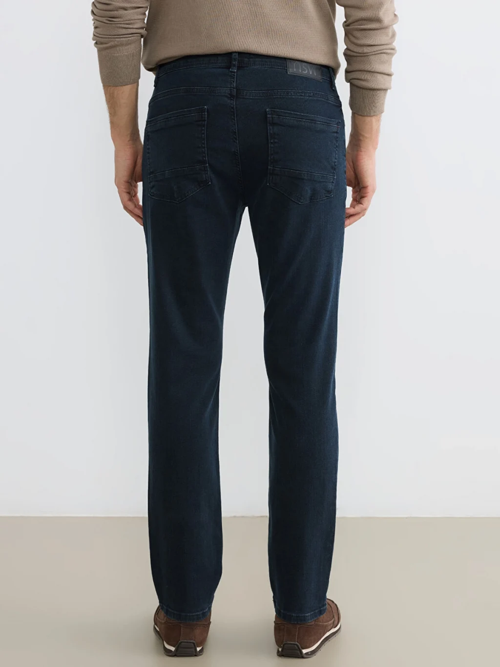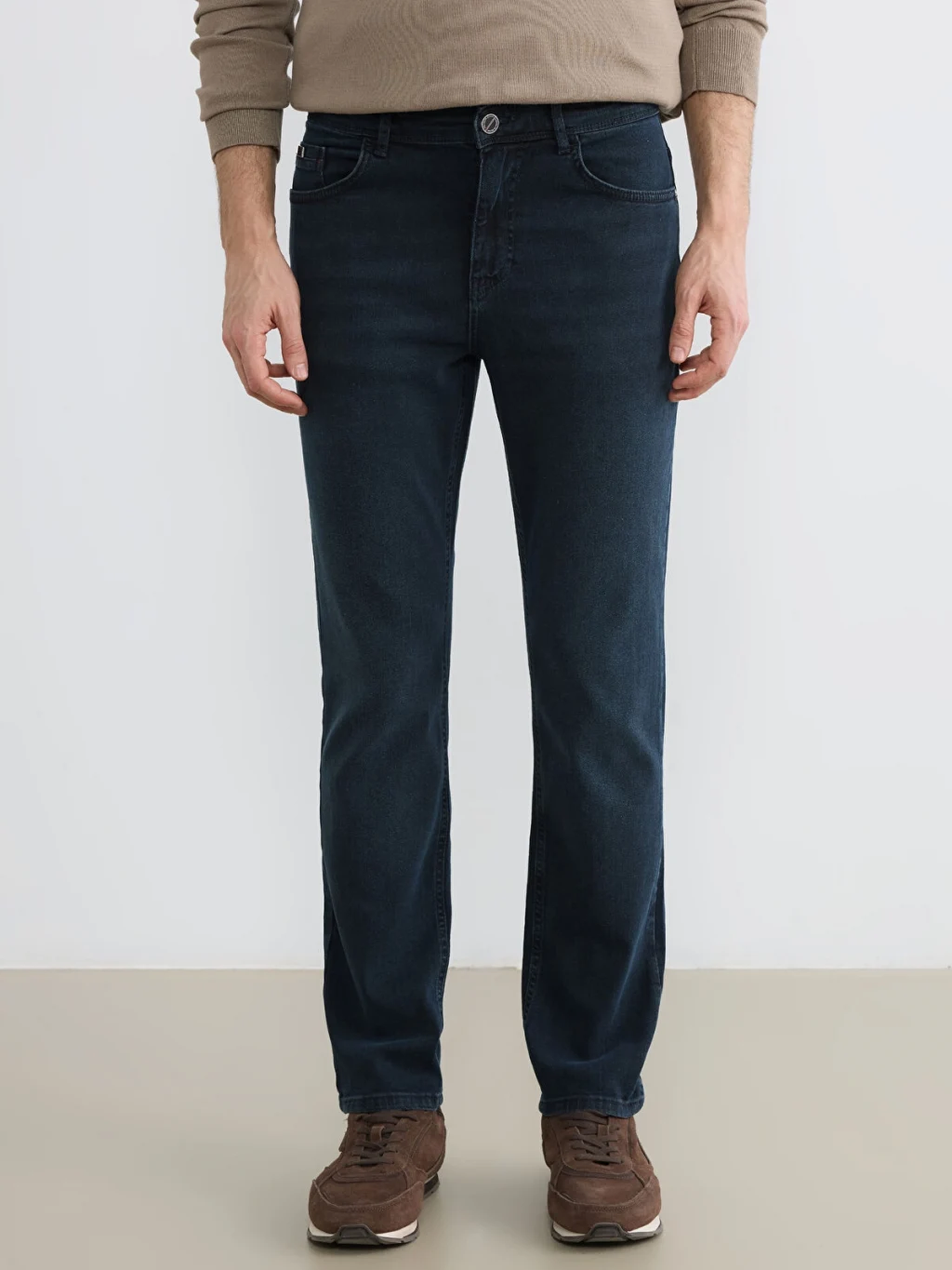 Standart kalıplı erkek jean pantolon, yüksek pamuk içeren denim kumaştan üretilmiştir. Beş cepli tasarıma sahip olup fermuar ve düğme kapamalıdır.