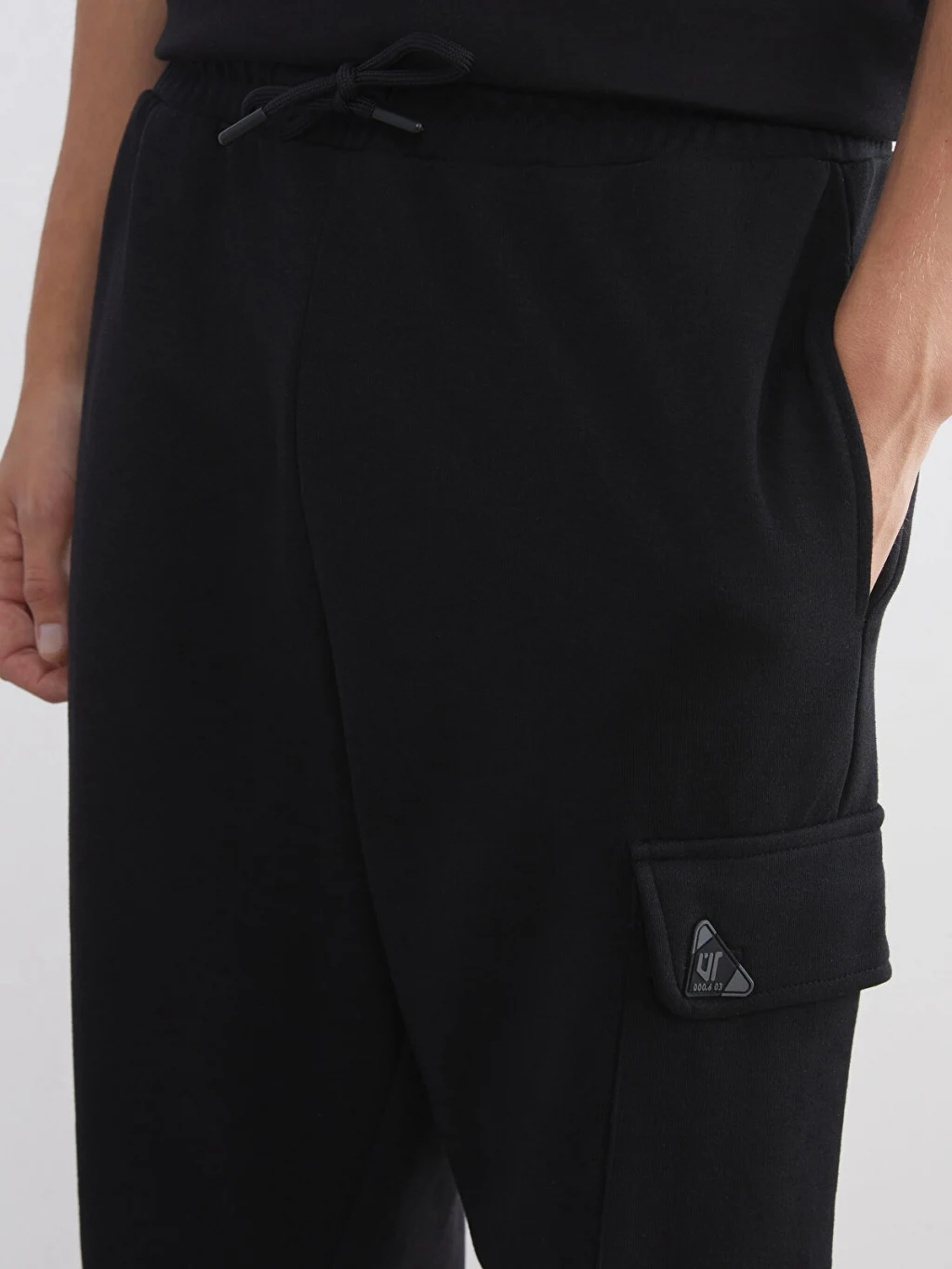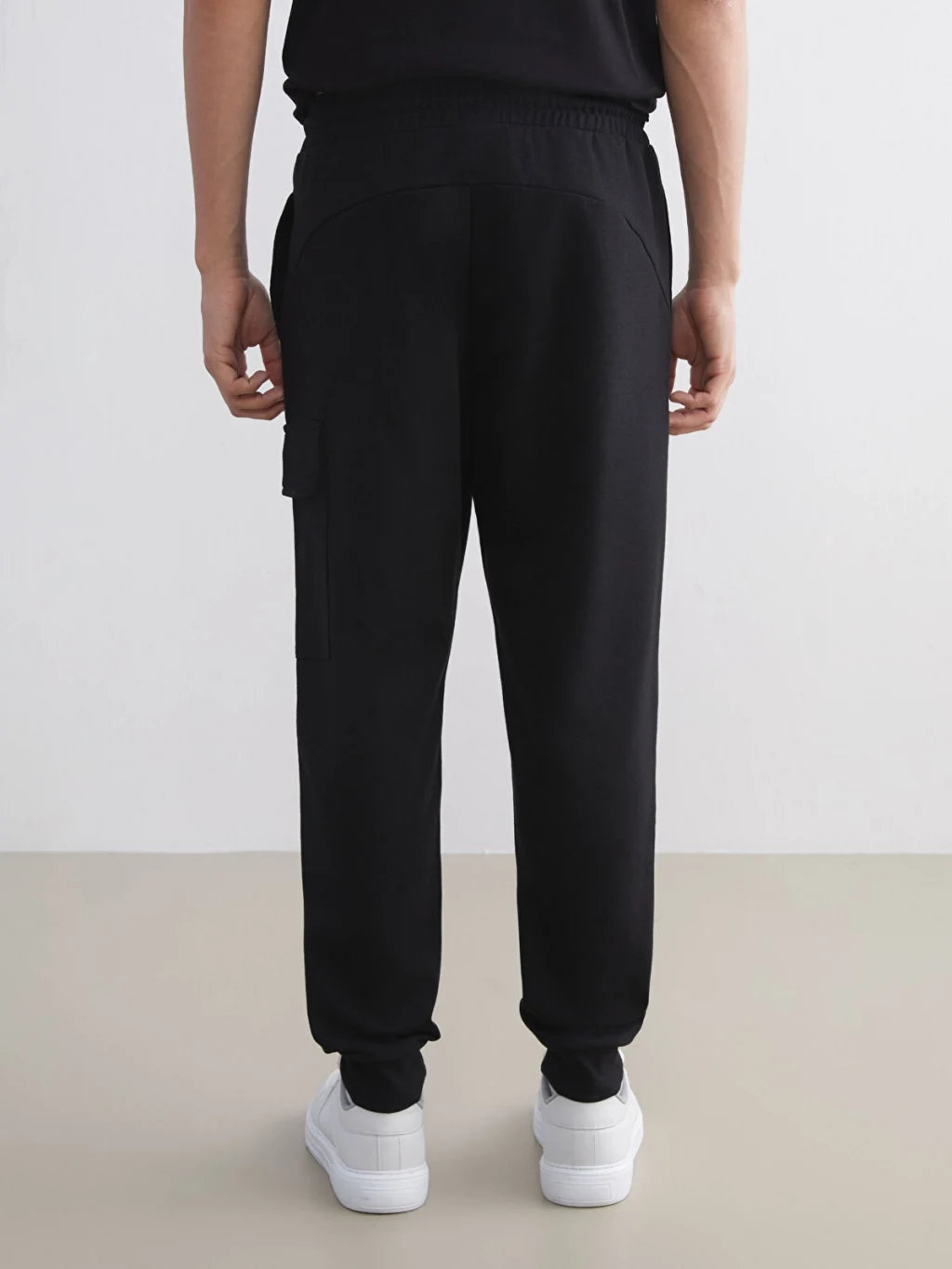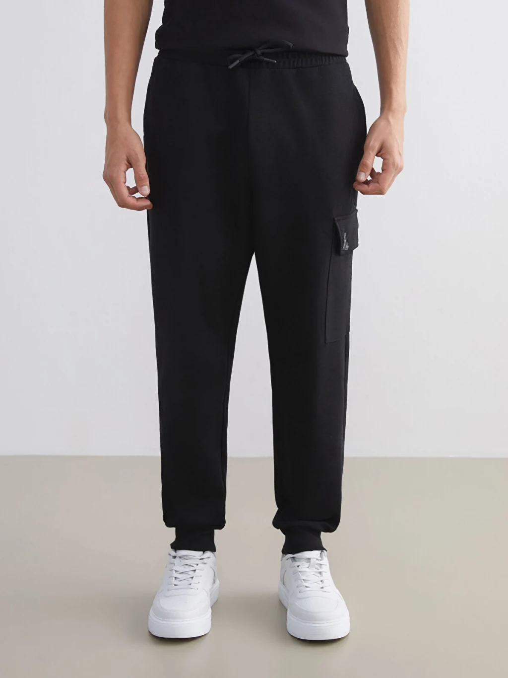 Beli lastikli ve ayarlanabilir bağcıklı erkek eşofman altı, interlok kumaştan üretilmiştir. Paçaları ribanalıdır ve kargo cebe sahiptir.