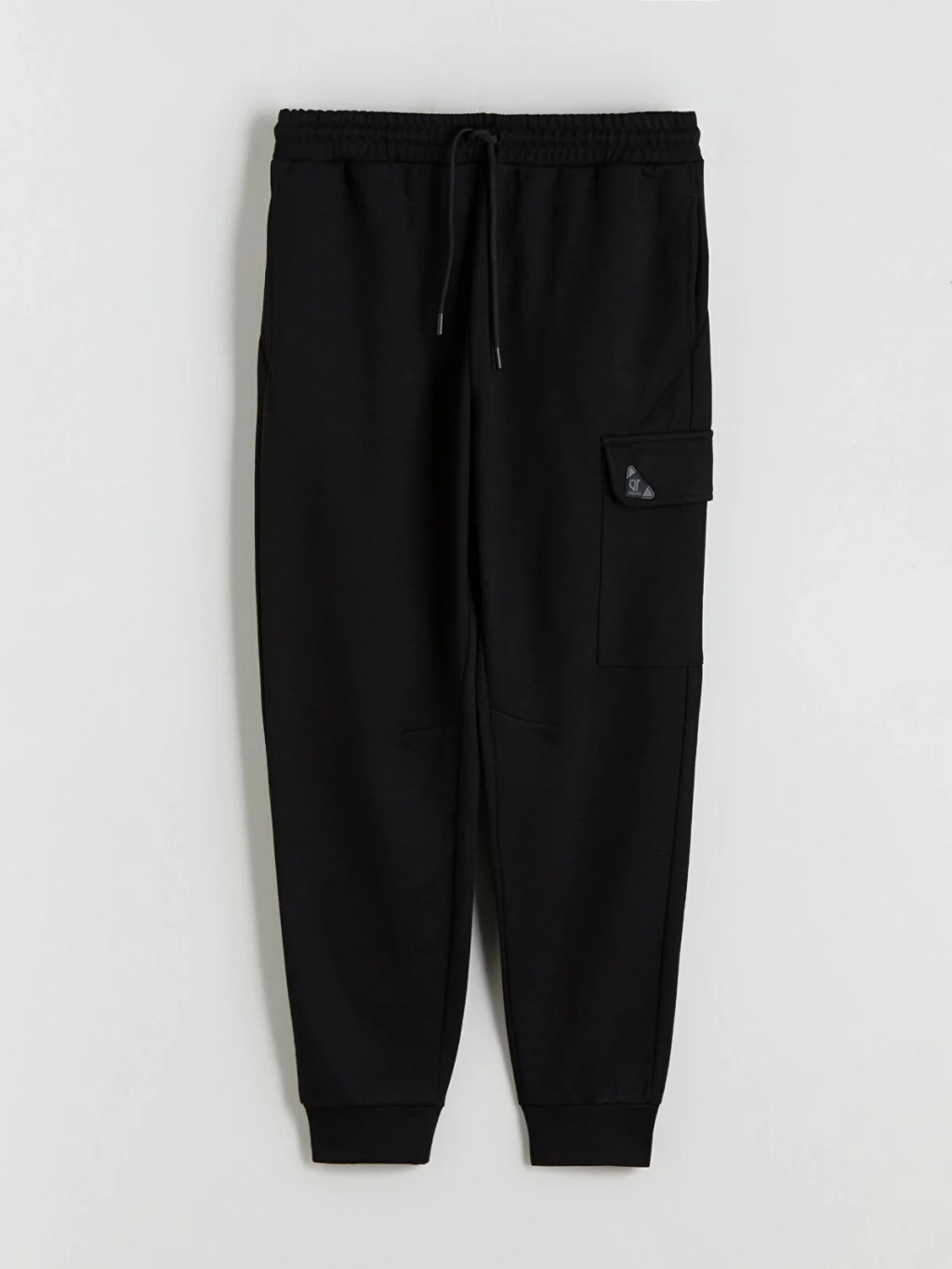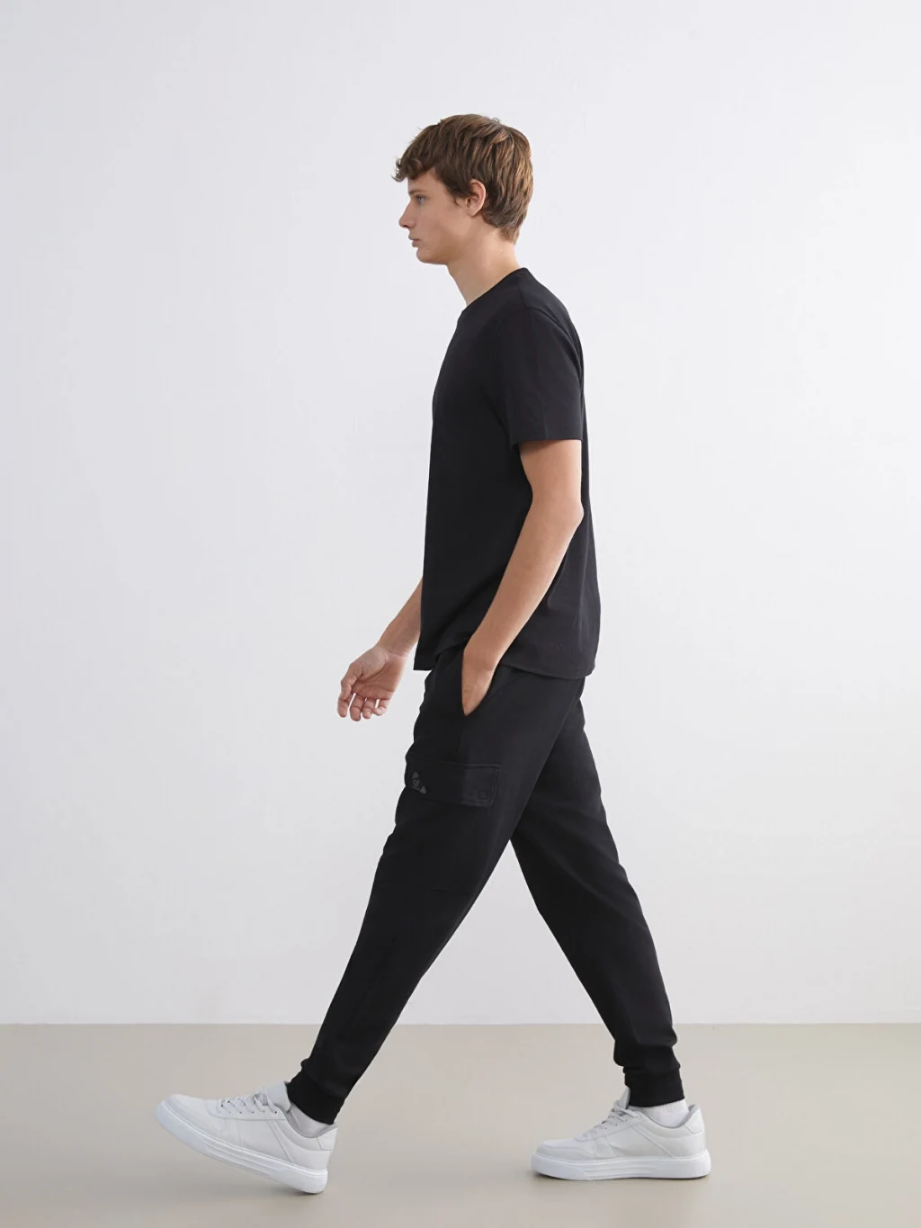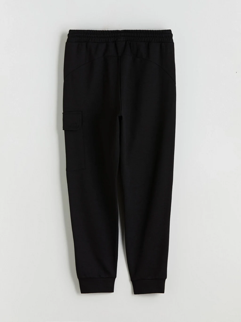 Beli lastikli ve ayarlanabilir bağcıklı erkek eşofman altı, interlok kumaştan üretilmiştir. Paçaları ribanalıdır ve kargo cebe sahiptir.