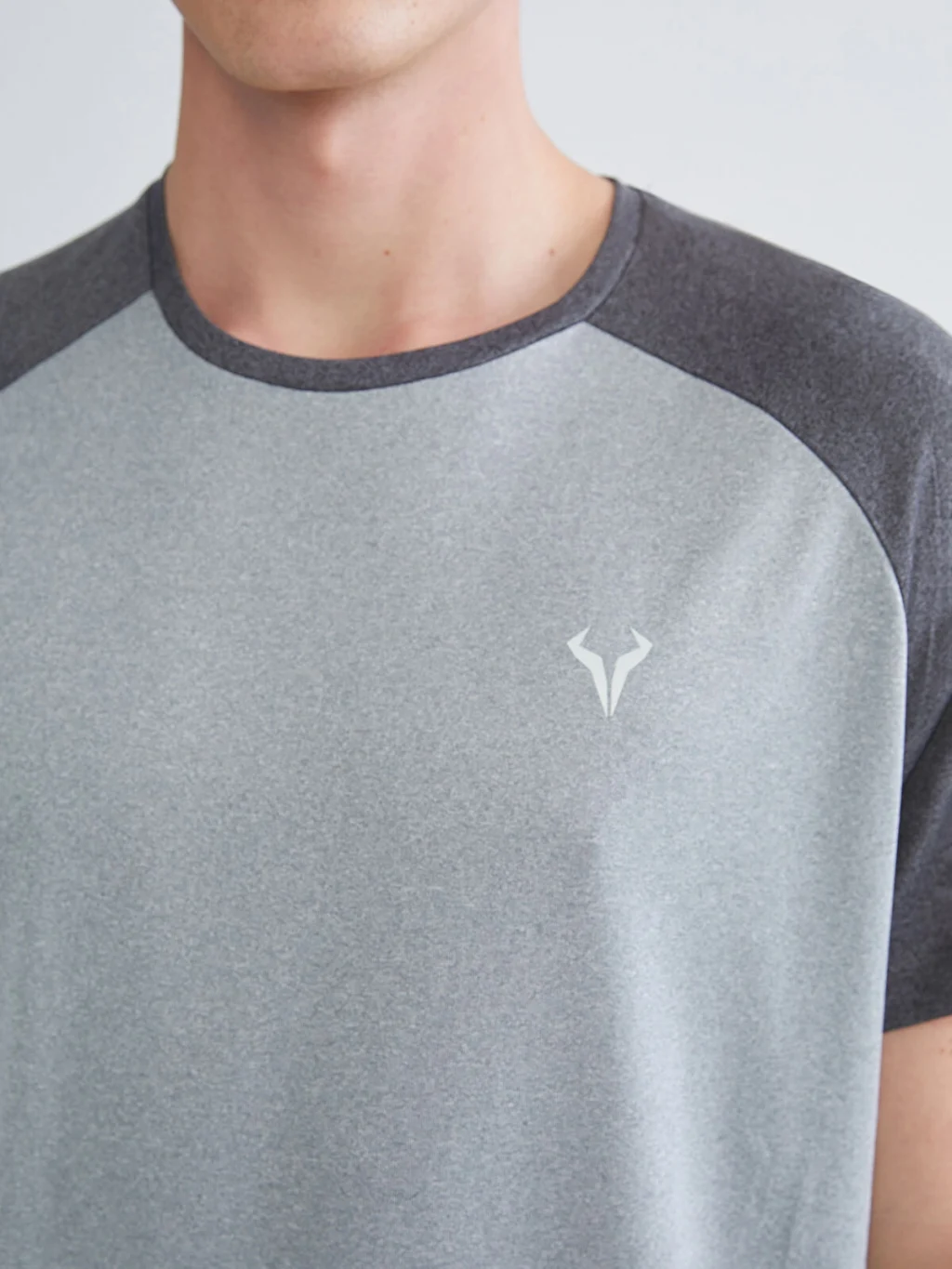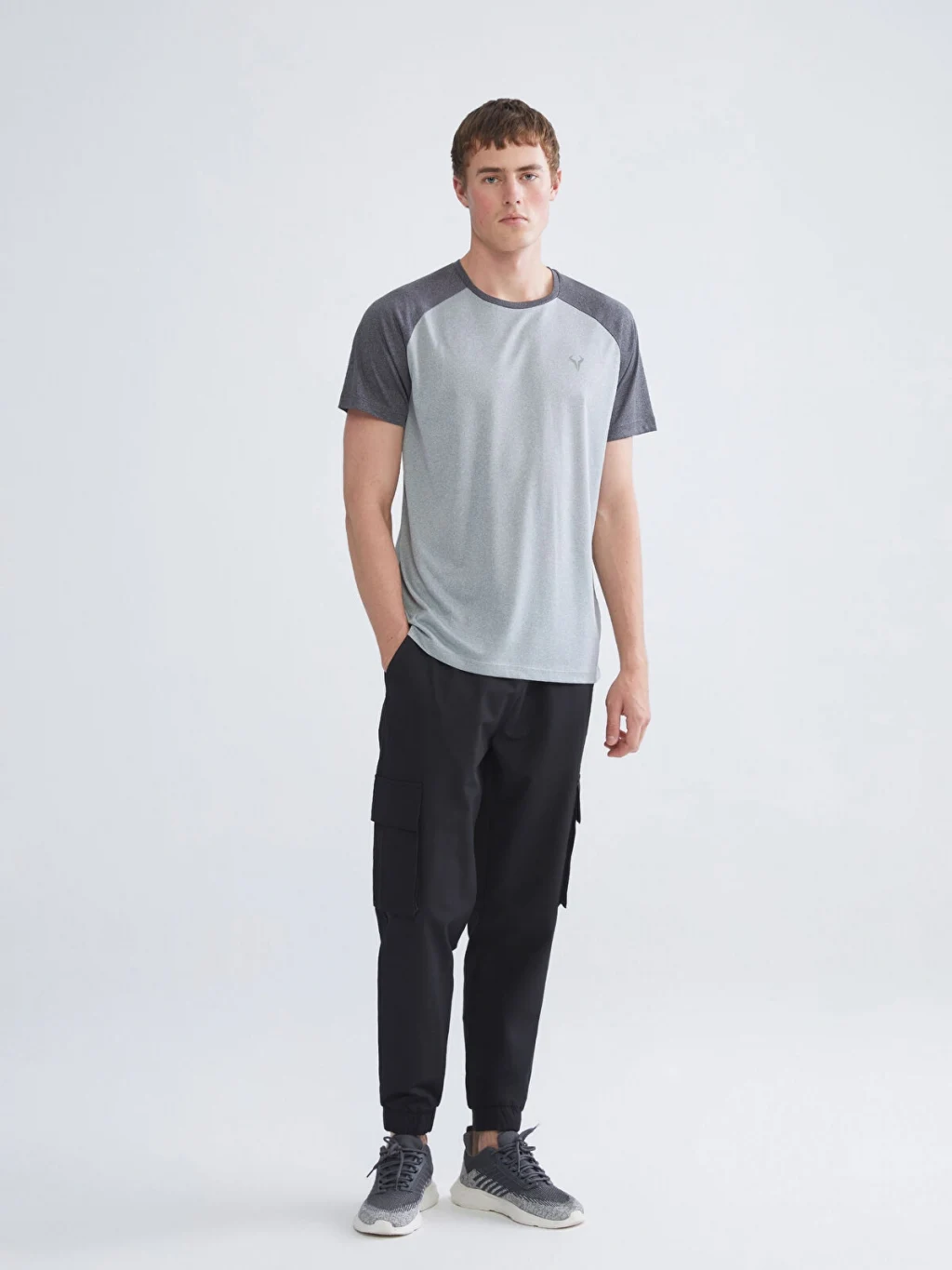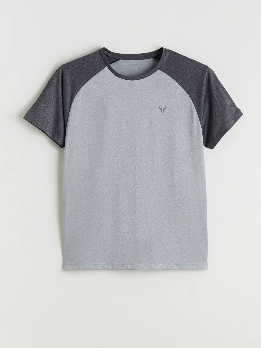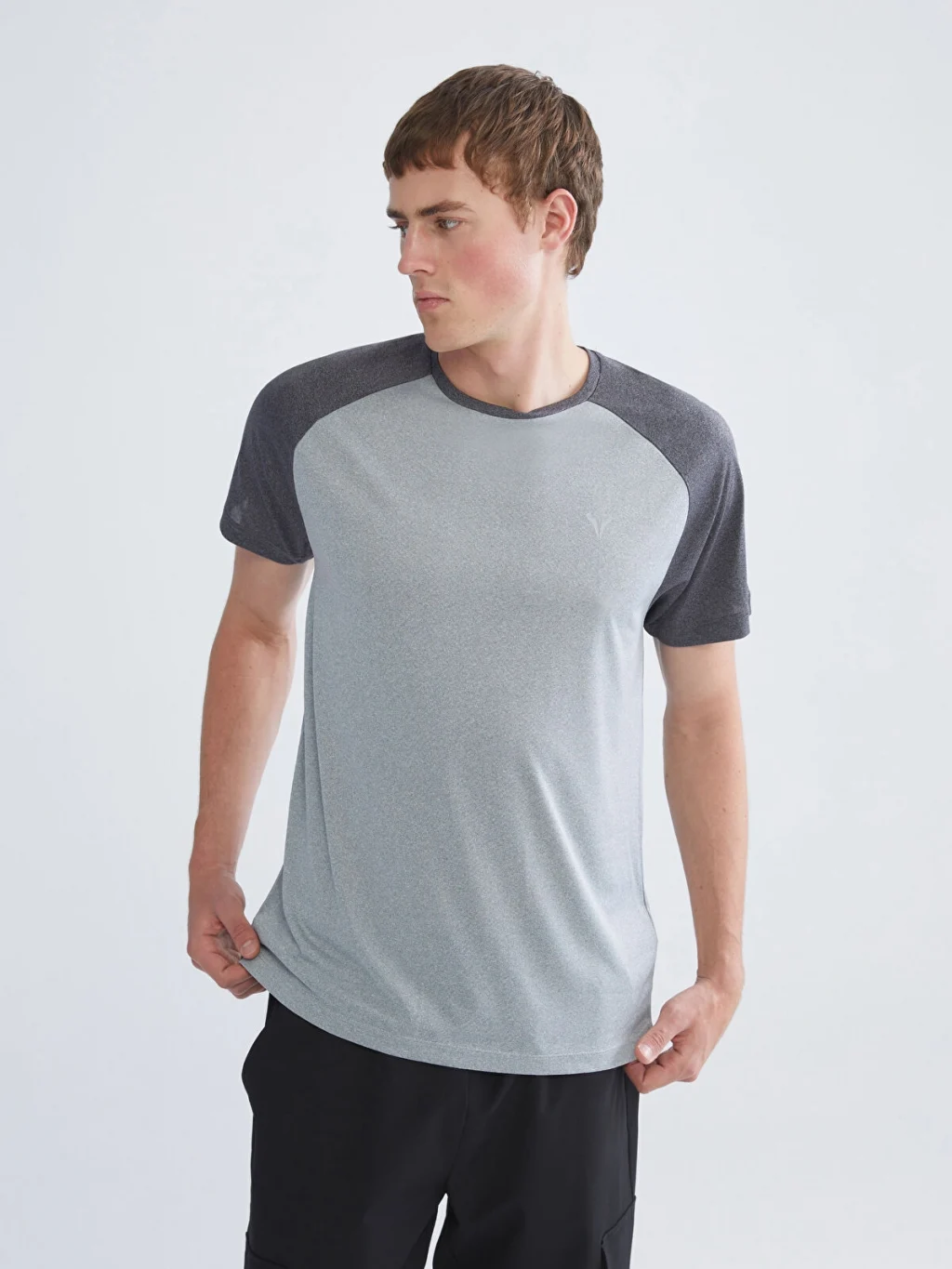 Standart kalıplı, bisiklet yaka ve reglan kısa kollu erkek tişört, göğüs kısmında logo detayına sahiptir.