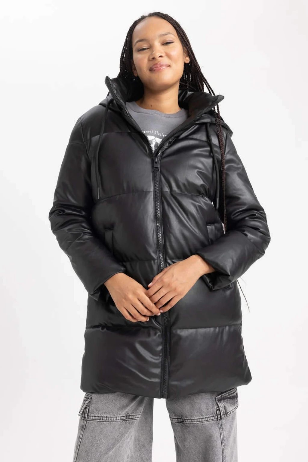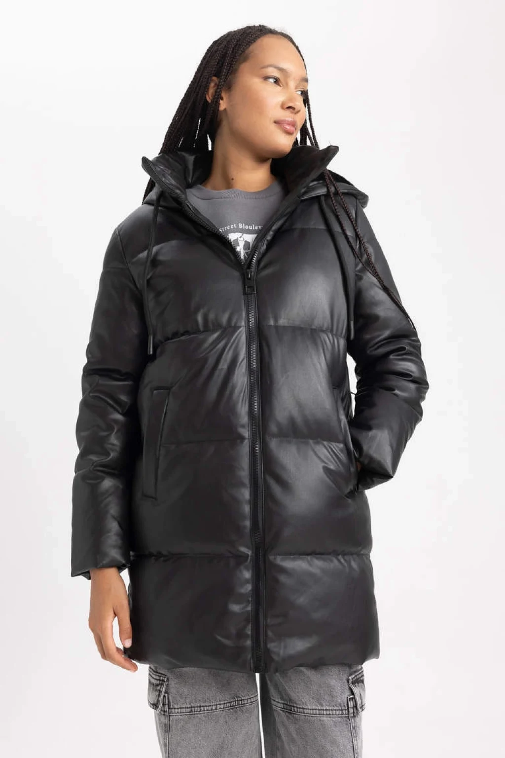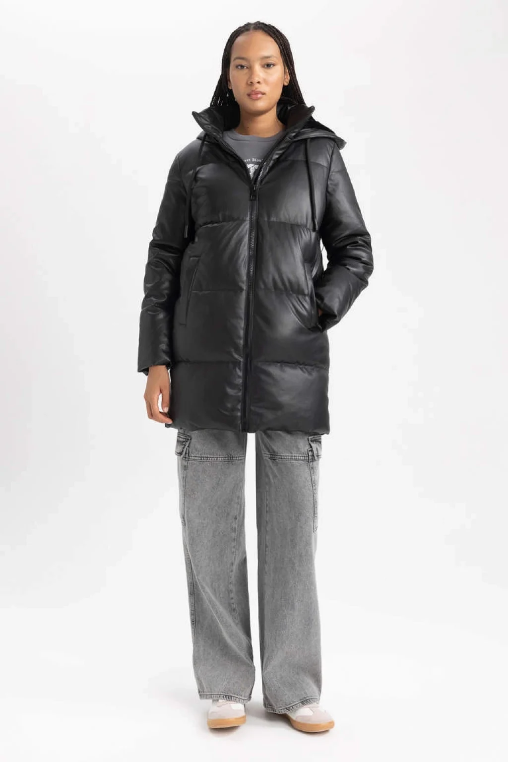 Kapüşonlu, sıcak tutan kumaşı, fermuar kapamalı, suni deri, fonksiyonel cepli, kapüşonlu modeli ile çok şık, serin havaların spor kombininin en önemli parçası ile fit bir görünüm sağlayan, form duruşu ile tarzınızın tamamlayıcı parçası olacak DeFacto Kadın Su Geçirmez Relax Fit Kapüşonlu Puffer Şişme Suni Deri Parka.