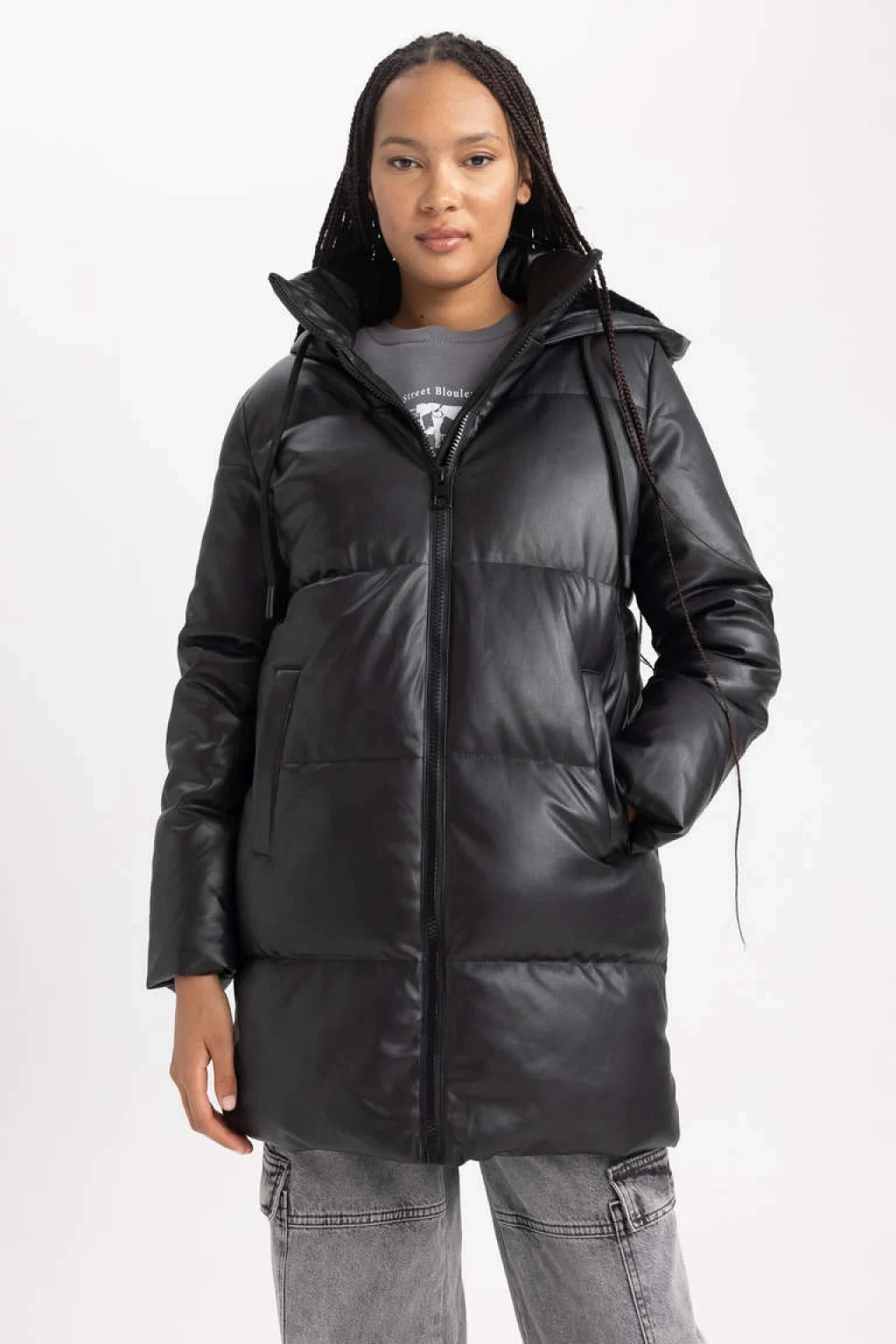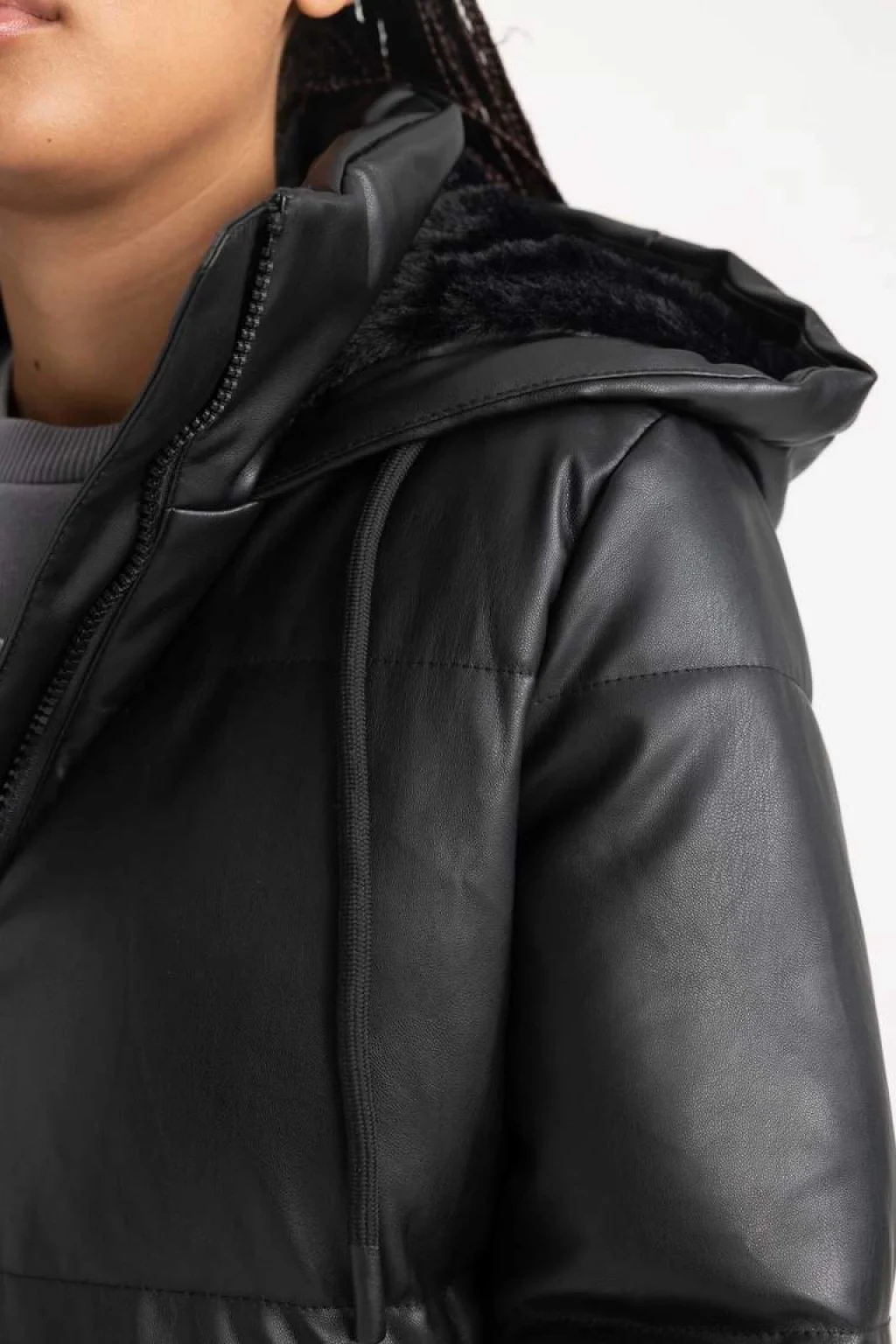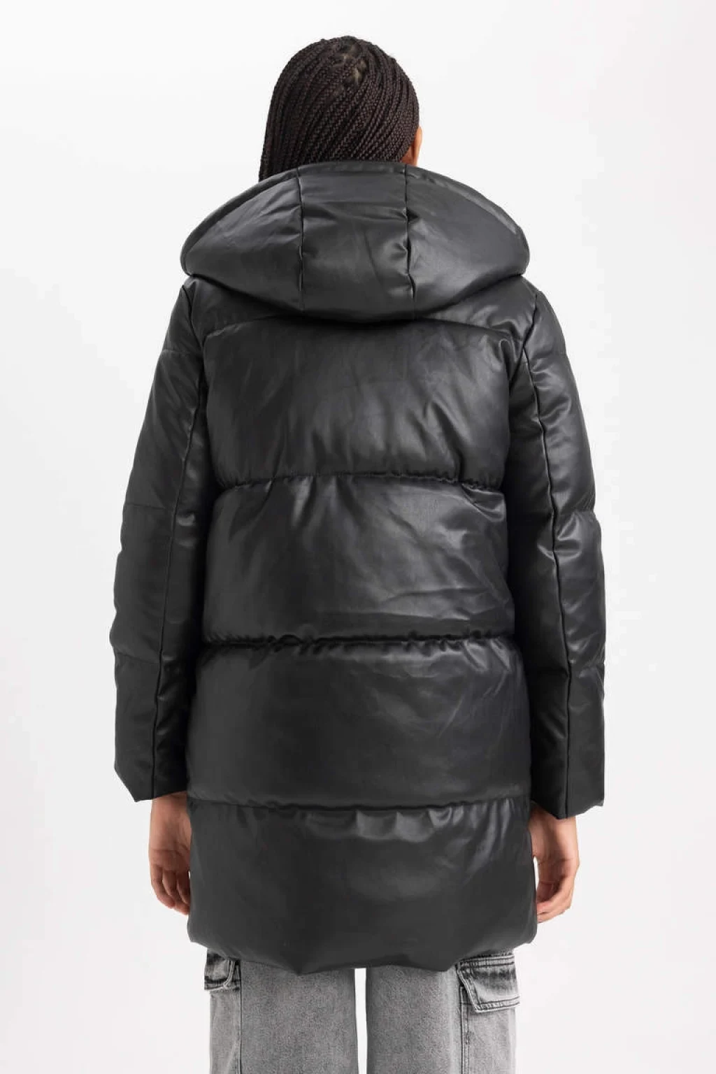 Kapüşonlu, sıcak tutan kumaşı, fermuar kapamalı, suni deri, fonksiyonel cepli, kapüşonlu modeli ile çok şık, serin havaların spor kombininin en önemli parçası ile fit bir görünüm sağlayan, form duruşu ile tarzınızın tamamlayıcı parçası olacak DeFacto Kadın Su Geçirmez Relax Fit Kapüşonlu Puffer Şişme Suni Deri Parka.
