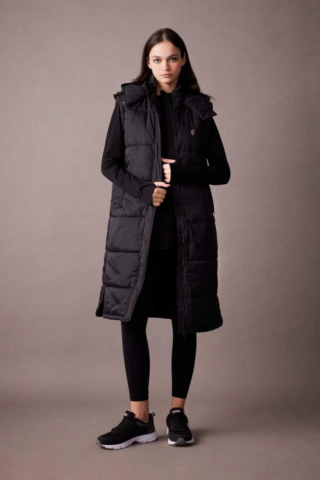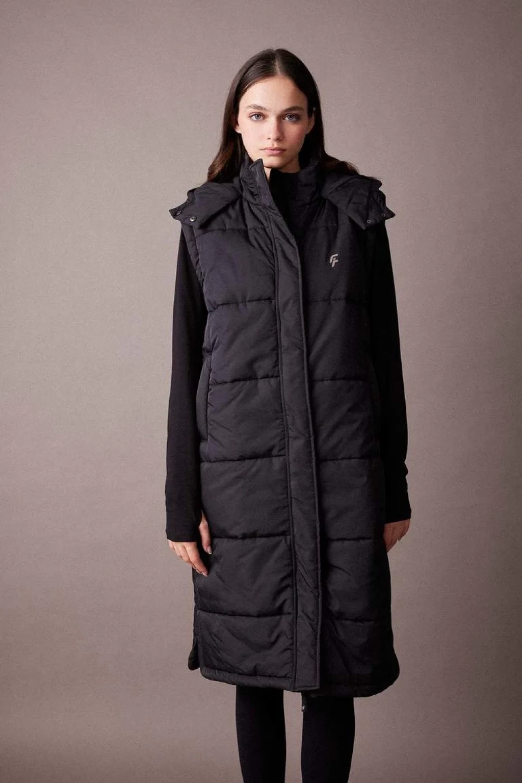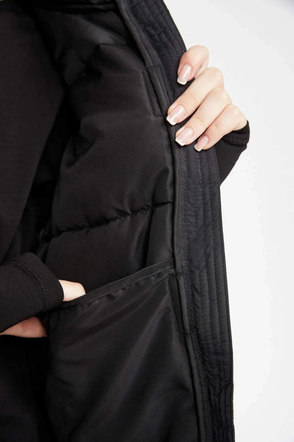 Fermuar kapamalı, fermuarlı yan cepli, uzun trend tasarımı ile pantolon, sweatshirt, kazaklar ve gömlekler ile mükemmel görünen kombinler oluşturabileceğiniz DeFactoFit Su İtici Kapüşonlu Sporcu Uzun Şişme Yelek.