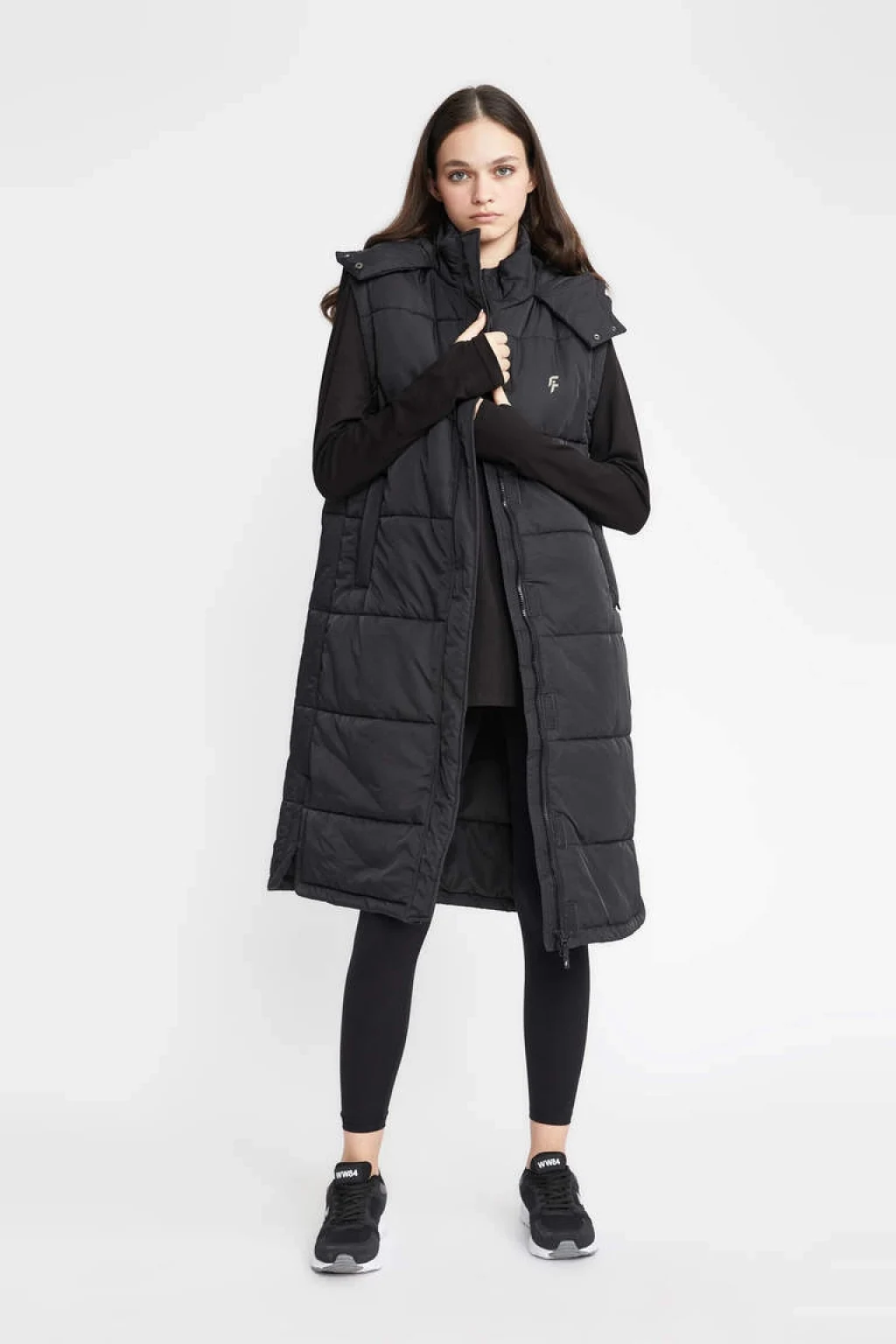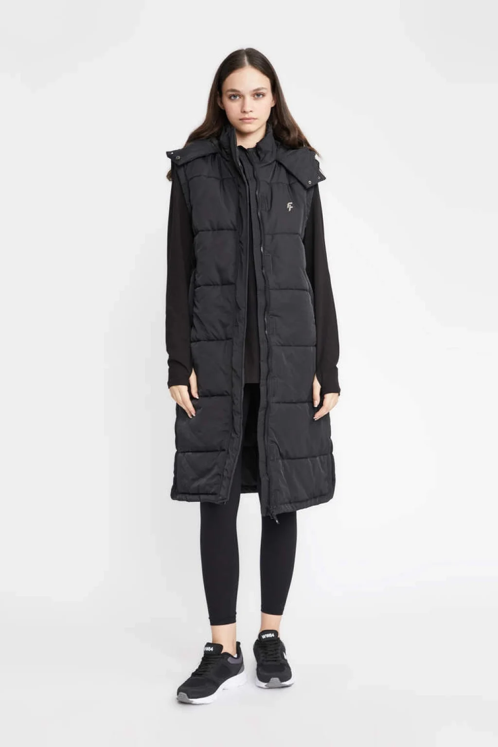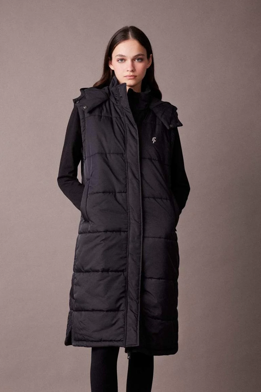 Fermuar kapamalı, fermuarlı yan cepli, uzun trend tasarımı ile pantolon, sweatshirt, kazaklar ve gömlekler ile mükemmel görünen kombinler oluşturabileceğiniz DeFactoFit Su İtici Kapüşonlu Sporcu Uzun Şişme Yelek.