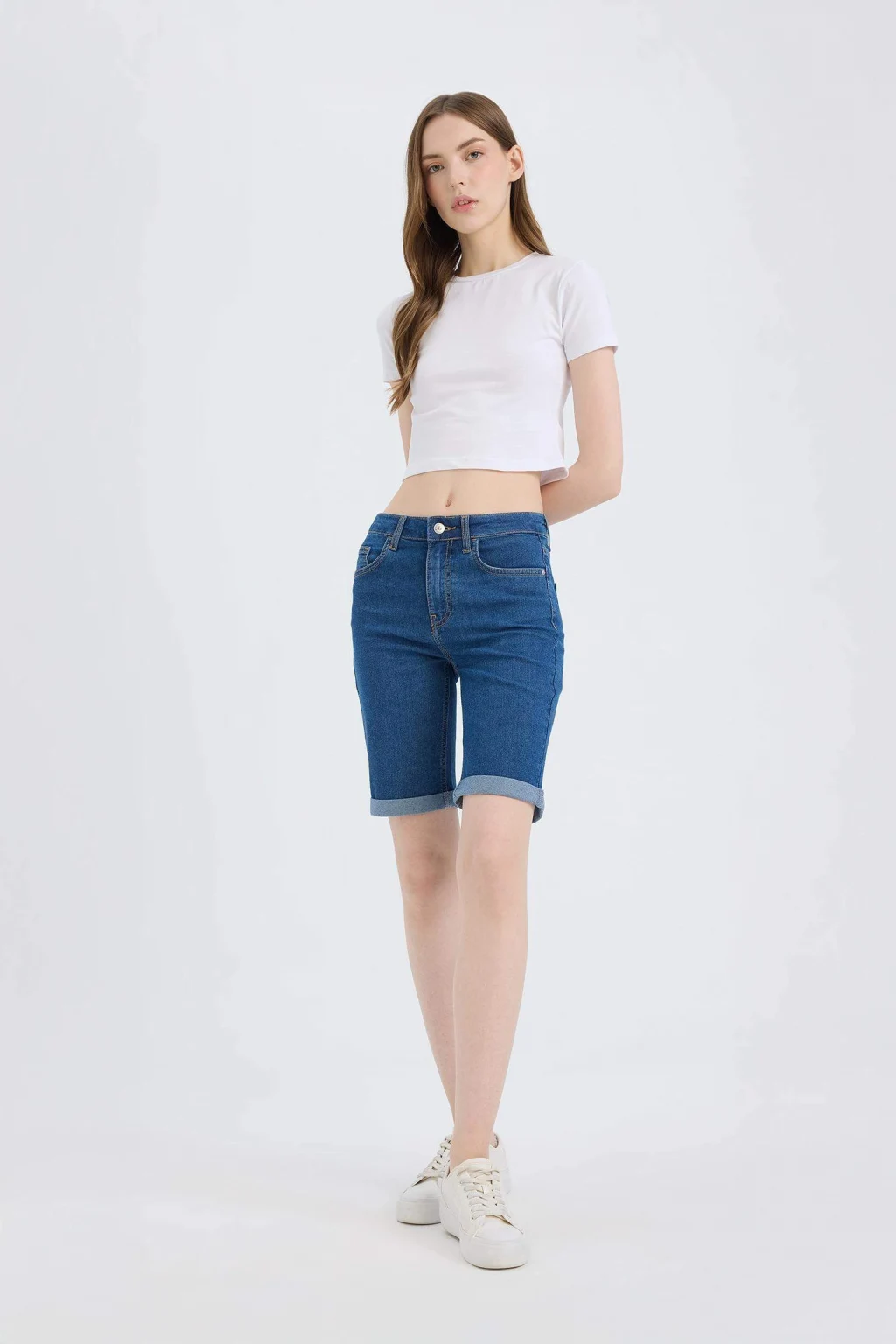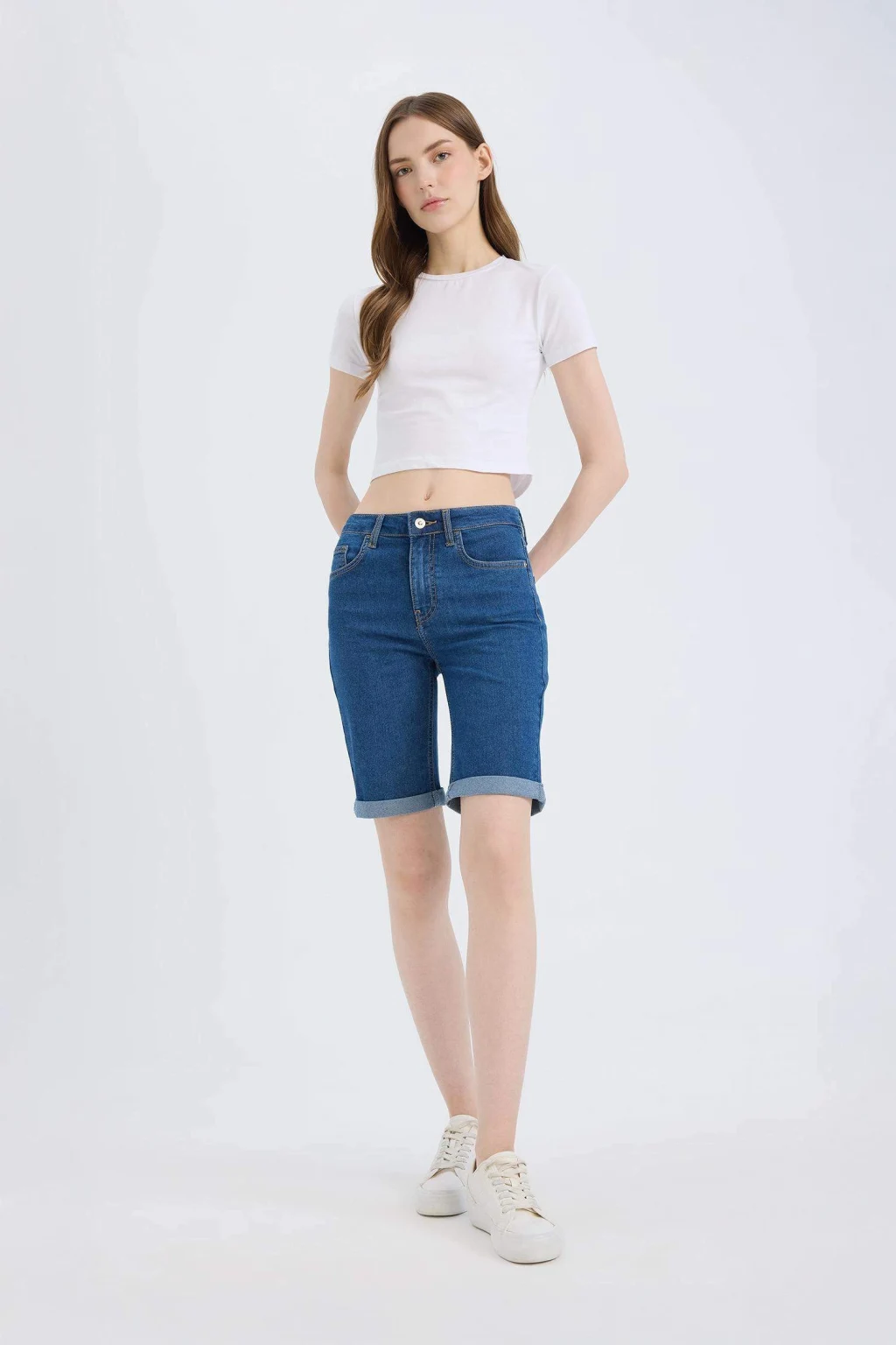 Normal Bel Katlamalı Paça Jean Bermuda, şıklığı ve rahatlığı bir araya getiren bir seçenektir. Bu bermuda, günlük kullanım için idealdir ve herhangi bir mevsimde giyilebilir. Yüksek kaliteli kumaşı ve mükemmel dikişleriyle uzun ömürlü bir üründür. Normal beli ve katlamalı paçalarıyla tarzınızı tamamlar. Herhangi bir kombinle mükemmel uyum sağlar ve gardırobunuzun vazgeçilmez parçalarından biri olur.