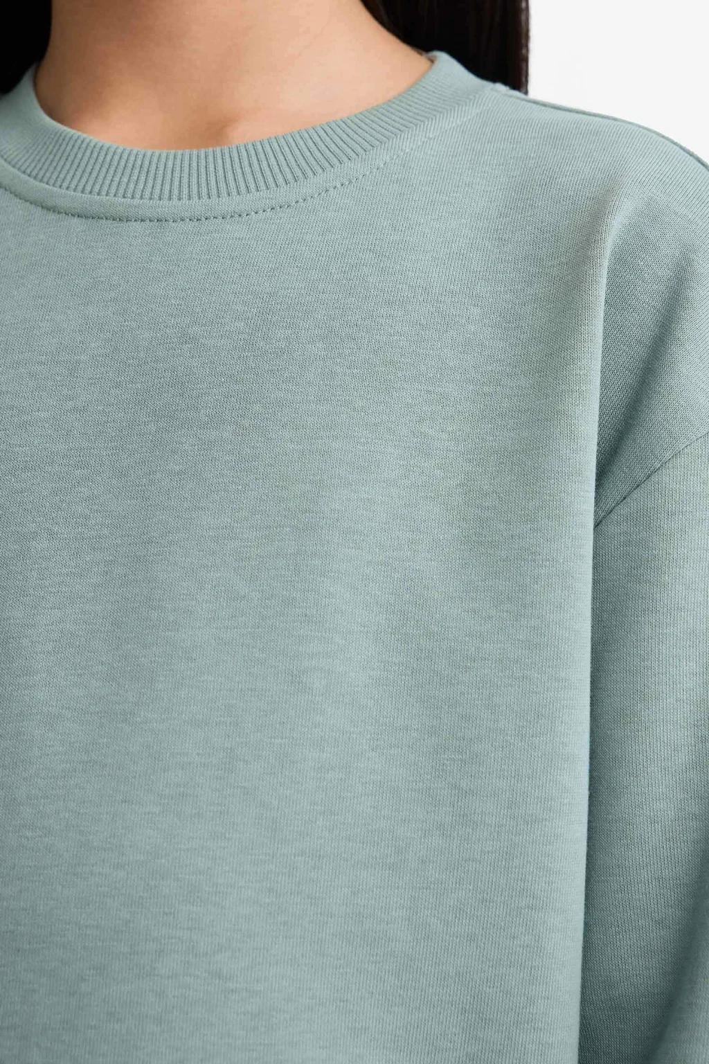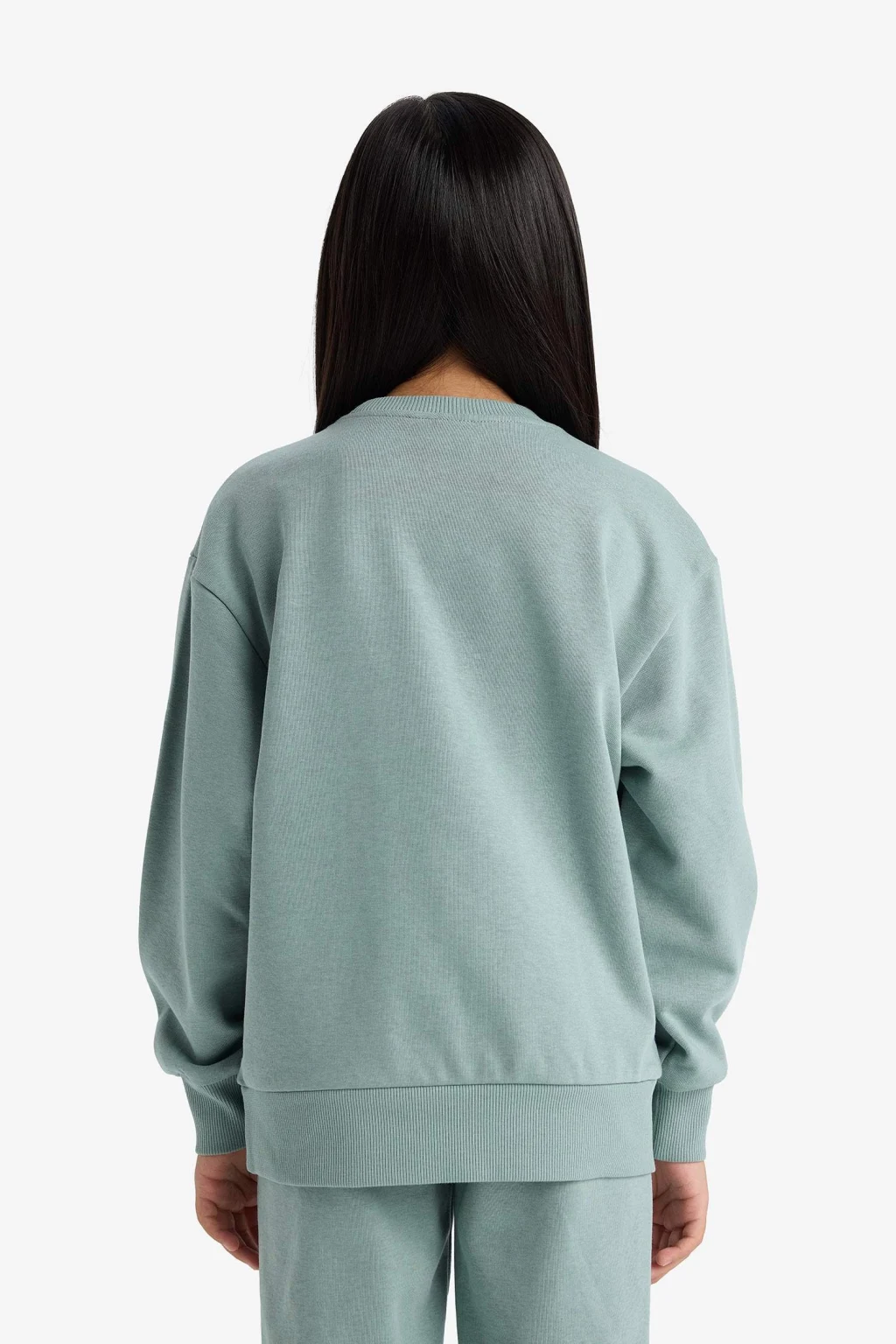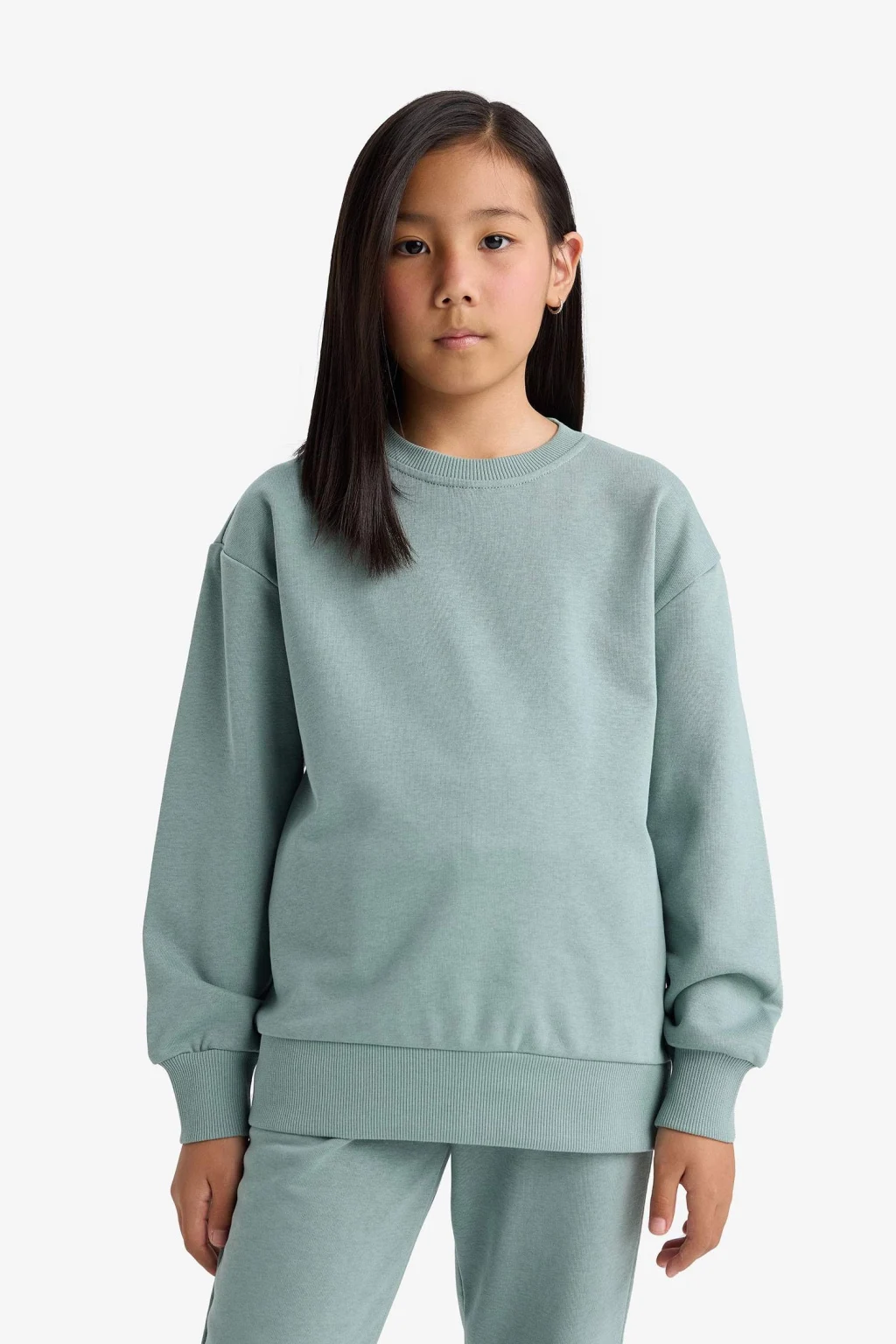 Defacto A2797A8GN1129 Yeşil Kız Çocuk Relax Fit Bisiklet Yaka Basic Düz Okul Sweatshirt