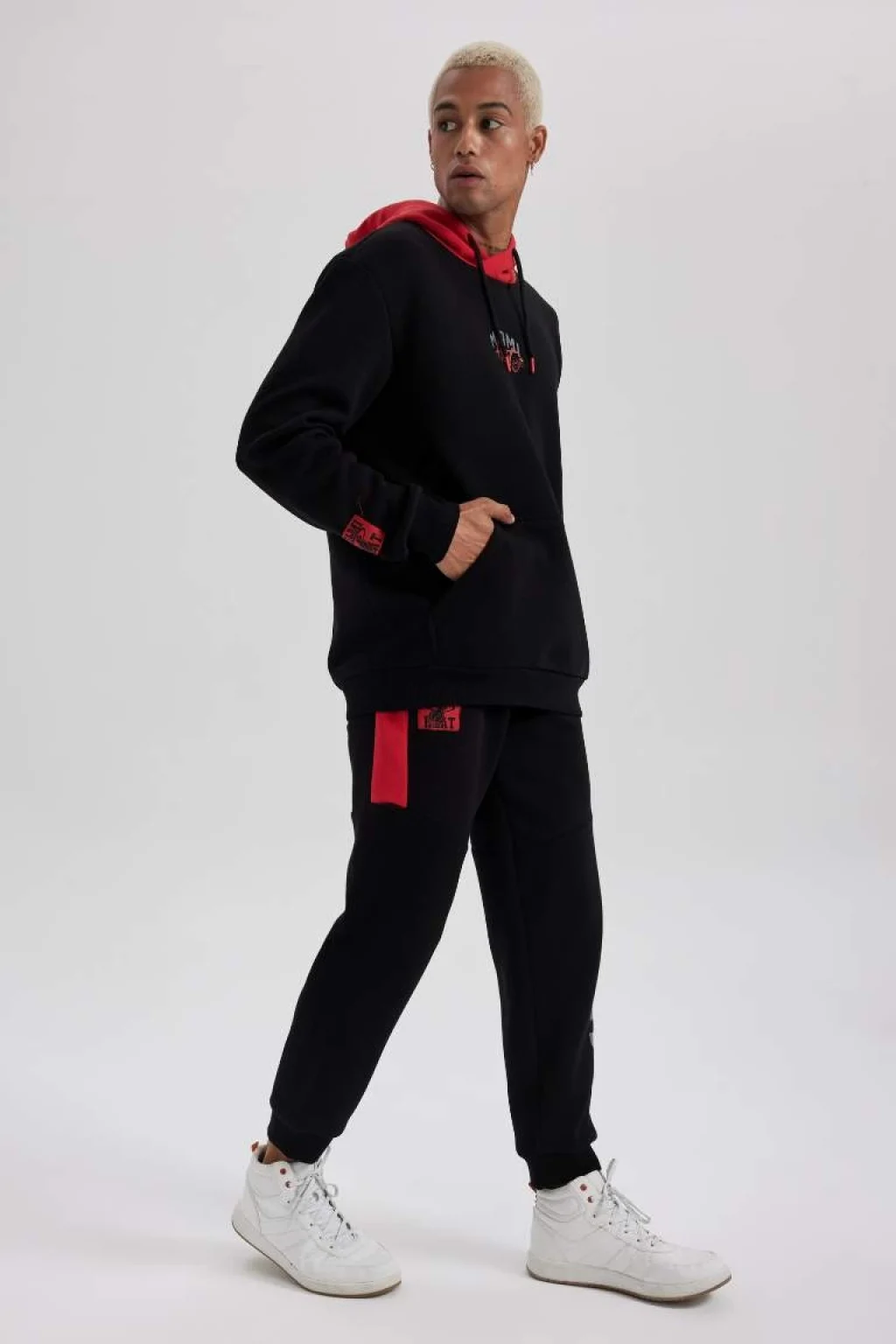 D3251 DeFactoFit Kalın Jogger NBA Chicago Bulls Standart Fit Cepli Beli Bağcıklı Lastikli Paça Eşofman Altı