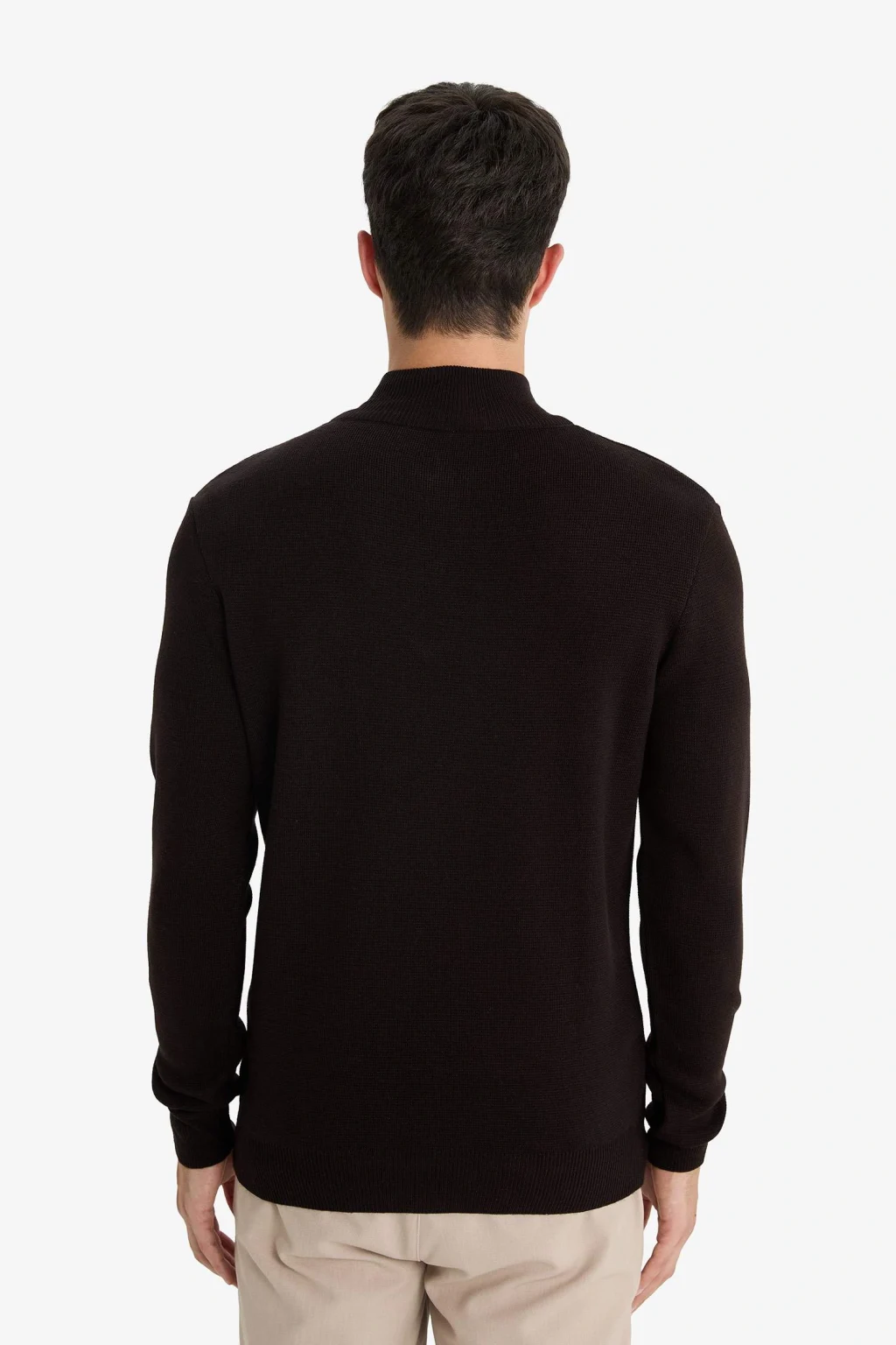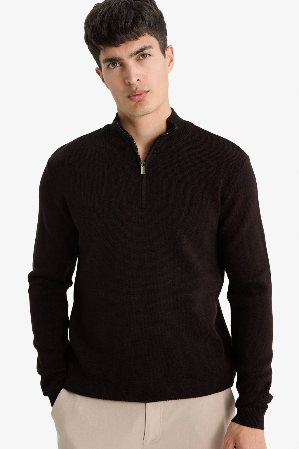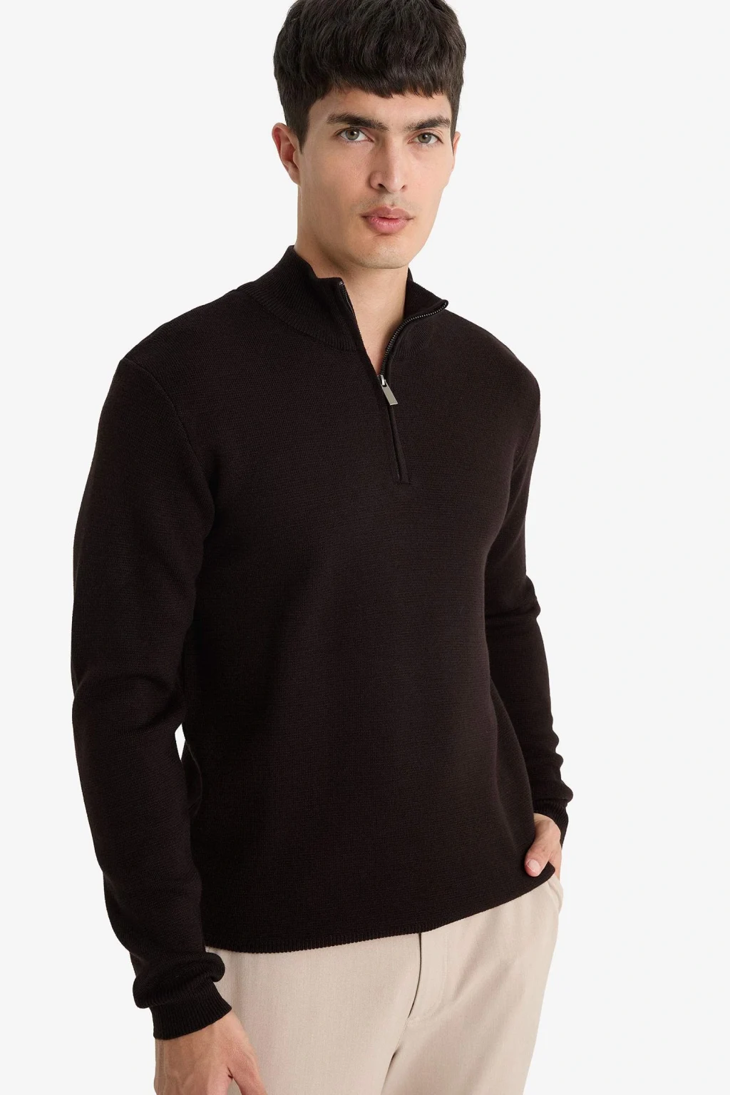 Standart fit dik yaka triko kazak, yarım fermuar detayı ve düz tasarımıyla sade ve modern bir görünüm sunar. Normal kesimiyle rahat bir kullanım sağlarken, her stile kolayca uyum sağlar.