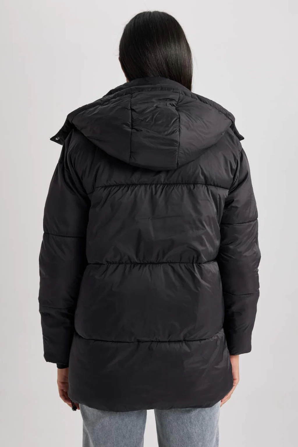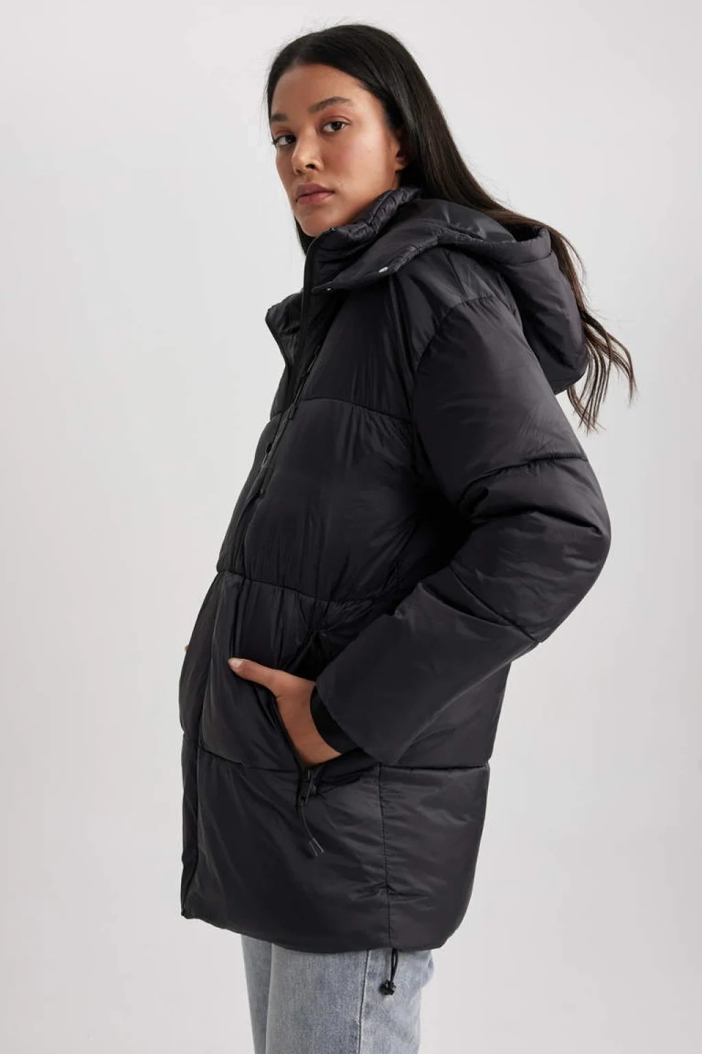 Kaliteli şişme kumaşı, fermuar kapamalı, fonksiyonel cepli ve sentetik astarlı sıcak tutan özelliği ile çok şık, serin havaların spor kombininin en önemli parçası ile fit bir görünüm sağlayan, form duruşu ile tarzınızın tamamlayıcı parçası olacak DeFacto Kadın Su Geçirmez Relax Fit Kapüşonlu Mont.