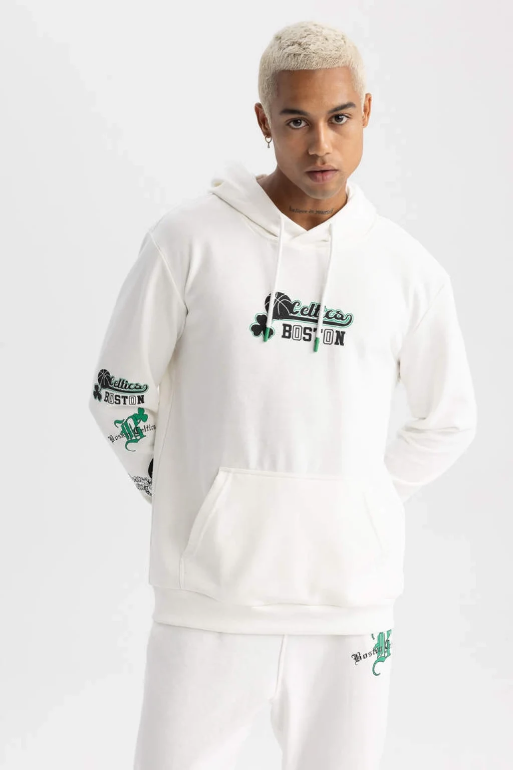 NBA Boston Celtics lisanslı, ön yüzü baskılı, uzun kollu, kapüşonlu modeli ile hem tarz hem dinamik bir görünüm sağlayabileceğiniz rahat kalıbı ile rahatlığınızı koruyabileceğiniz, her tarz şort, jogger eşofman altı, jean pantolonlarınızla kombinleyebileceğiniz DeFacto Erkek DeFactoFit NBA Boston Celtics Standart Fit Kapüşonlu Sweatshirt