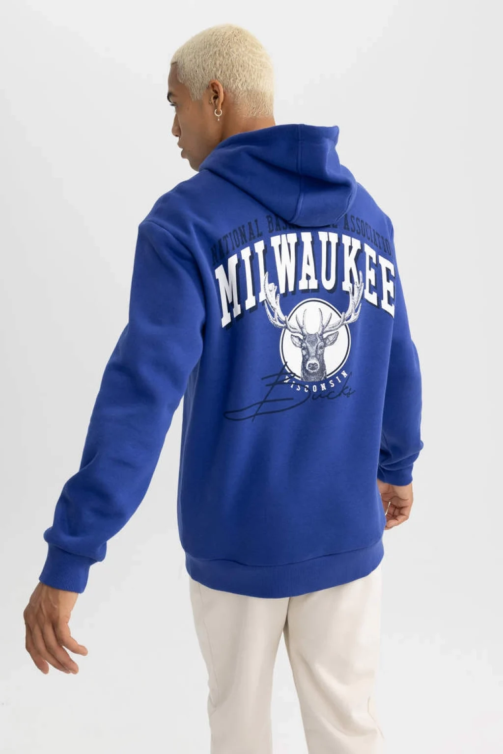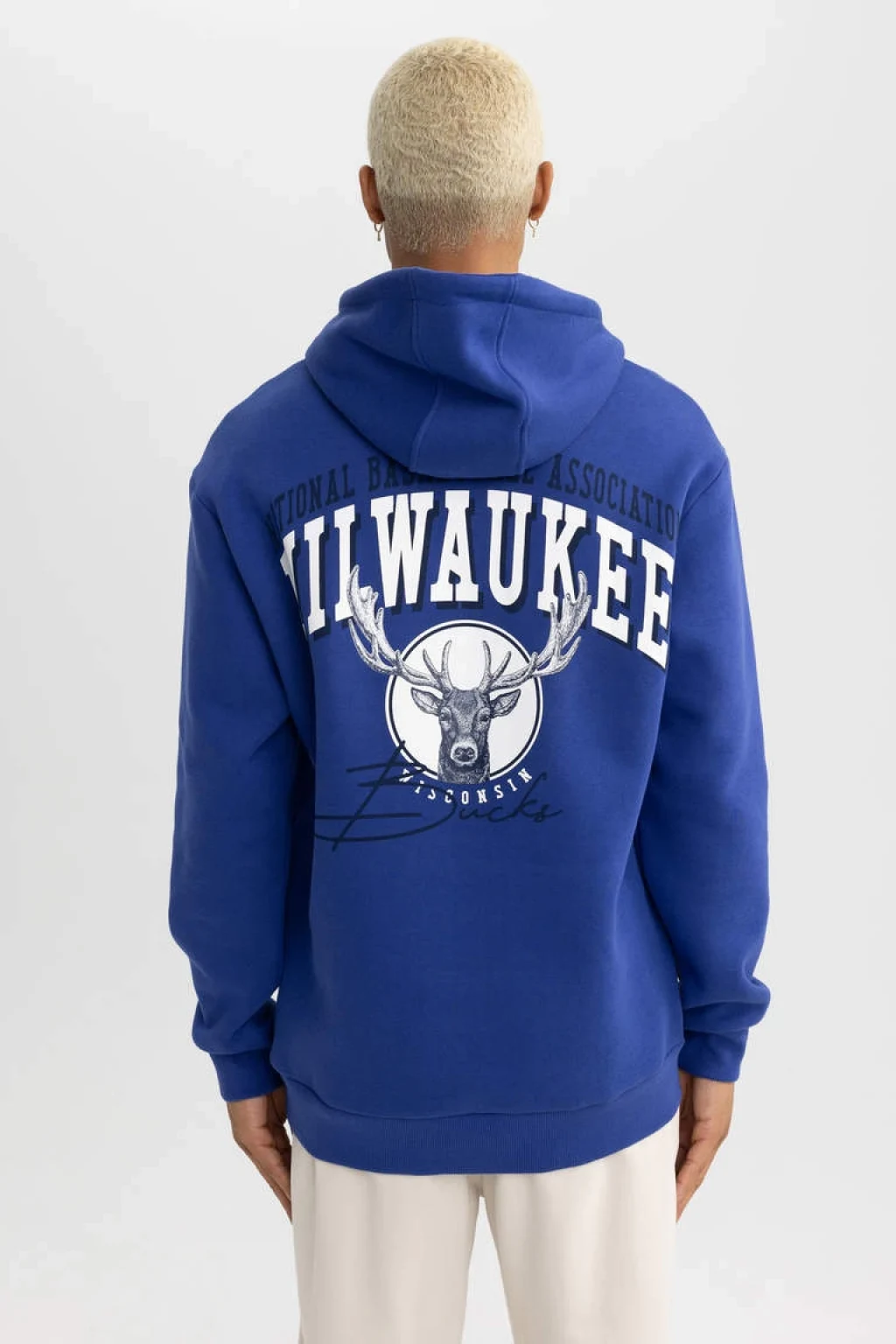 NBA lisanslı ön yüzü ve sırtı Milwaukee Bucks baskılı, uzun kollu, kapüşonlu modeli ile hem tarz hem dinamik bir görünüm sağlayabileceğiniz; geniş kalıbı ile rahatlığınızı koruyabileceğiniz; her tarz şort, jogger eşofman altı, jean pantolonlarınızla kombinleyebileceğiniz DeFactoFit NBA Milwaukee Bucks Standart Fit Kapüşonlu Sweatshirt.
