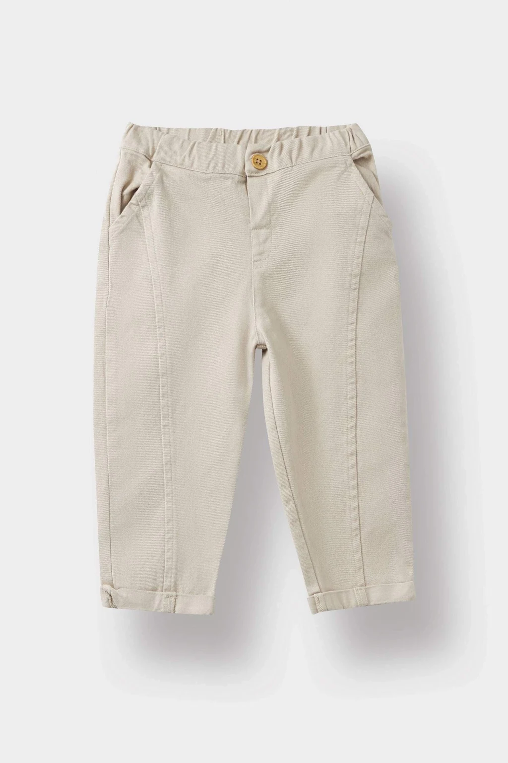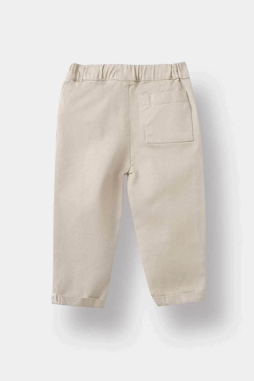 Rahat beli lastikli tasarımı ve dayanıklı gabardin kumaşıyla bu düz paça pantolon, erkek bebekler için hem konforlu hem şık bir seçenektir. Günlük kullanıma uygun yapısıyla hareket özgürlüğü sunar.