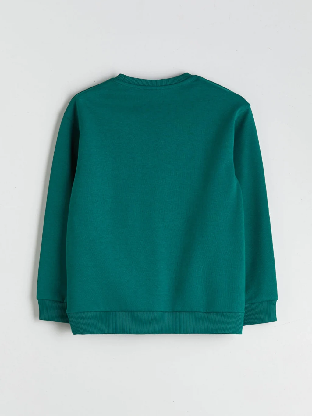 Bol kalıplı erkek çocuk sweatshirt, interlok kumaştan üretilmiştir. Bisiklet yakalı, uzun kollu ve önü yazı baskılı olan ürünün cepleri bulunur.