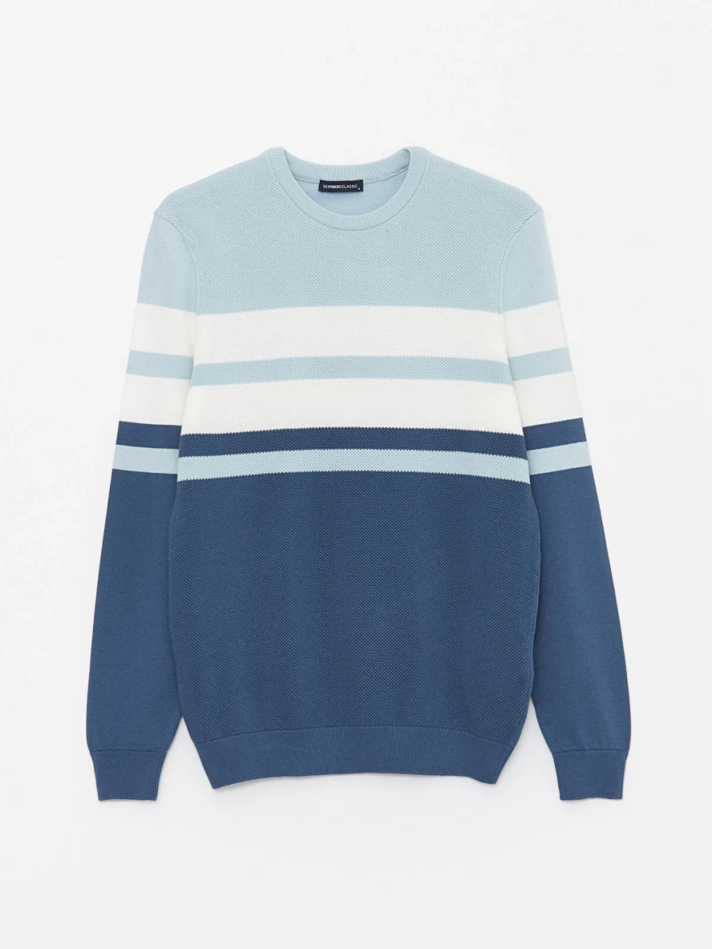 Triko kumaştan üretilen bu uzun kollu kazak, çizgili deseniyle modern bir görünüm sunuyor. Hem rahat hem de şık bir seçenek olan bu kazak, soğuk günlerde sizi sıcak tutacak.