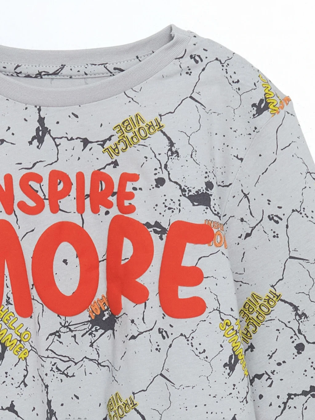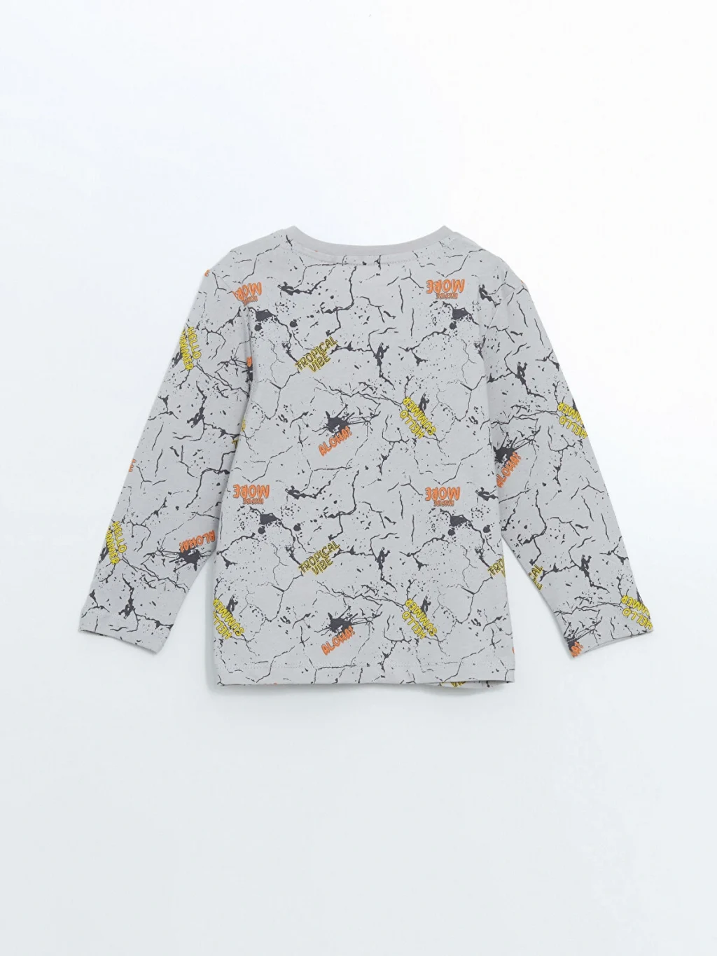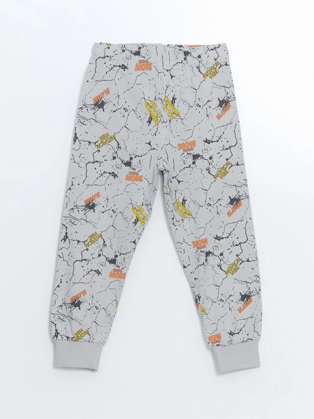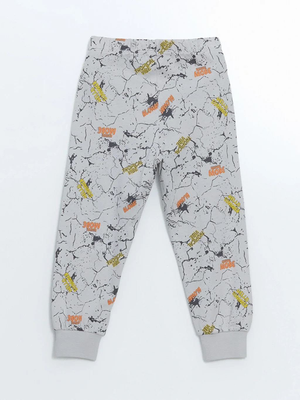 Erkek çocuk pijama takımı, %100 pamuk penye kumaştan üretilmiştir. Bisiklet yaka, uzun kollu üst ve paçası ribanalı alt parçaları desenlidir.