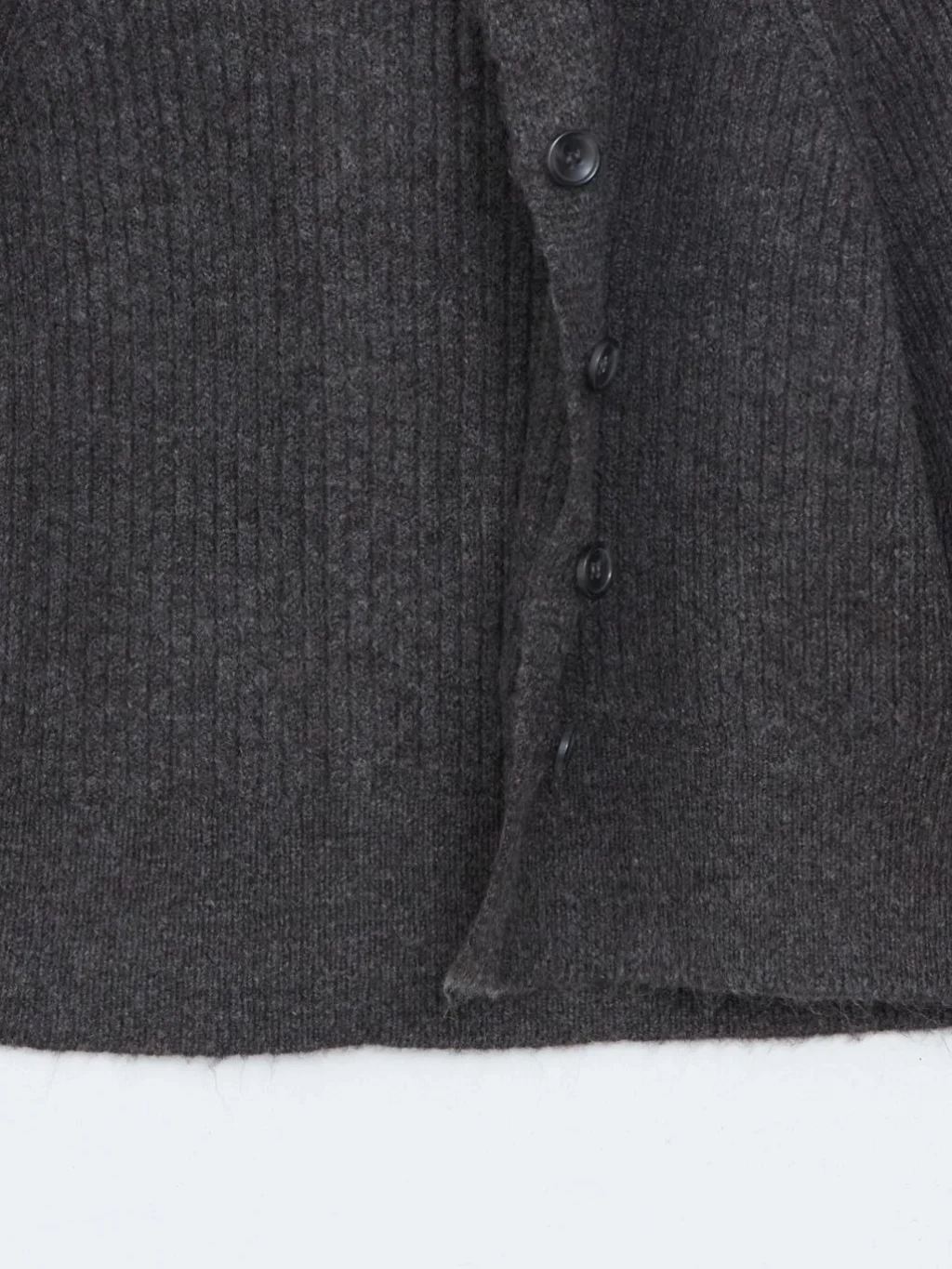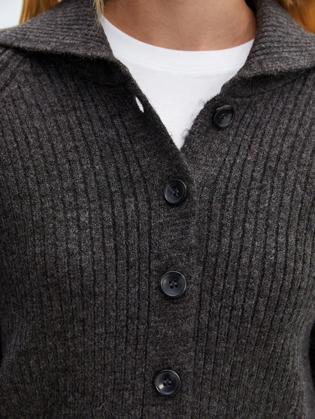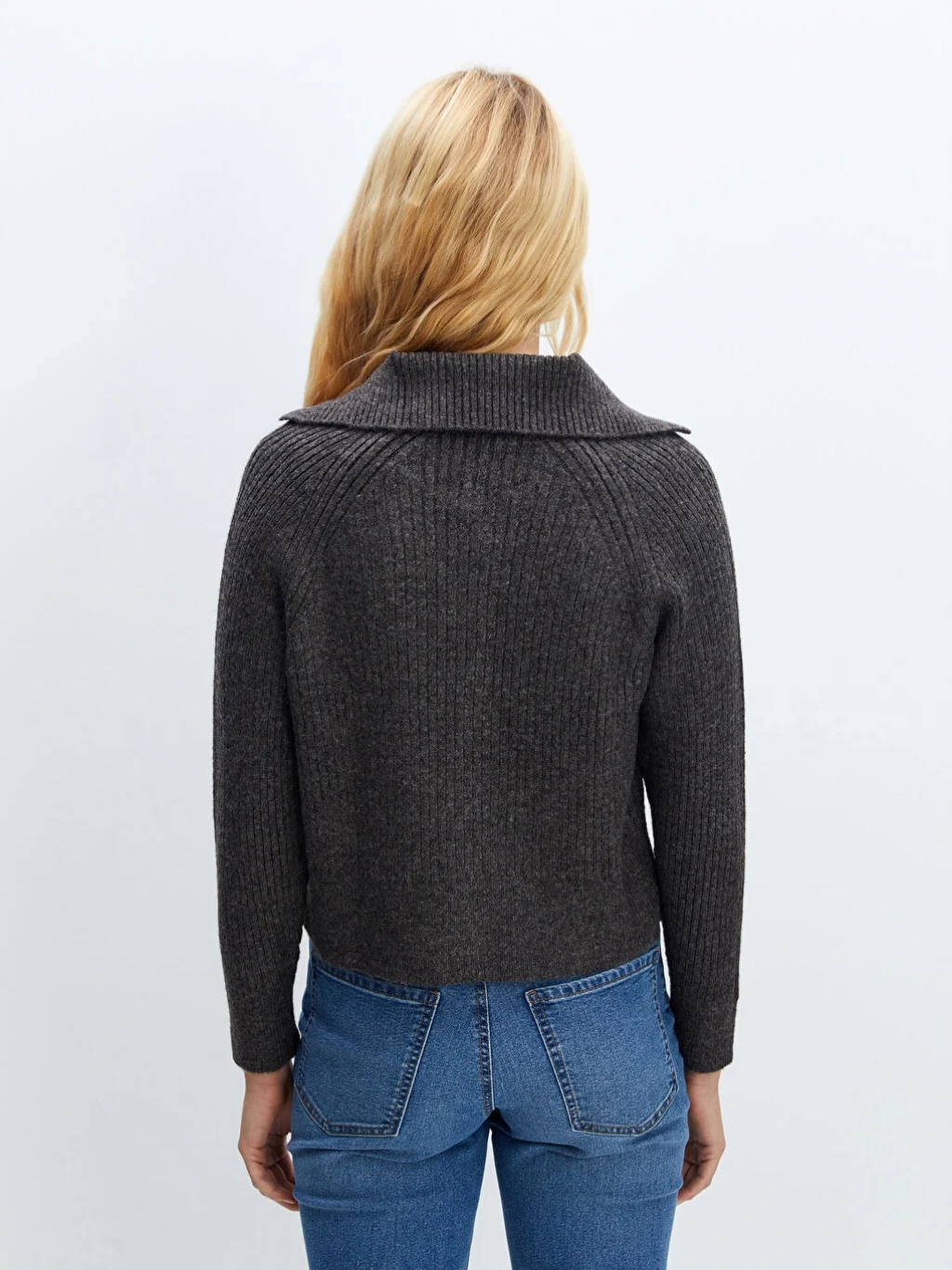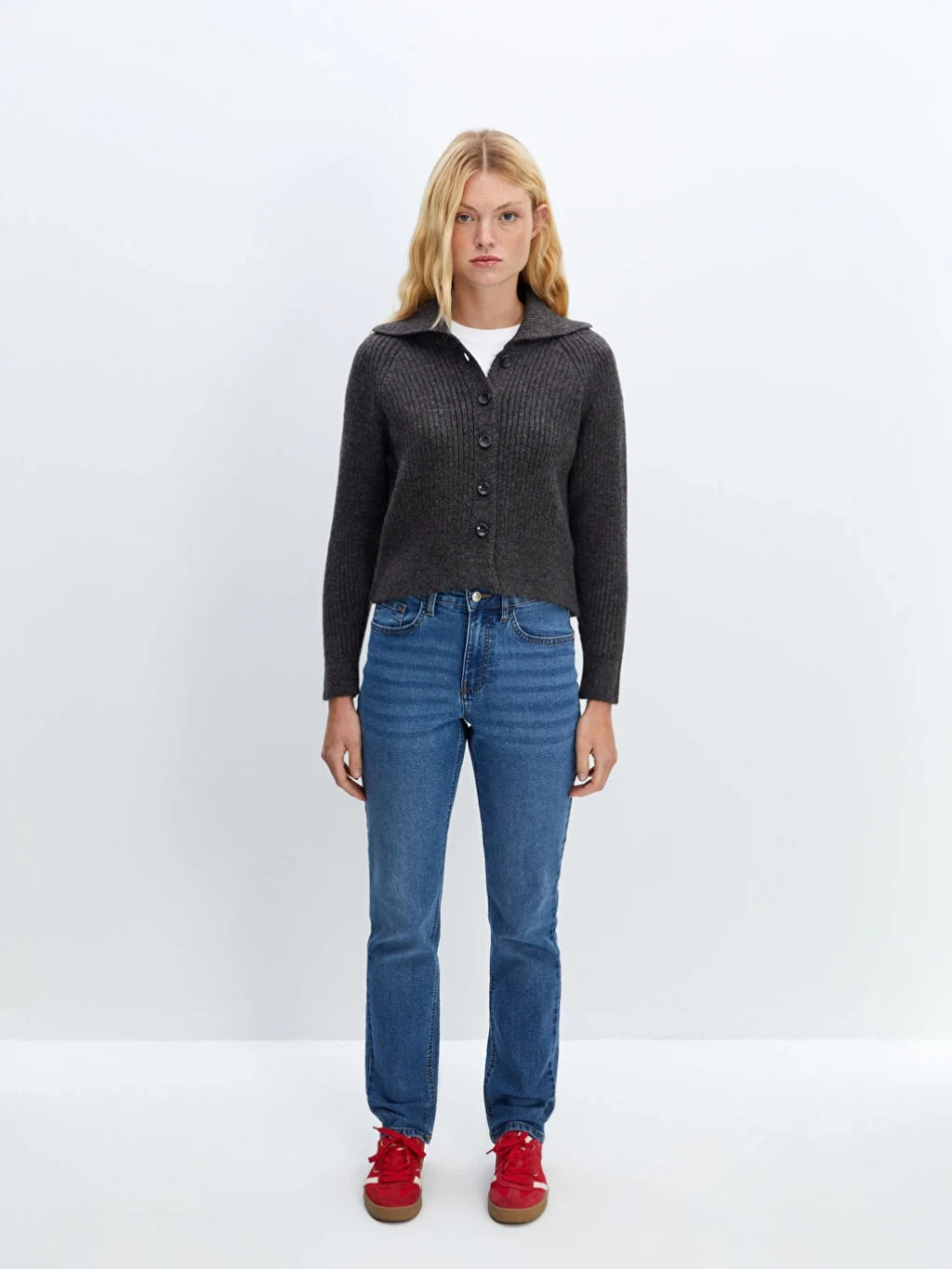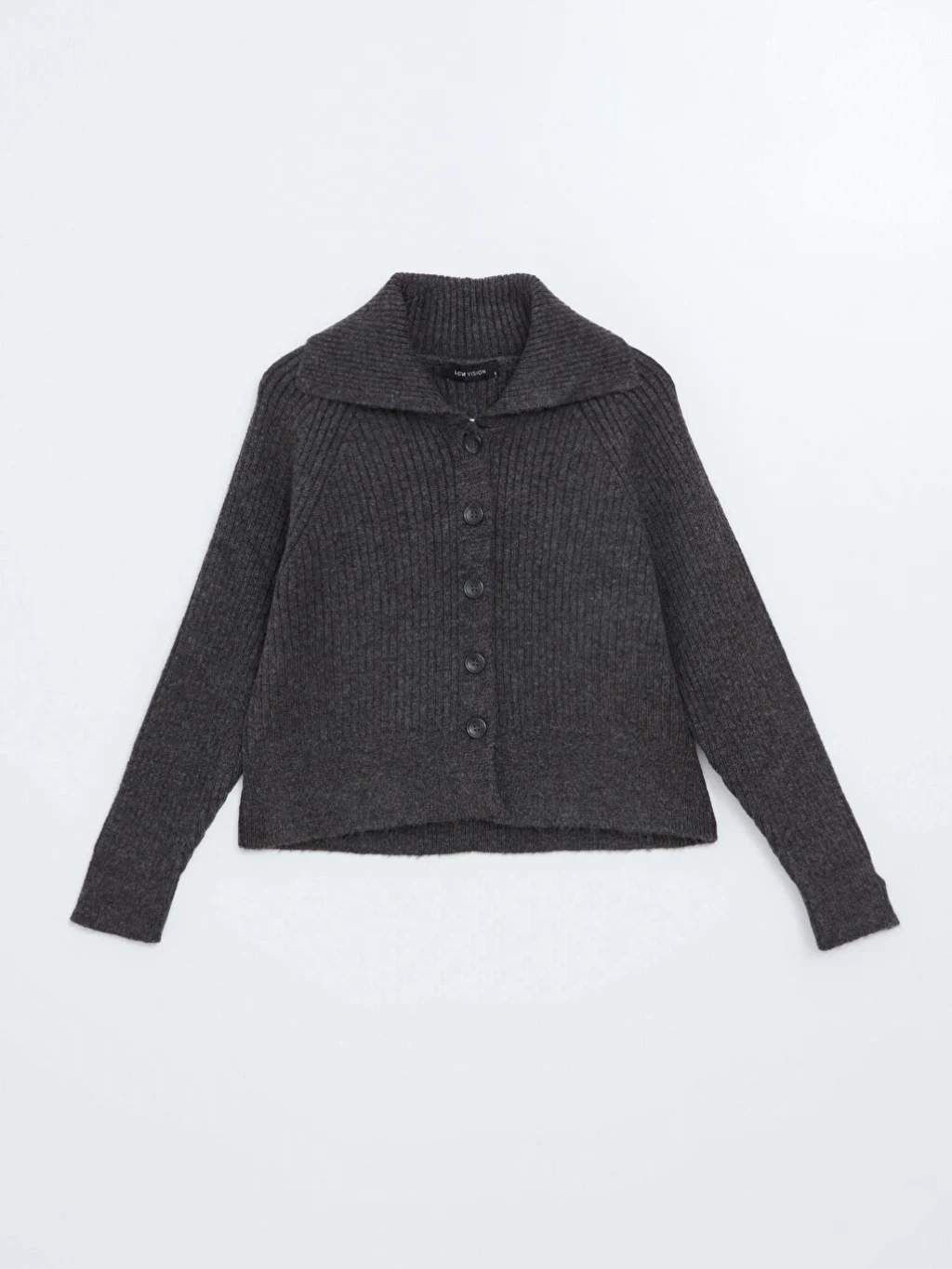 Ceket yaka dokulu kadın triko hırka, önden düğme kapamalı tasarımı ile şık ve pratik bir kullanım sunar. Bilekleri ve alt kısmı ribanalı detaylarla tamamlanmış olan bu hırka, yumuşak triko kumaşıyla hem stil hem de konforu bir arada sunar.