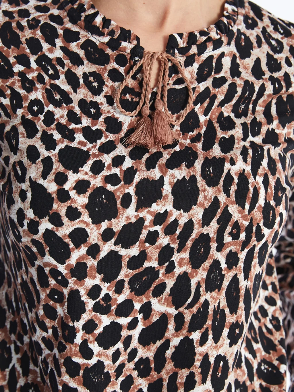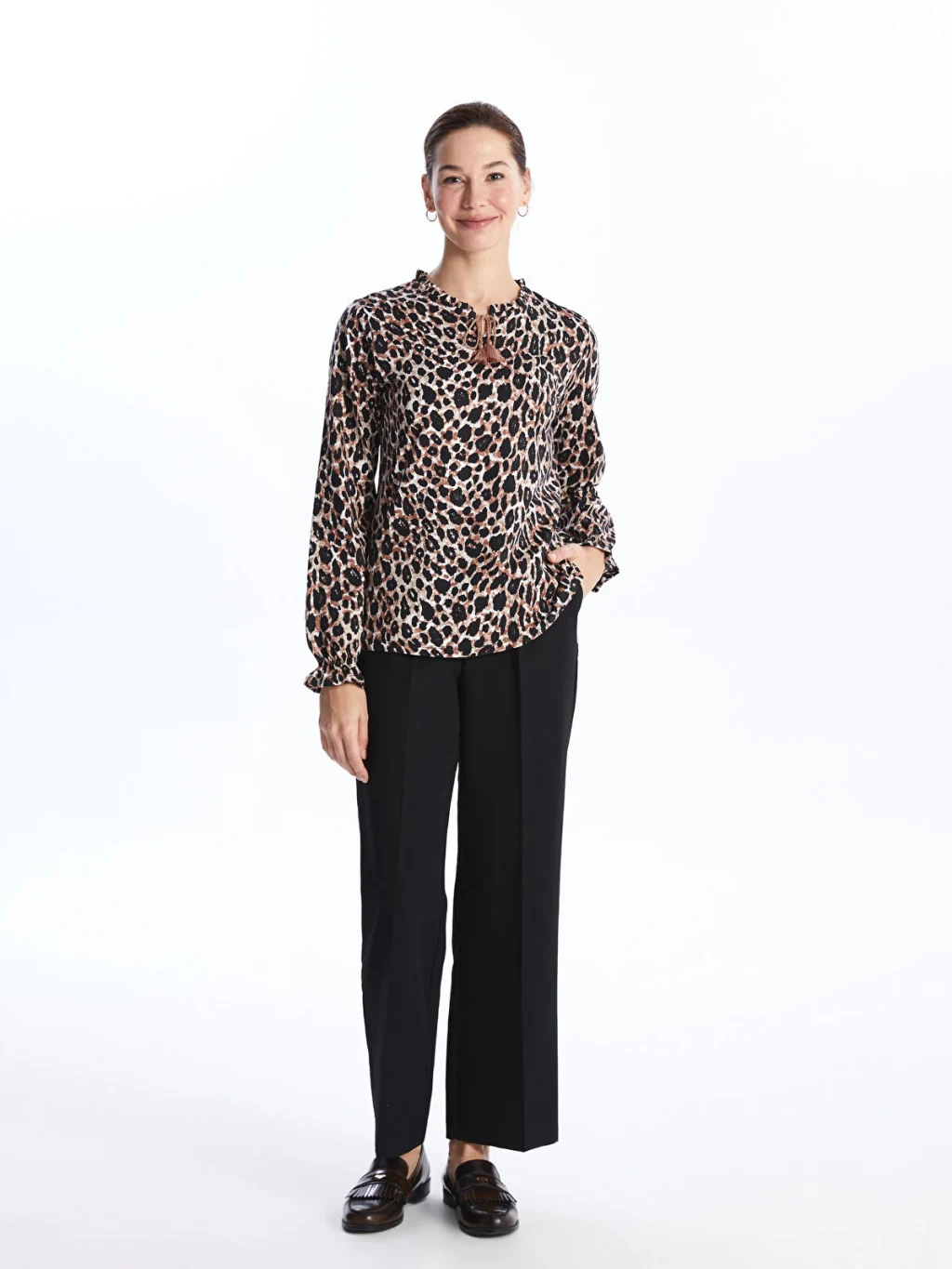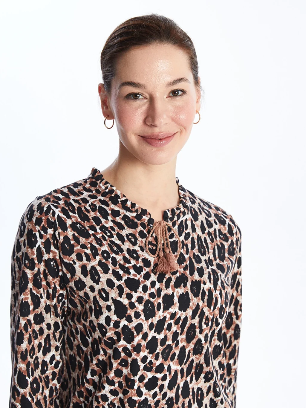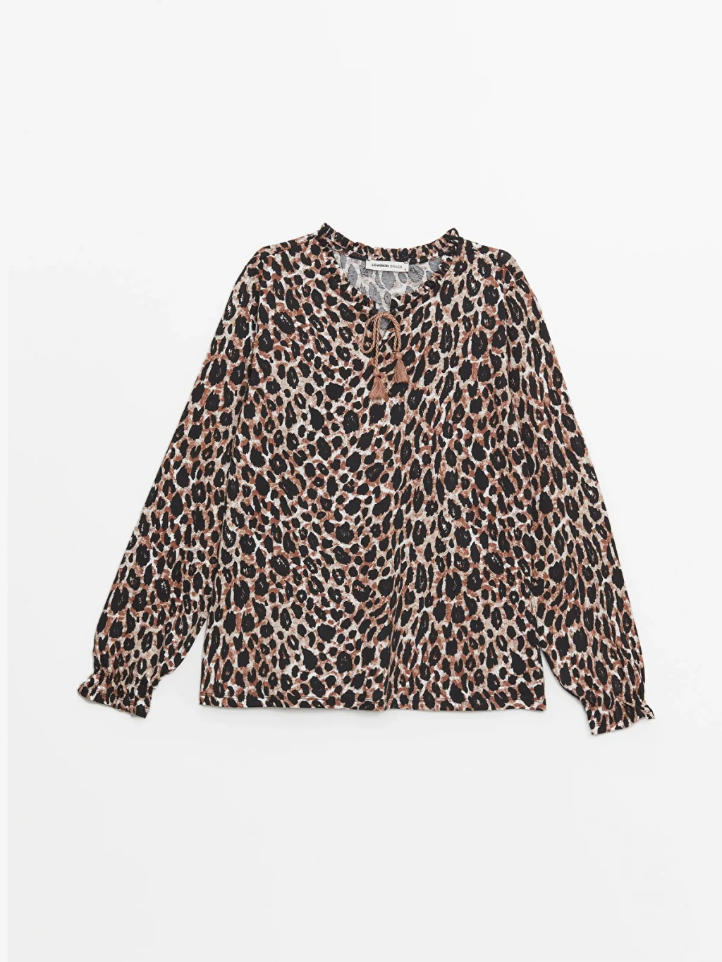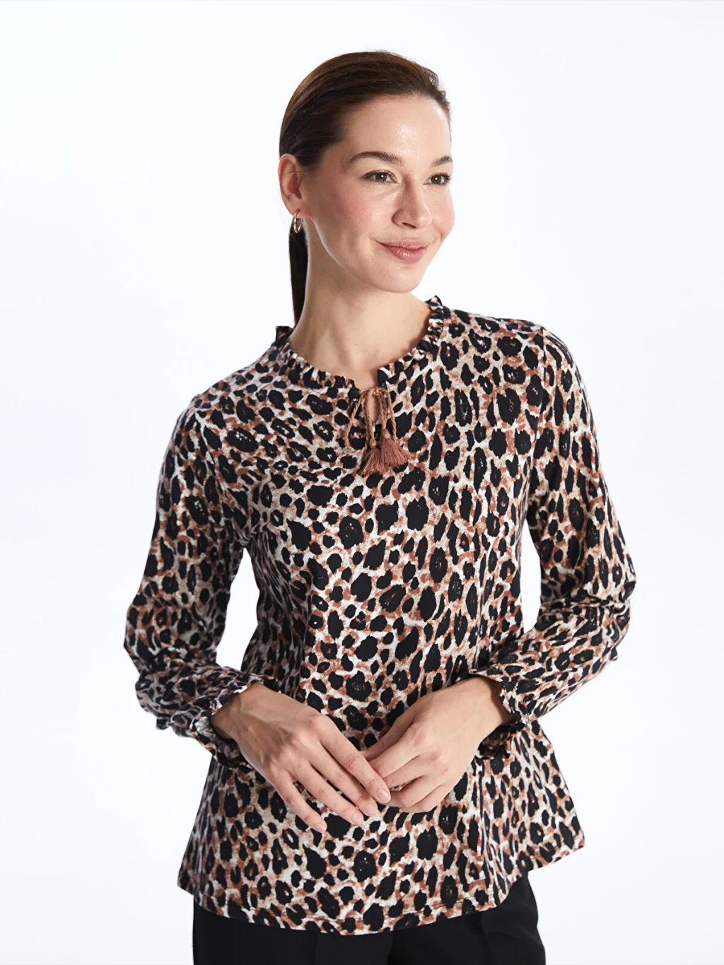 Yakası bağlama detaylı bluz, pamuklu elyaftan üretilmiştir. Yumuşak ve nefes alabilen kumaşı ile gün boyu konfor sunar. Desenli detayları ise bluza canlılık ve hareket katar.
