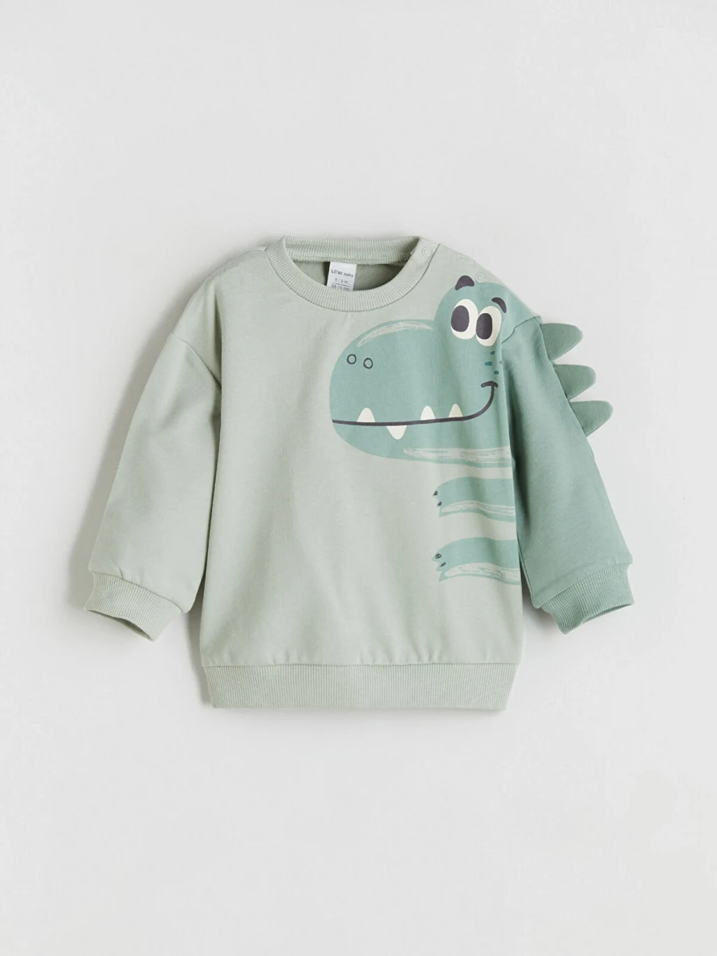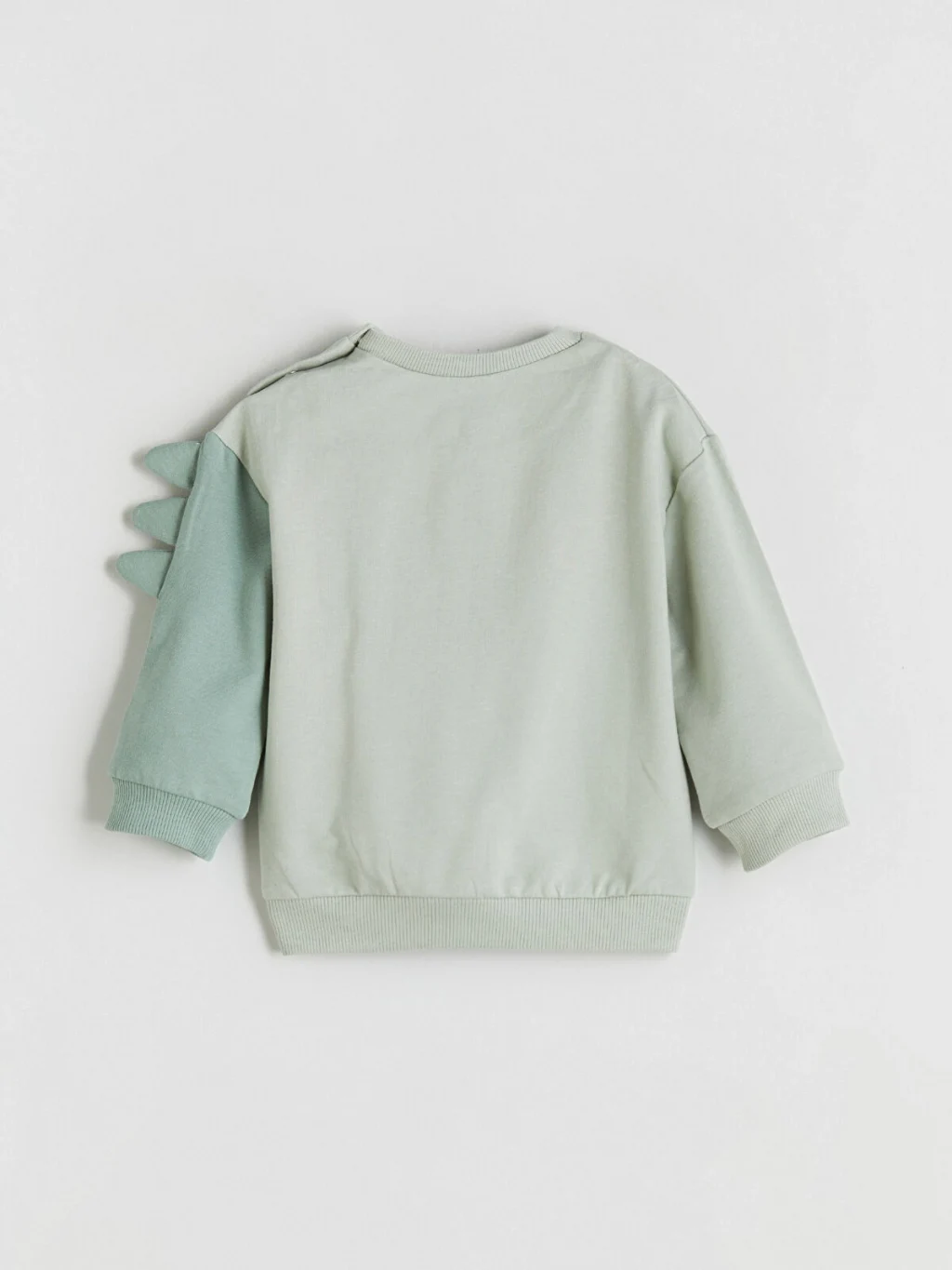 Erkek bebek eşofman takımı; bisiklet yaka, uzun kollu, önü hayvan figürlü sweatshirt ve eşofman altından oluşur. Kolunda üç boyutlu detaylar bulunur.