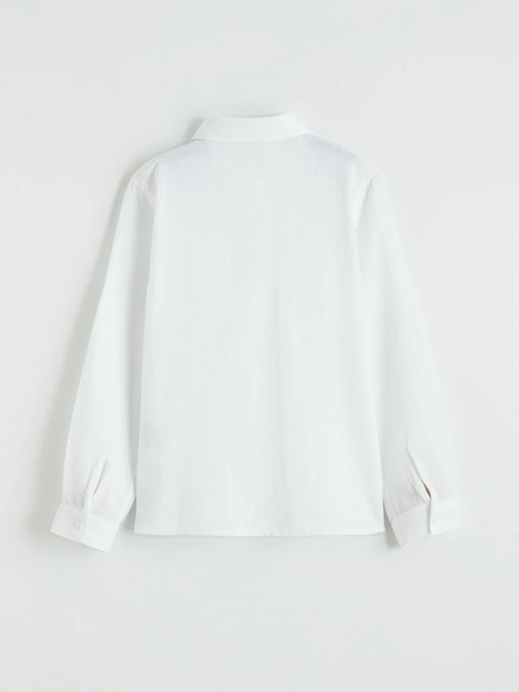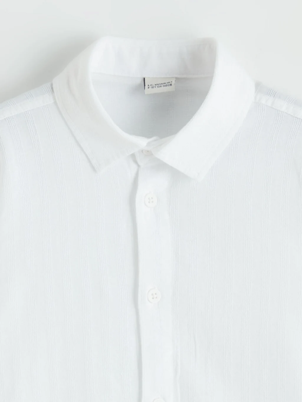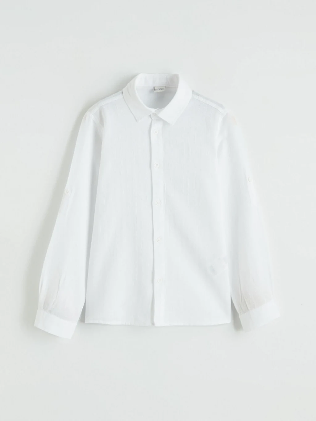 Erkek çocuk gömlek, uzun kollu ve önden düğme kapamalıdır. Pamuklu armürlü kumaştan üretilmiştir. Kolları katlanabilir apolet detaylıdır.