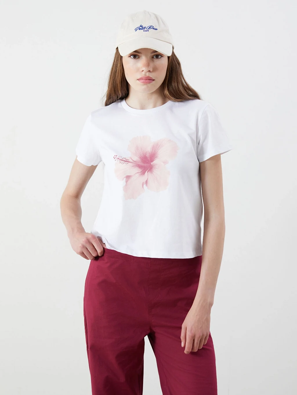 Bisiklet yaka kısa kollu kadın tişört, pamuklu süprem kumaştan üretilmiştir. Ön kısmında baskı detayı bulunur.