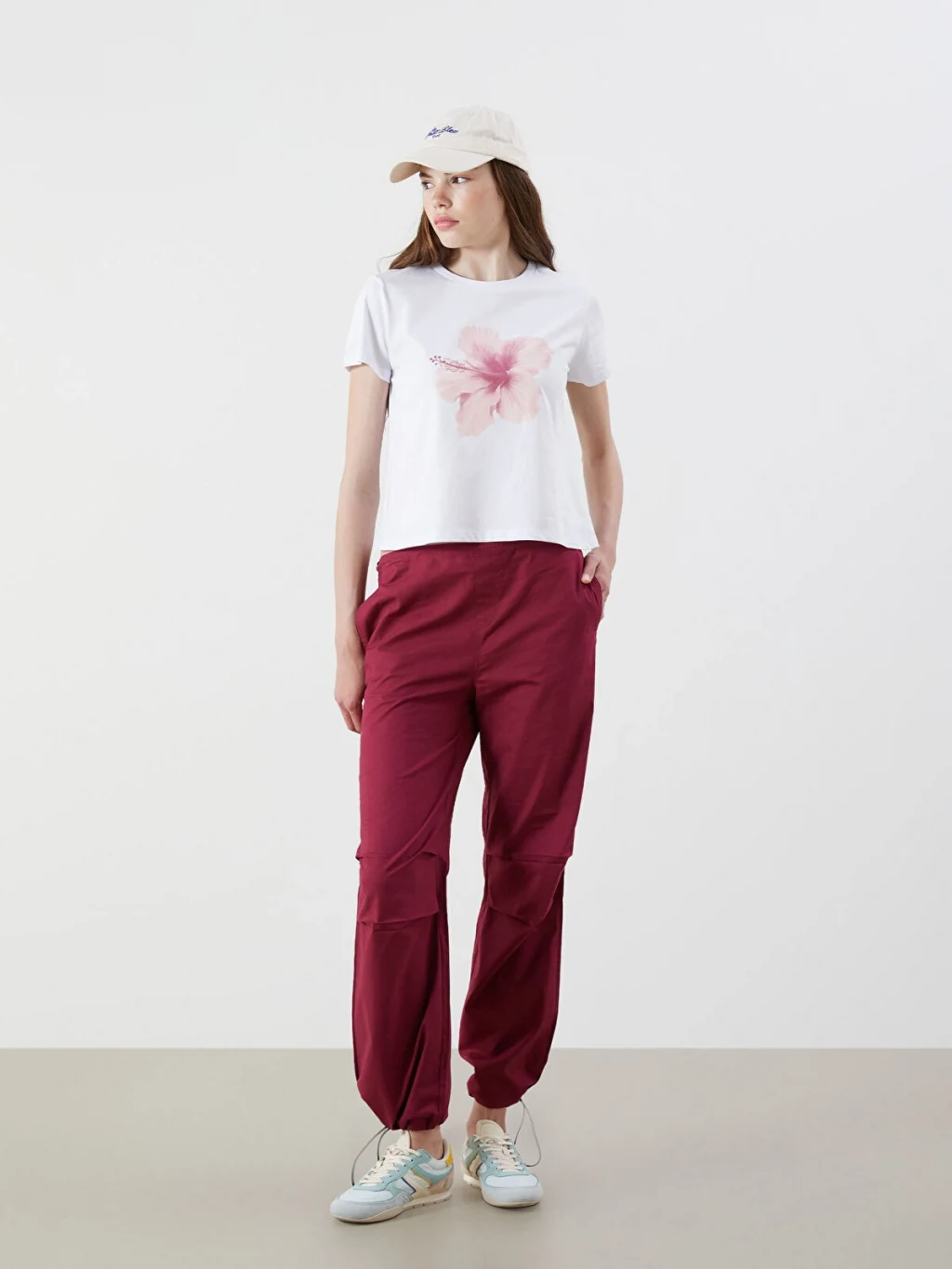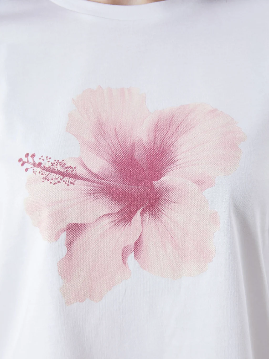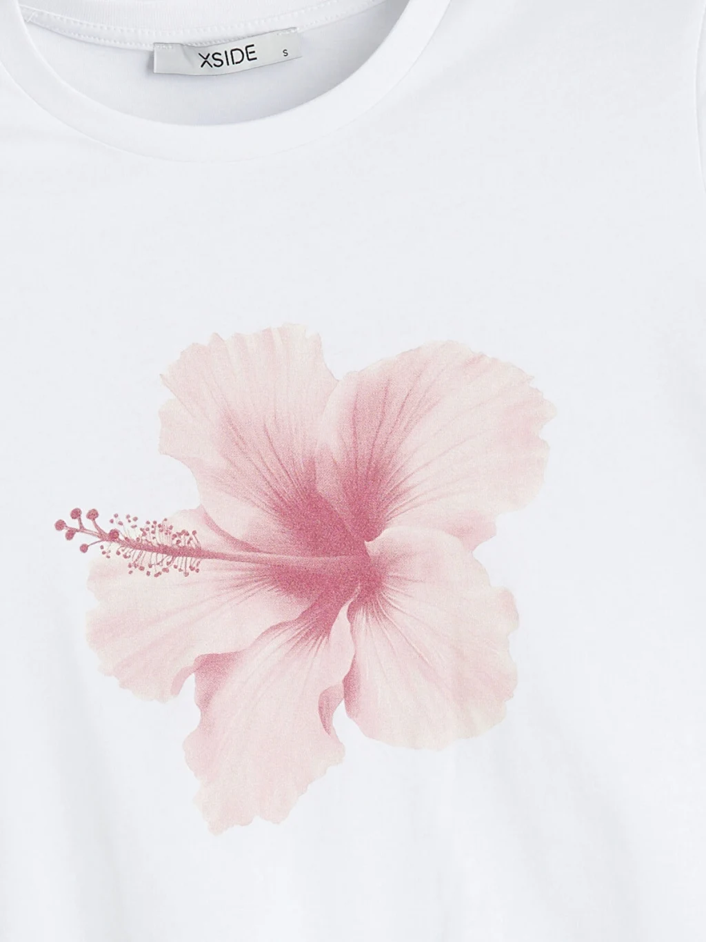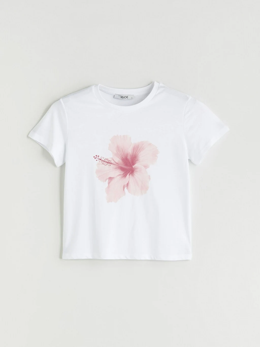 XSIDE Beyaz Bisiklet Yaka Çiçek Baskılı Kadın Tişört