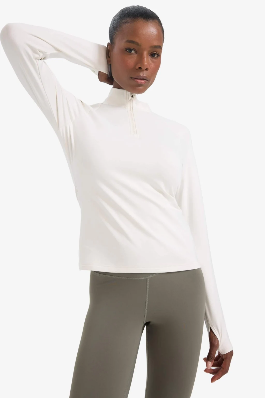 DeFactoFit standart fit sporcu tişört, dik yaka ve fermuarlı tasarımıyla fonksiyonel ve şık bir parça sunar. Uzun kollu yapısı ile antrenman ve günlük kullanım için uygundur.