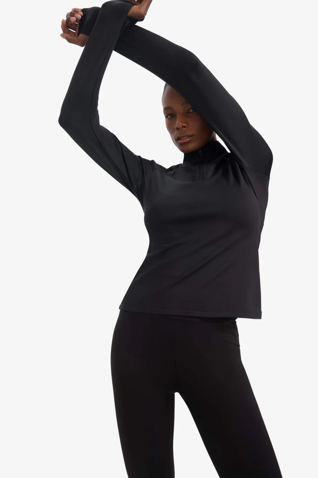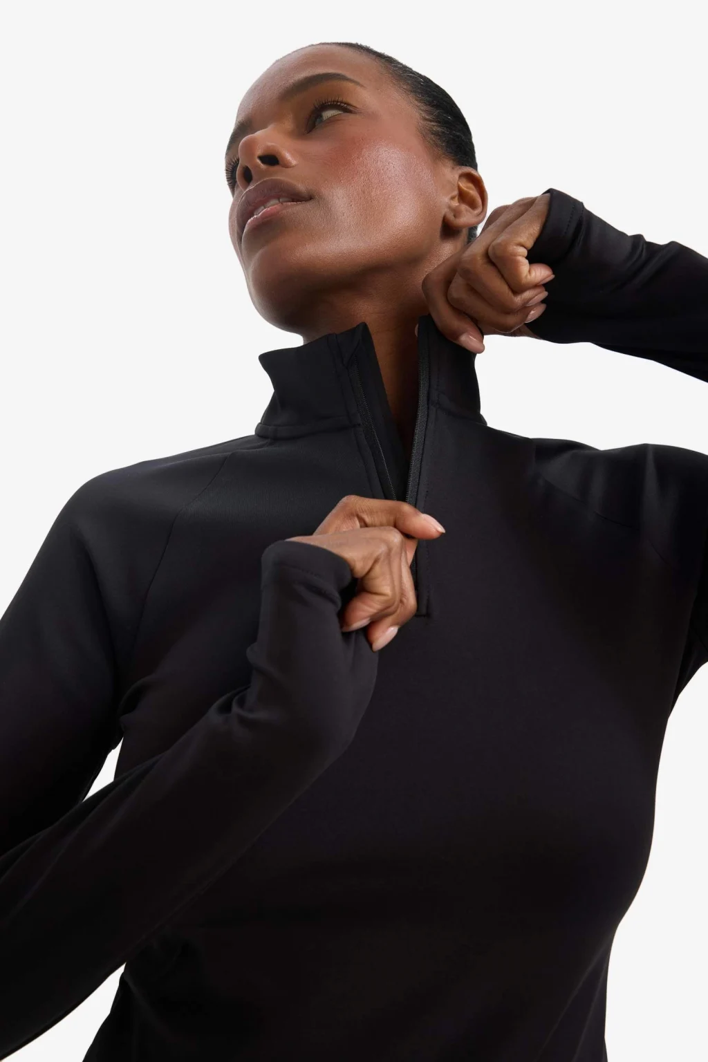 Defacto B0811 Siyah DeFactoFit Standart Fit Dik Yaka Fermuarlı İçi Yumuşak Tüylü Sporcu Uzun Kollu Tişört