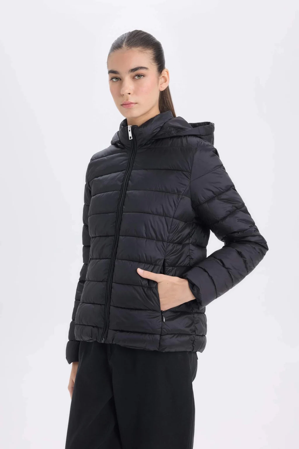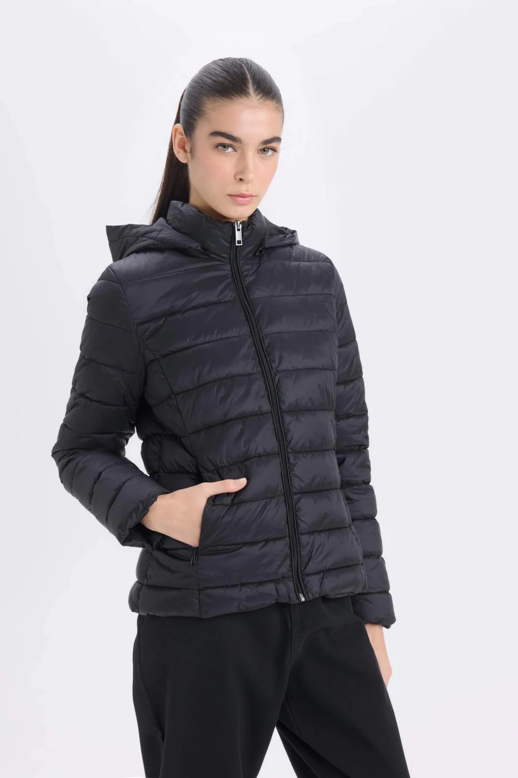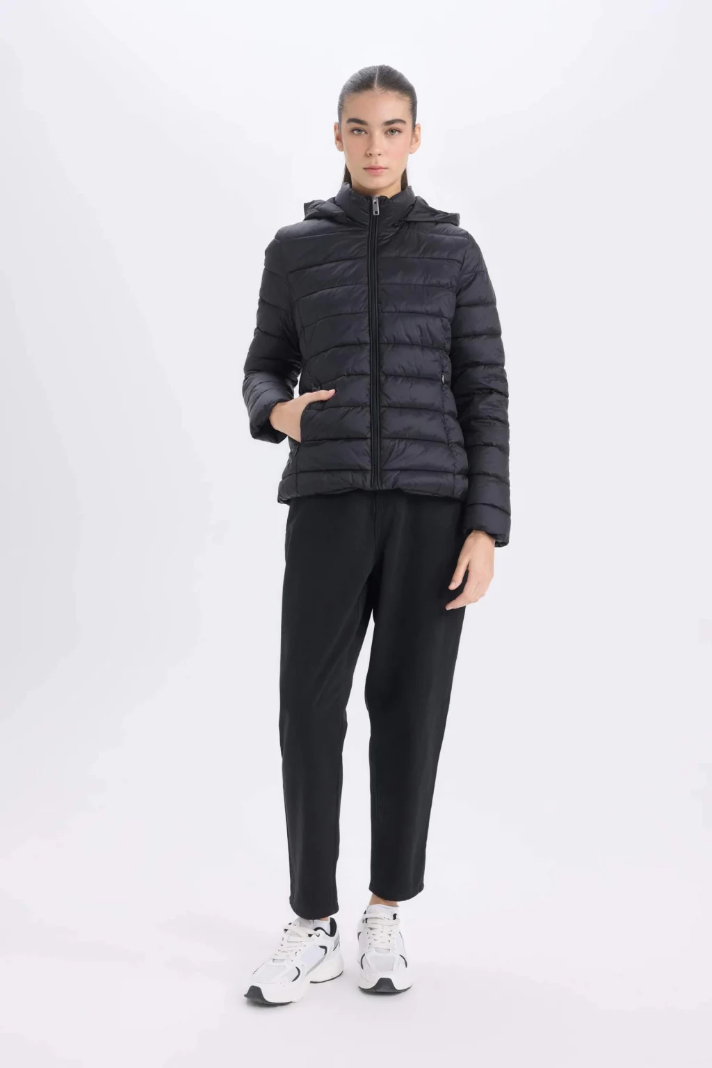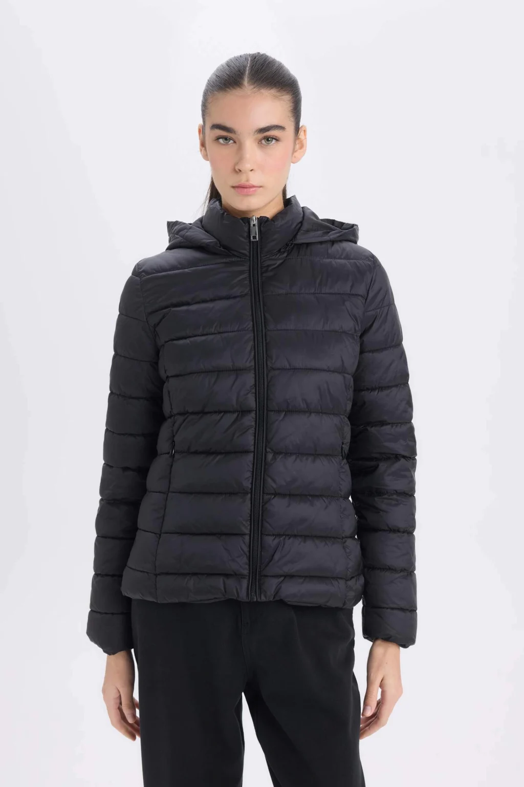 Yetişkinler için siyah renkte kadın mont. Su geçirmez özellikli, ilkbahar/yaz mevsim koşullarına uygun. Regular fit kesimli ve kapüşonlu. Temel dış giyim ürün grubunda yer almaktadır.