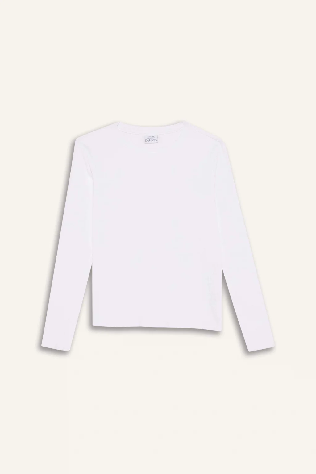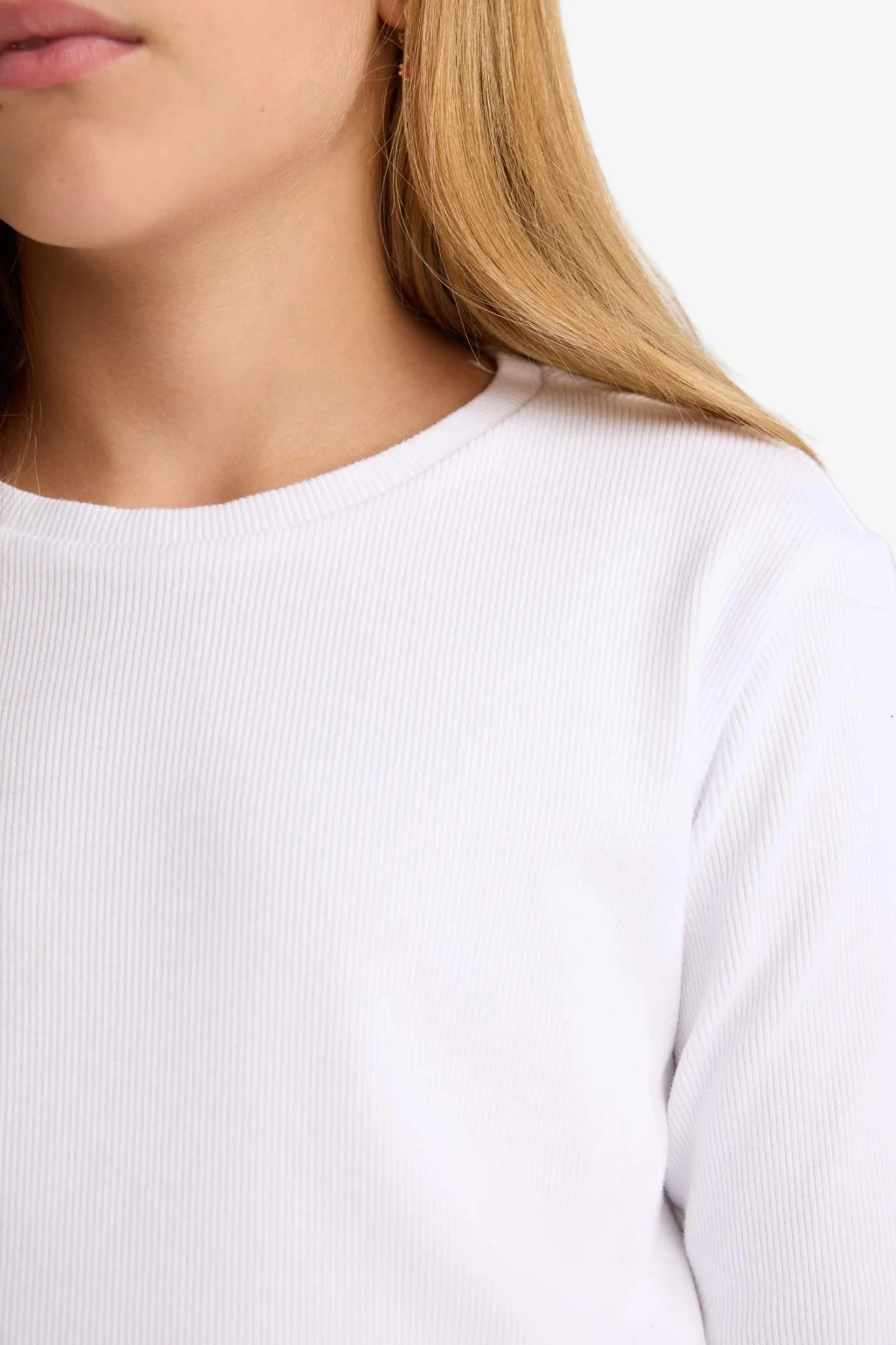 Kız Çocuk Bisiklet Yaka Basic Düz Fitilli Kaşkorse Uzun Kollu Tişört, yumuşak kaşkorse kumaşı ve düz fitilli dokusuyla rahatlık sağlar. Basic tasarımıyla her kombine kolayca uyum sağlayan, günlük kullanım için ideal bir parçadır.