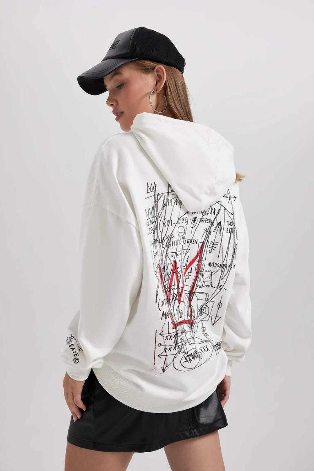 Son zamanların en trend parçası mükemmel tasarımıyla Jean Michel Basqui lisanslı baskılı sweatshirt dolabındaki yerini hemen almalı! Yeni tarzının en önemli parçası oversize fit tasarımıyla biker tayt, spor şort ve jogger eşofmanlarla tamamlayabileceğiniz DeFacto Kadın Coool Jean Michel Basquiat Oversize Fit Kapüşonlu Sweatshirt.