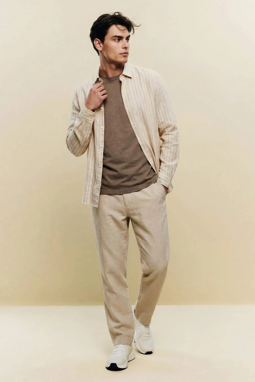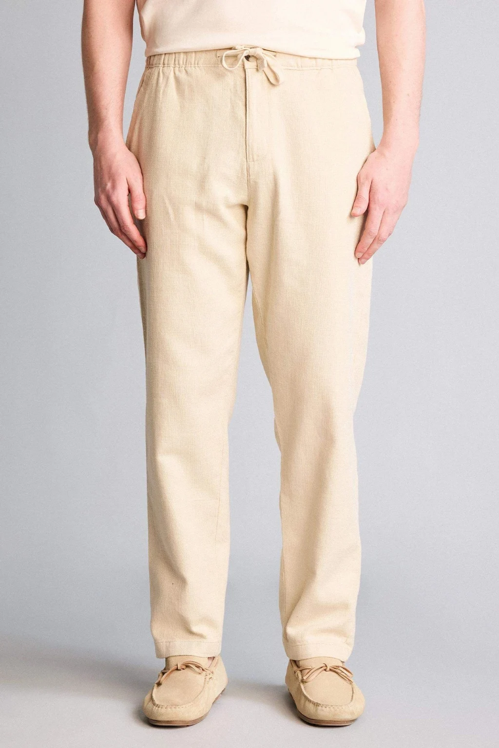 Modern ve dengeli bir silüet sunan tasarımıyla konforu şıklıkla birleştirir. Pamuklu doğal dokusu ve klasik düz paça formu, günlük kombinleriniz için nefes alabilir ve çok yönlü bir kullanım sunar.